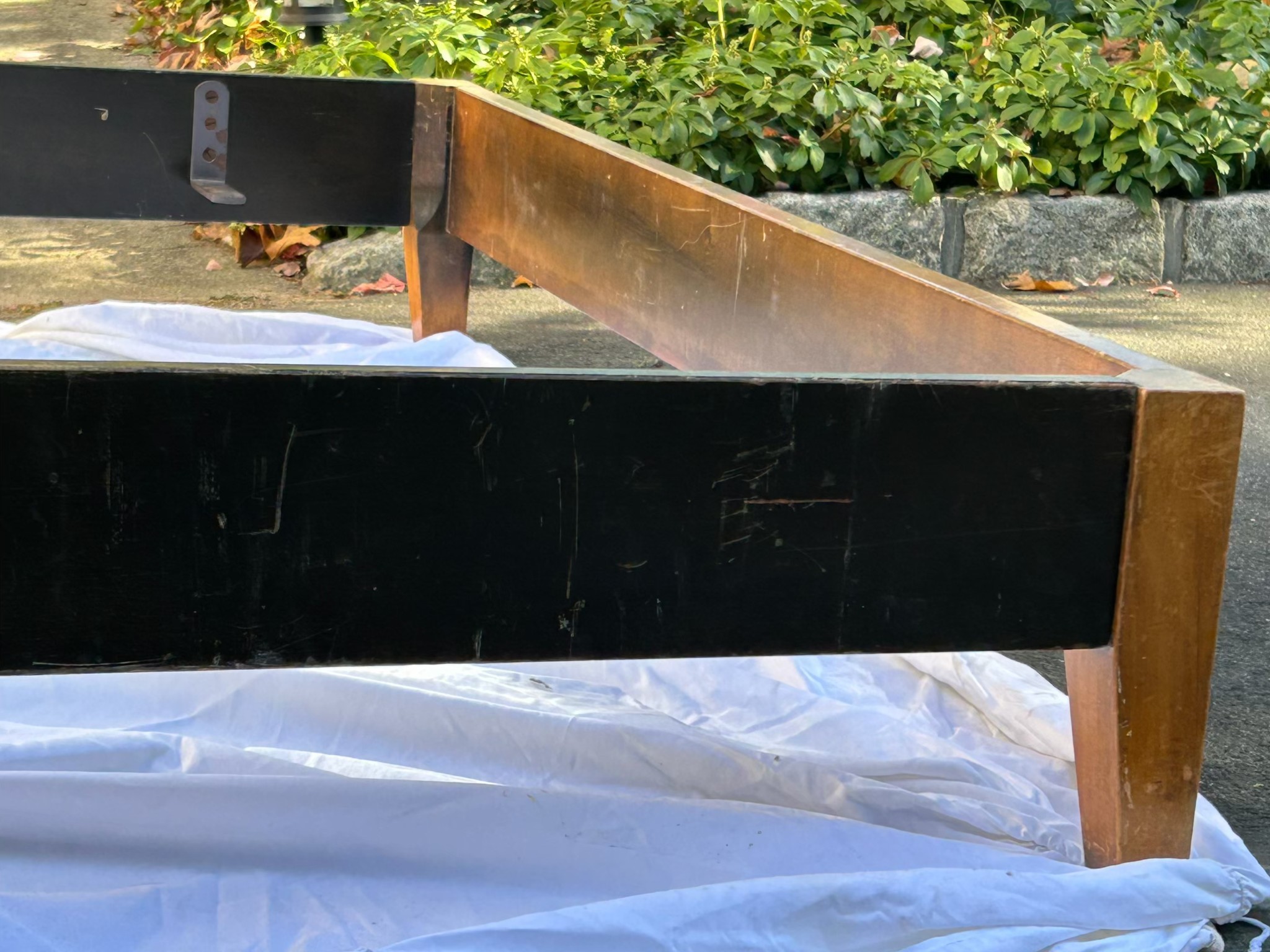 Kittinger Furniture Company (Buffalo, NY) full-size mid-century modern style wooden bed frame.