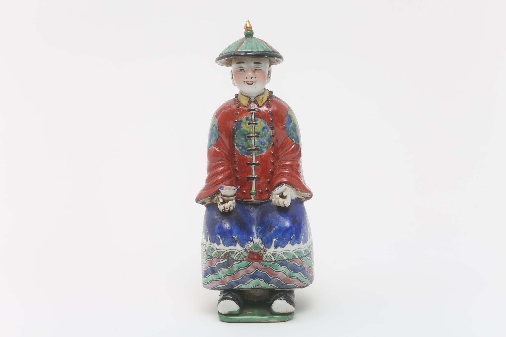 Hand Painted Chinese Emperor Sitting Ceramic Figurine