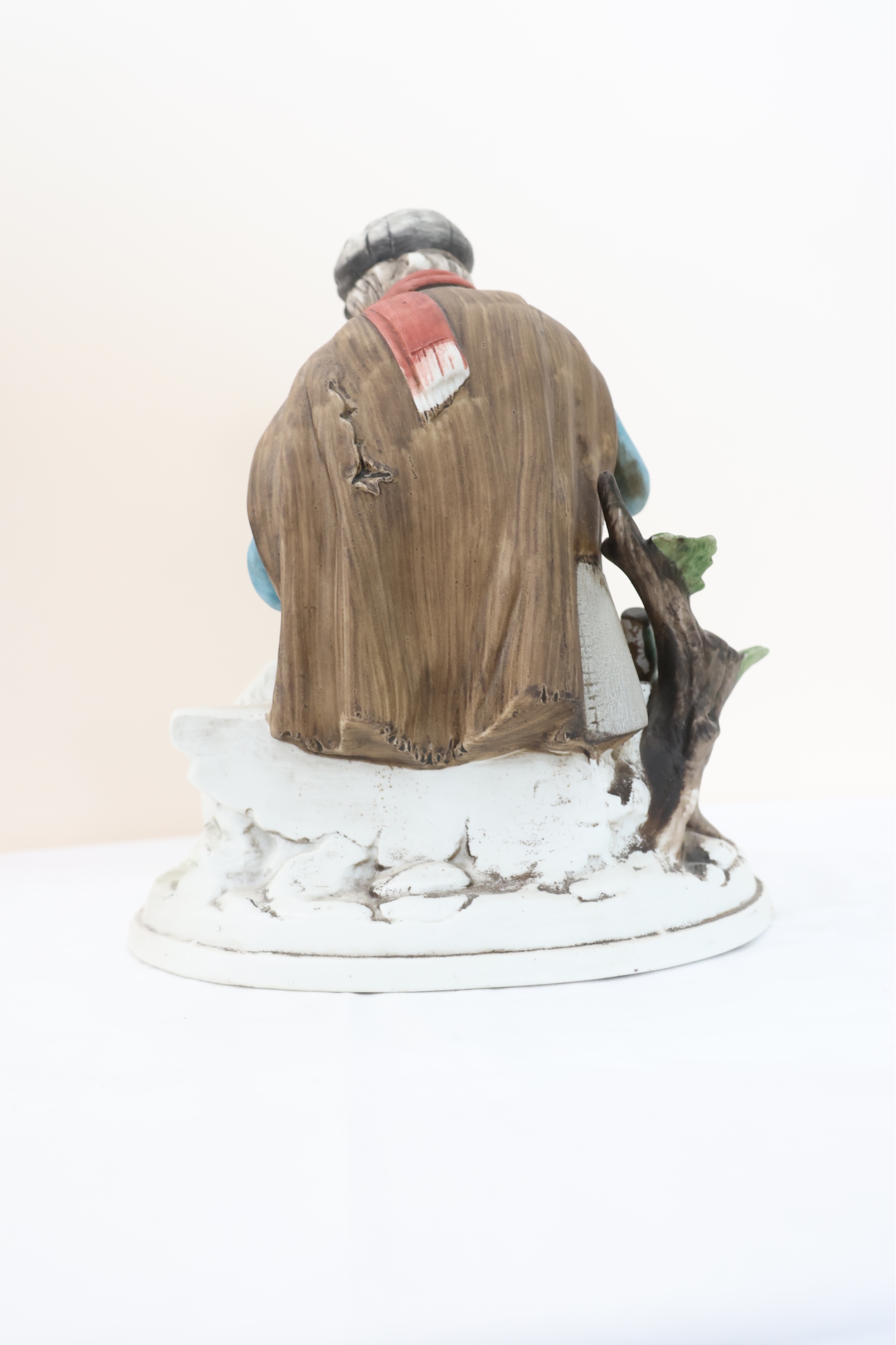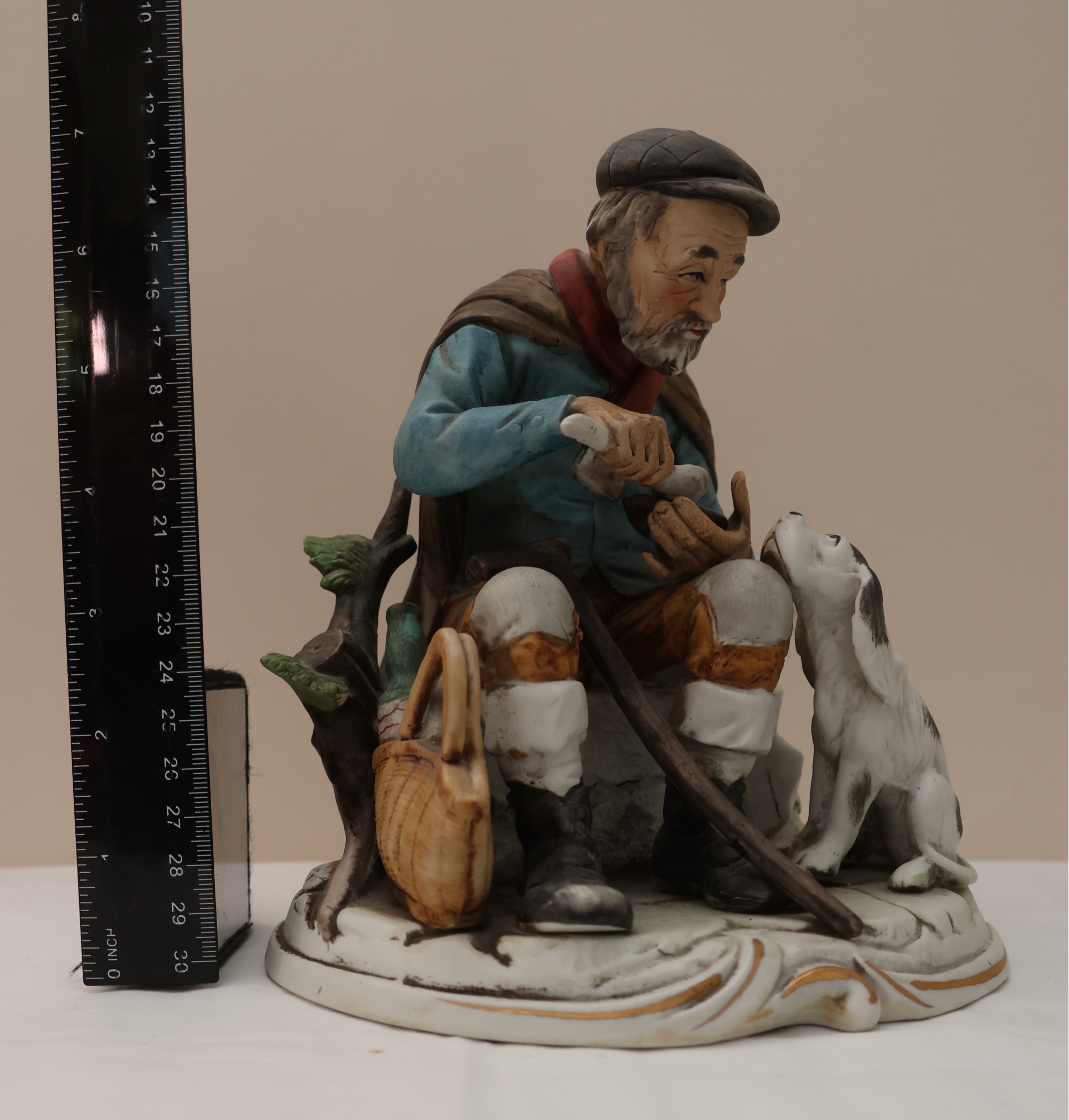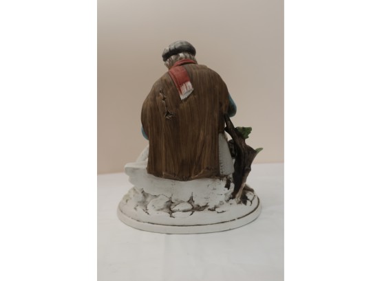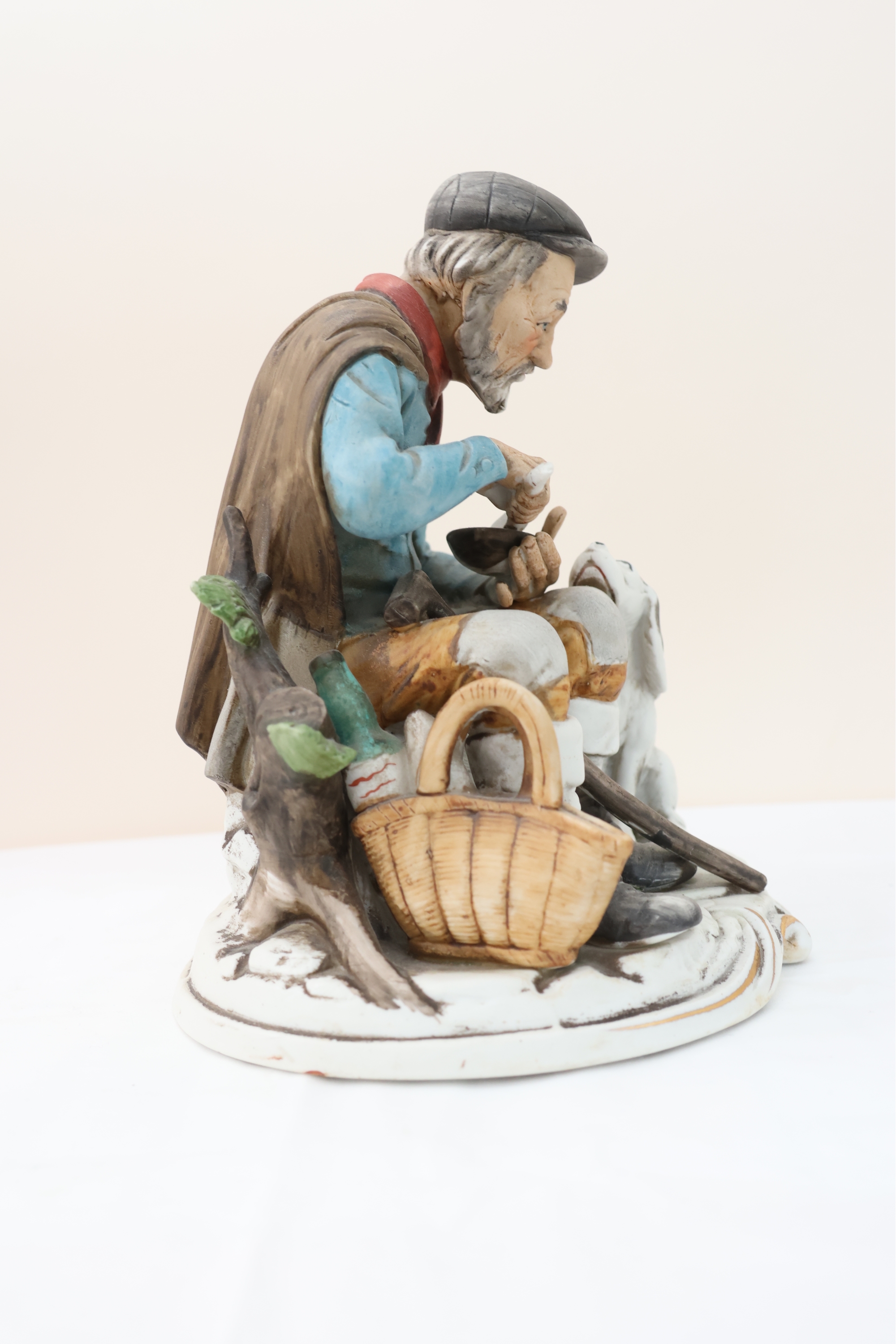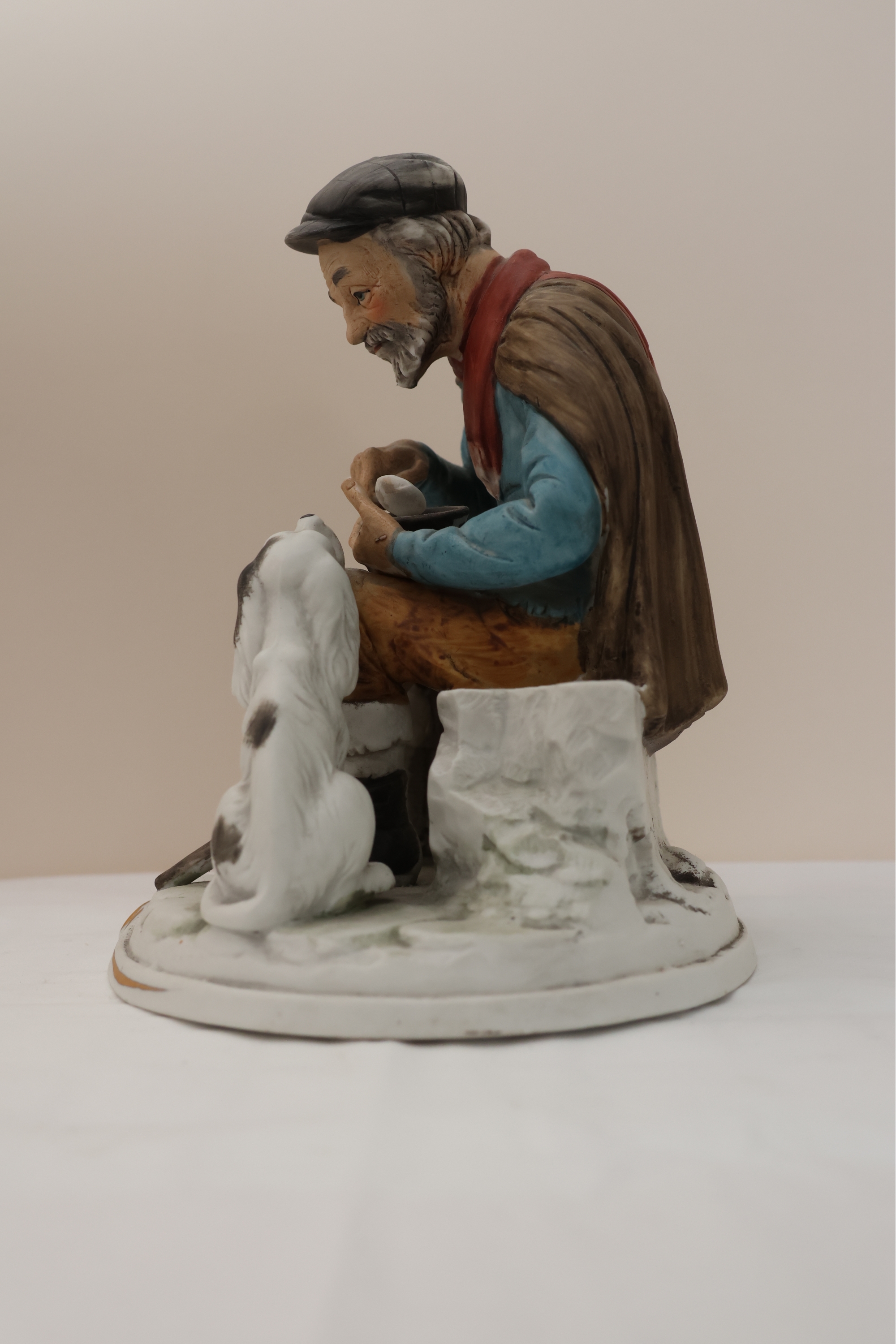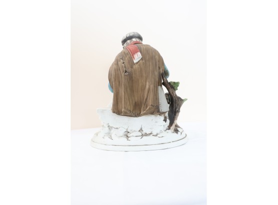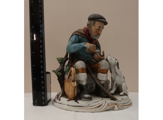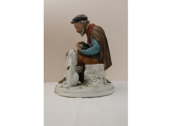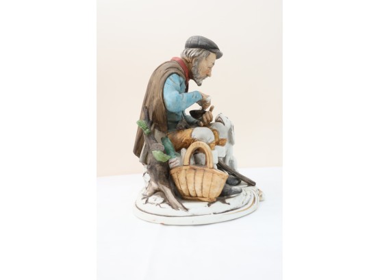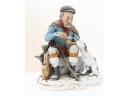 Hand-Painted Porcelain Figurine Of Seated Man With Dog