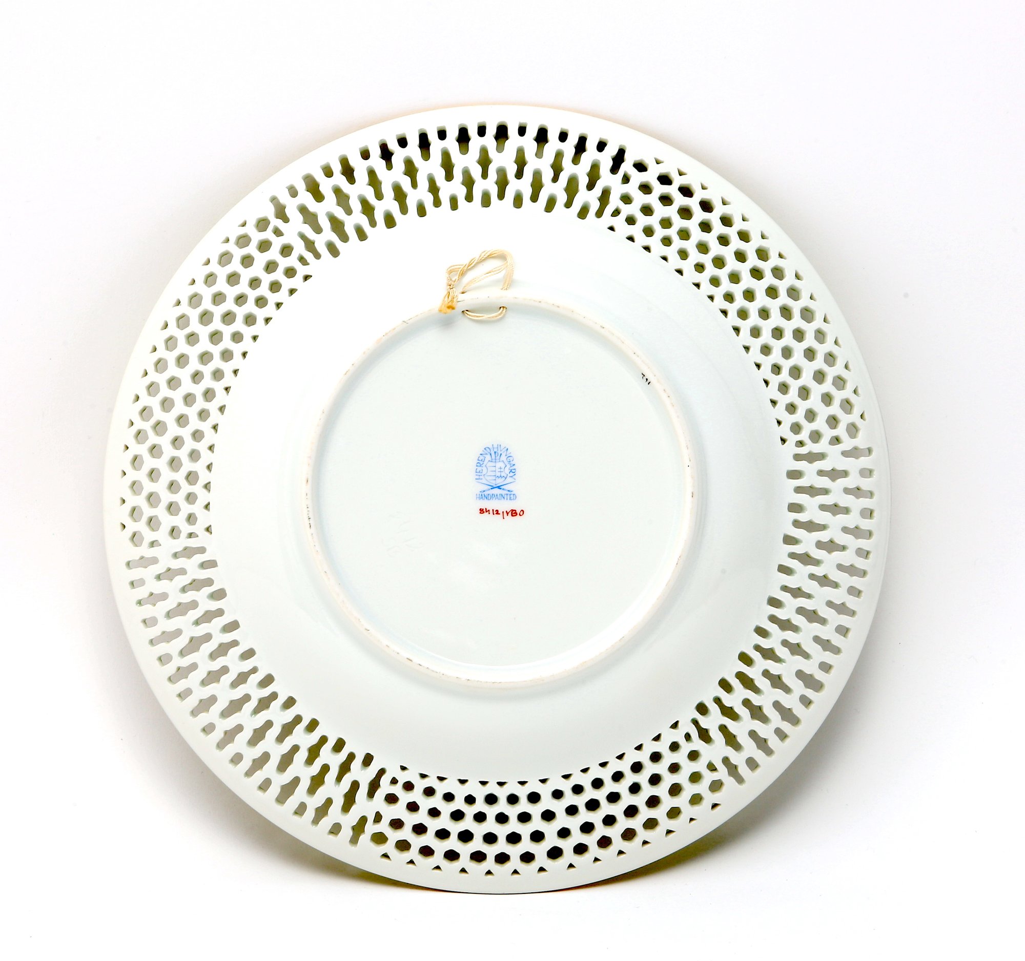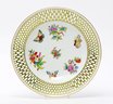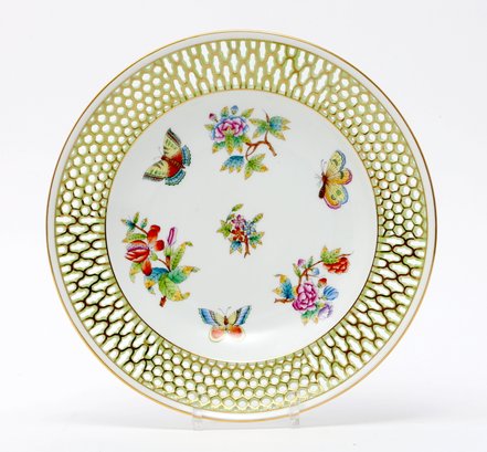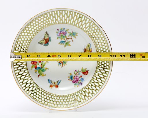 Herend Pierced Porcelain Display Plate with butterfly hand painted design - measures 10 inches round- excellent condition