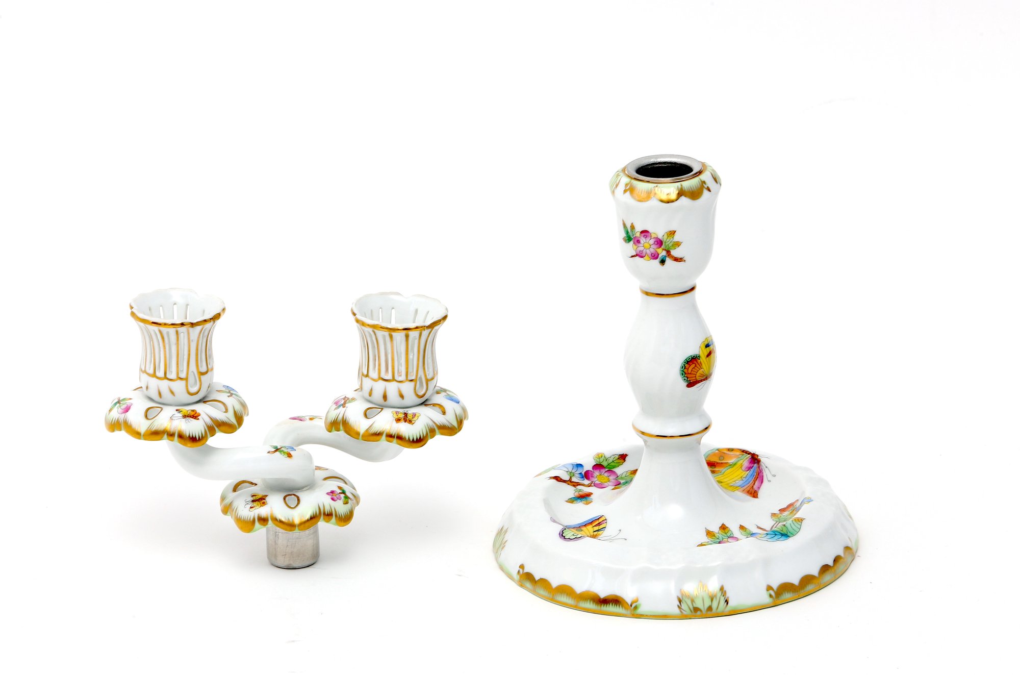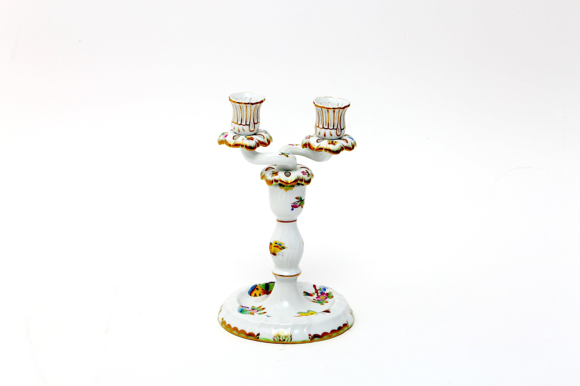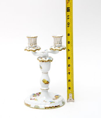 Herend Queen Victoria Porcelain Double Candlestick- signed on bottom- excellent condition - measures 9 inches tall
