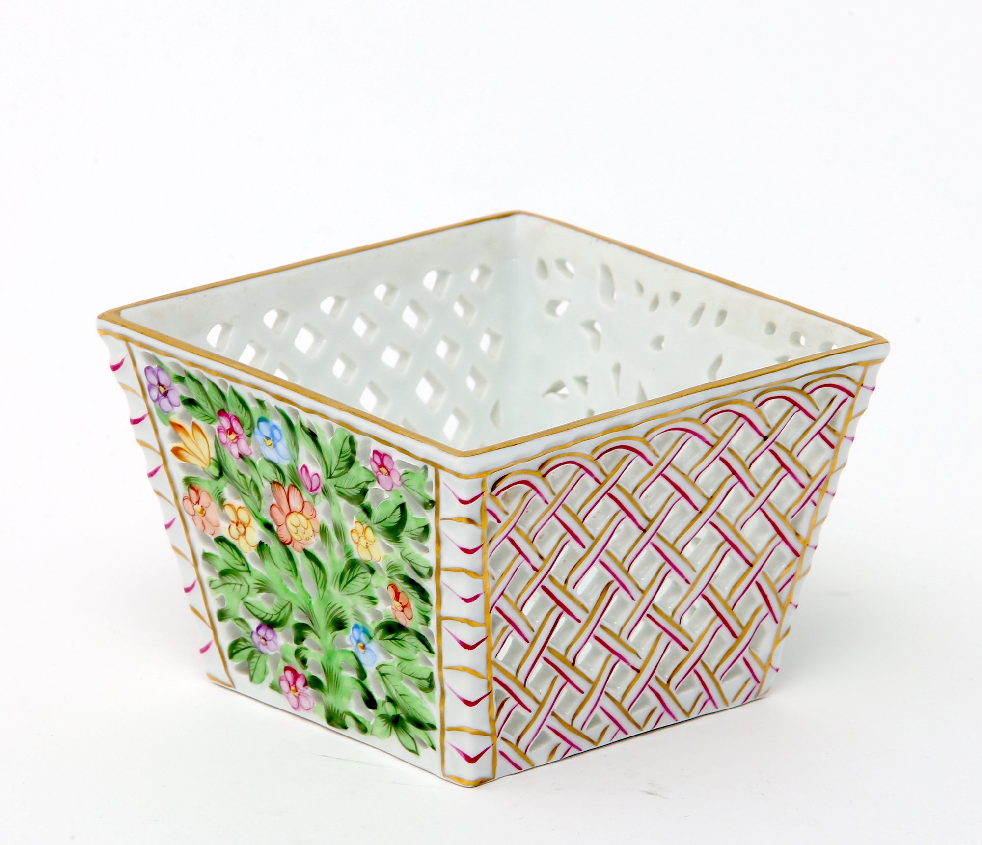 Herend Reticulated Open Work Basket- measures 4 x 4 x 3- excellent condition