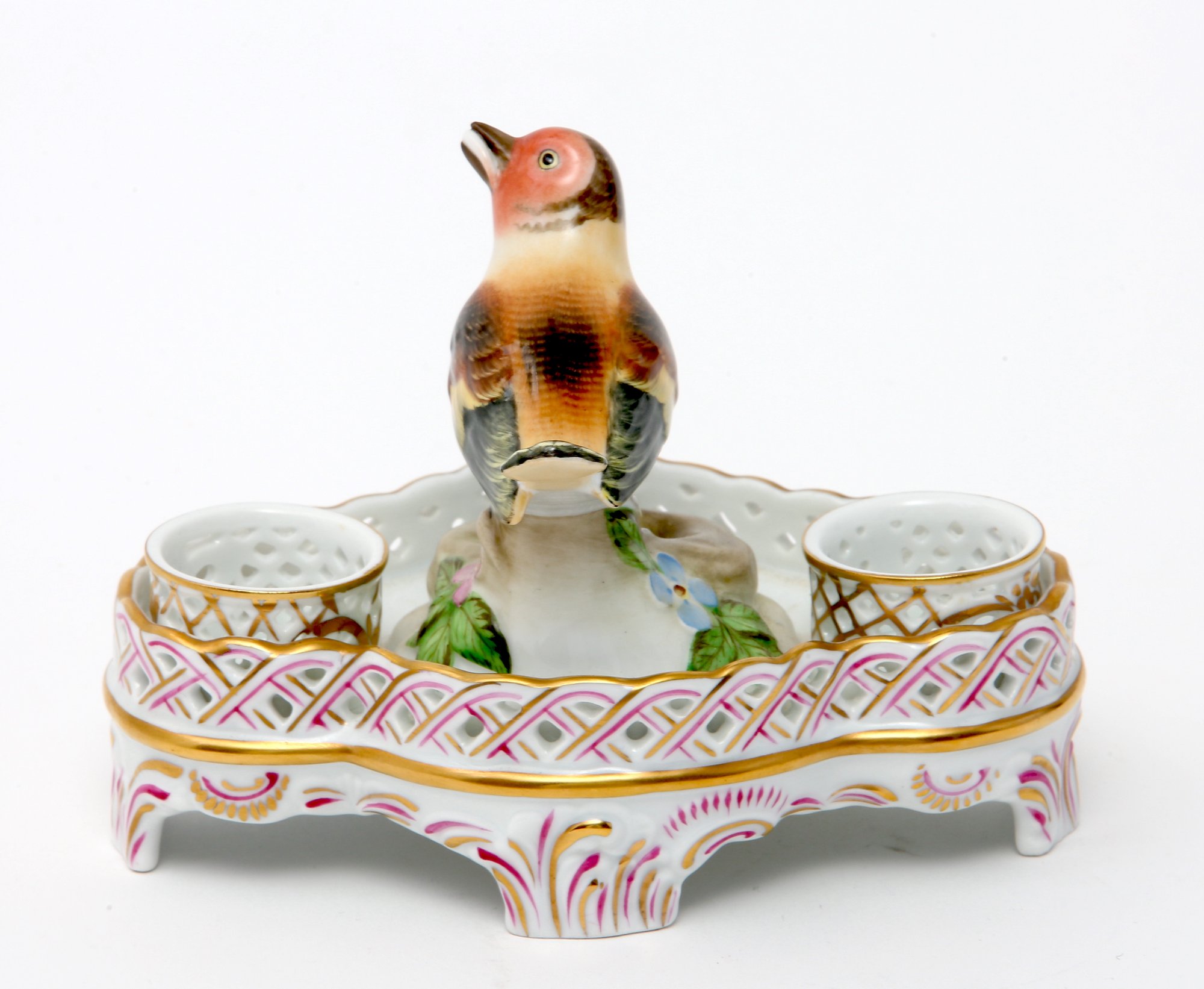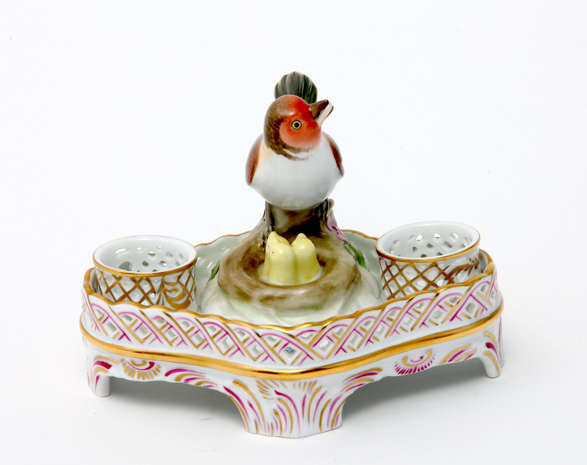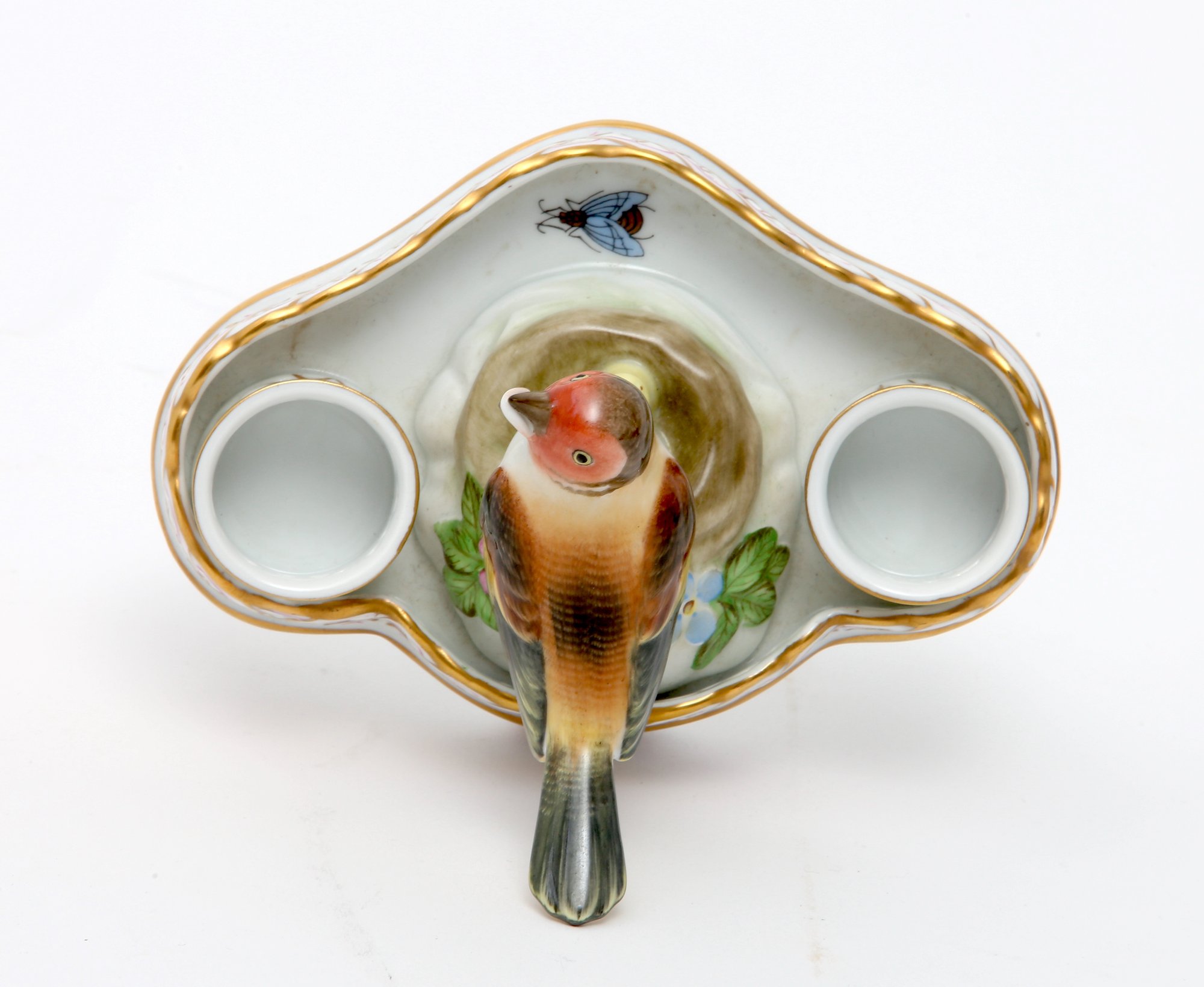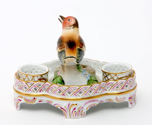 Herend Rothschild Bird Inkwell Ink Stand- missing covers for inkwells- excellent condition