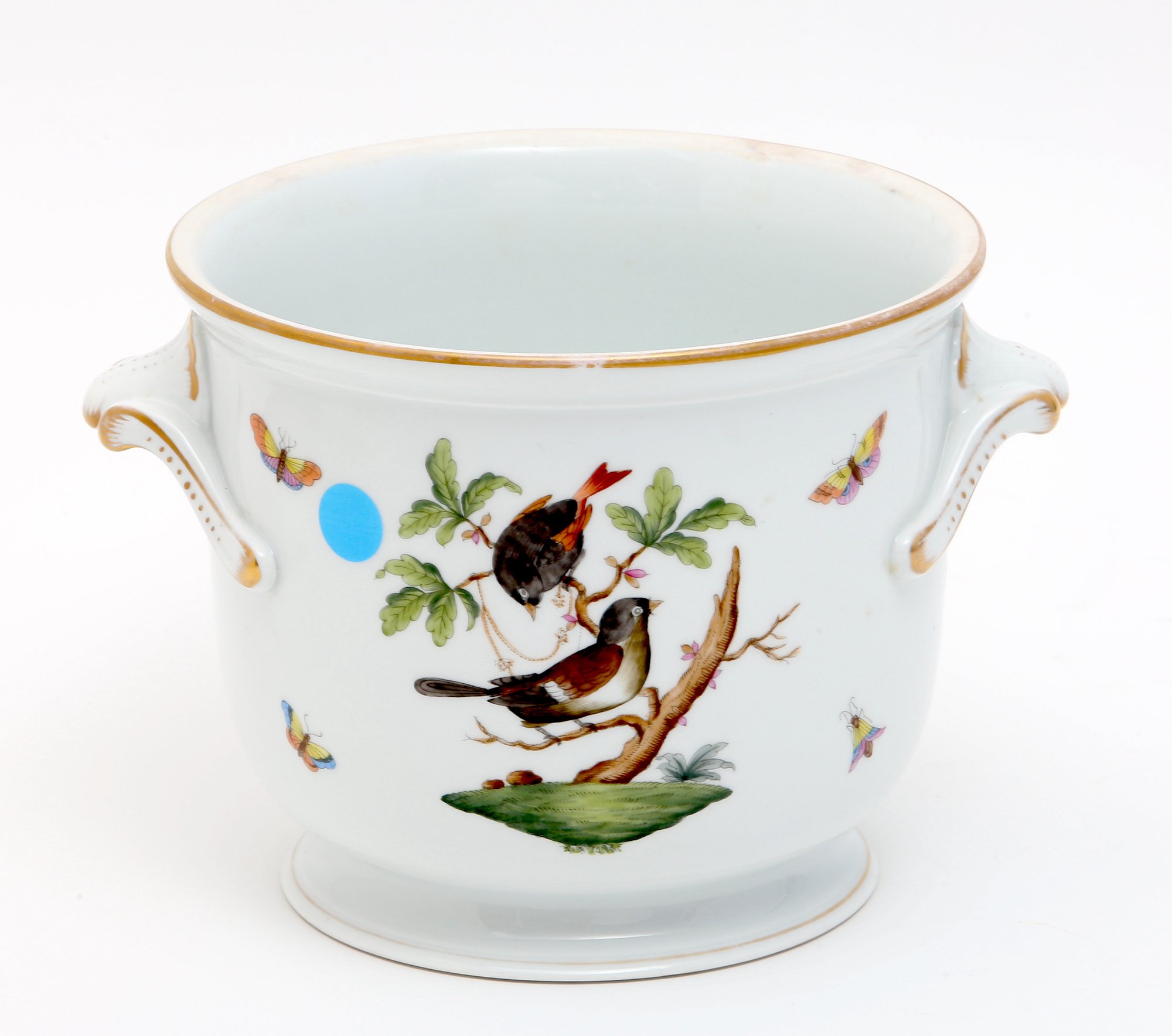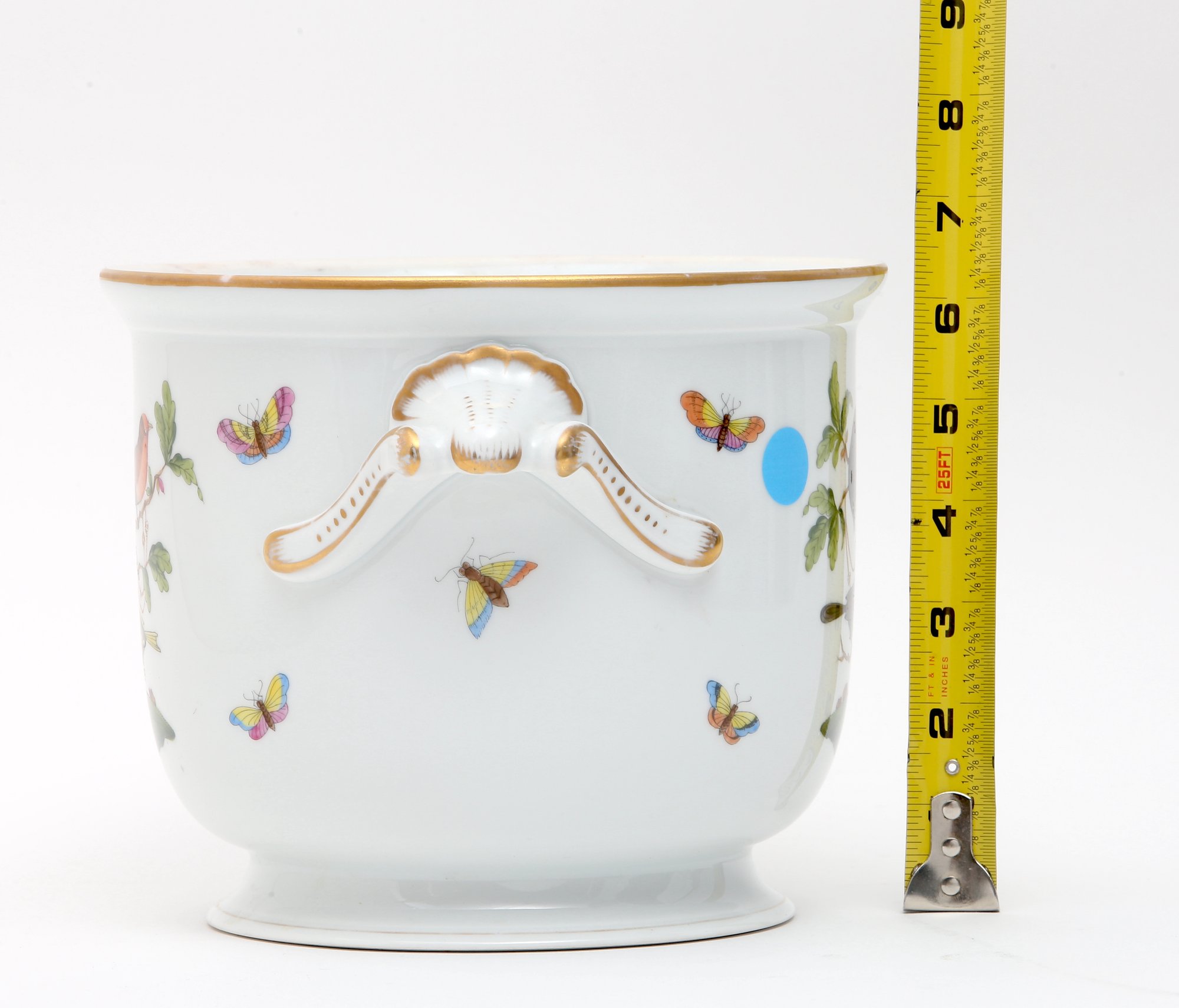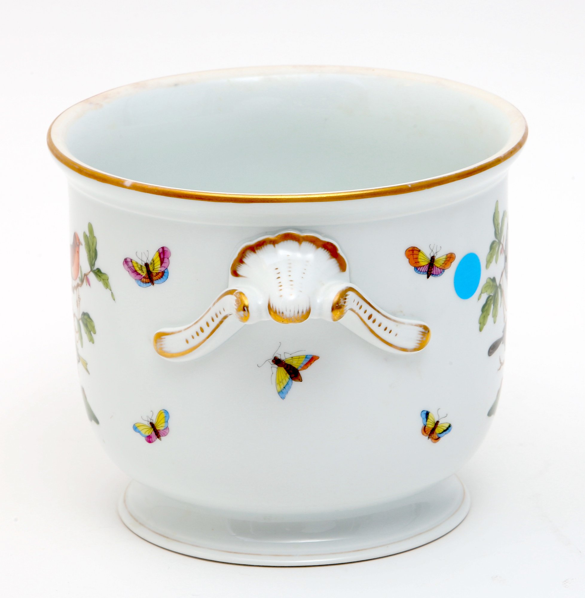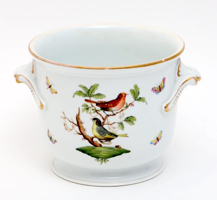 Large Herend Rothschild Bird & Butterfly Cachepot- measures 6.5 x 8