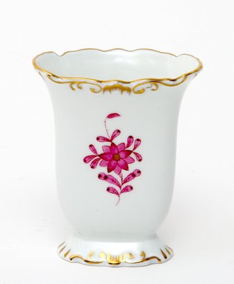 Herend Scalloped Bud Vase w/pink flowers- marked on bottom- excellent condition