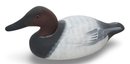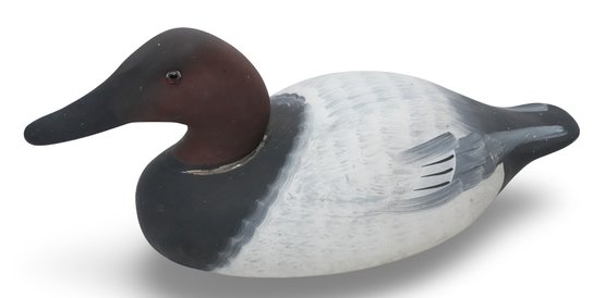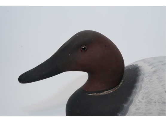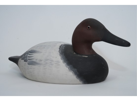 Hand painted wooden duck decoy by Hornick Bros., Stoney Point Decoys, Oak Hall, Virginia, as stamped on the underside. This solid carved example features a detailed painted body with dark head, softly blended gray and white plumage, and carved wing accents. The form is well proportioned with a smooth, classic silhouette, making it an attractive decorative piece for collectors of sporting art, coastal décor, or traditional Americana. The underside retains the maker’s stamp, adding to its authenticity and collectible appeal.