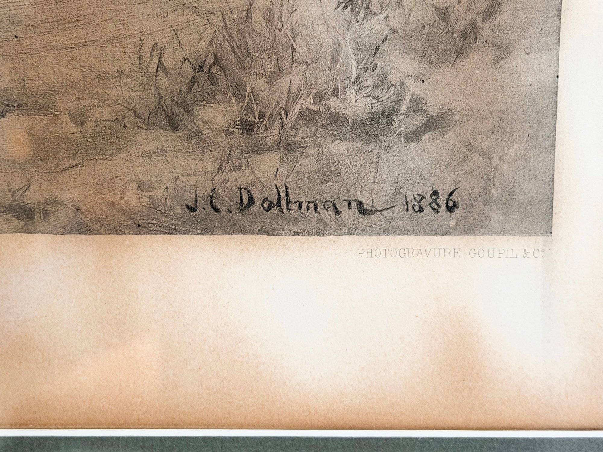 Signed in plate “J.C. Dahlmann 1886” at lower right, with “Photogravure Goupil & Cie” printed along the margin.