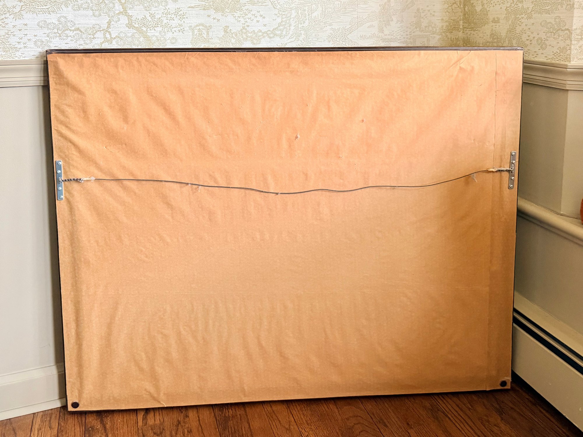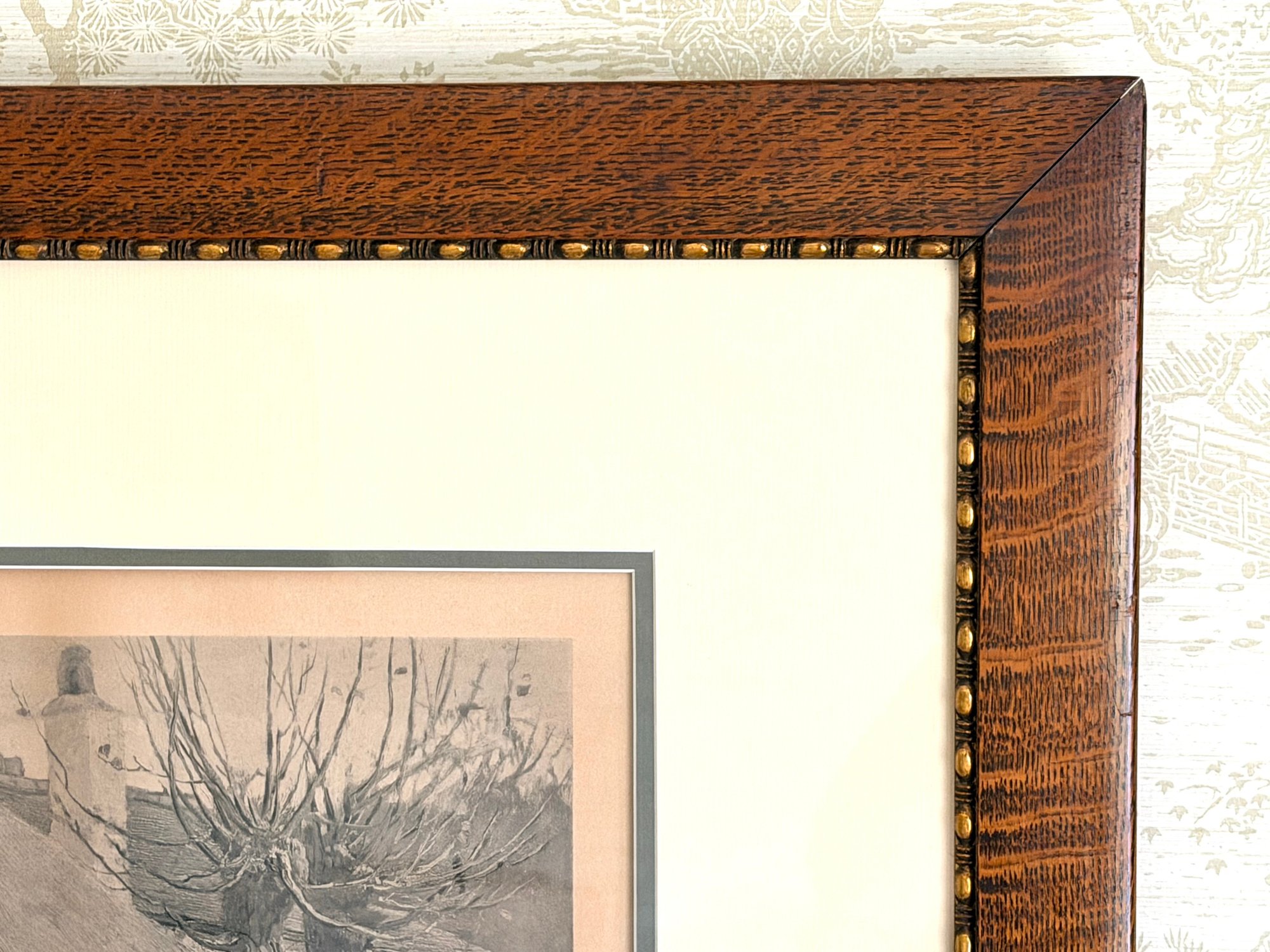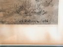 Visible toning and discoloration to the mat and margins. Light spotting and age-related wear present. Frame shows surface wear consistent with age. Overall stable and suitable for display.Measures: 42 x 22