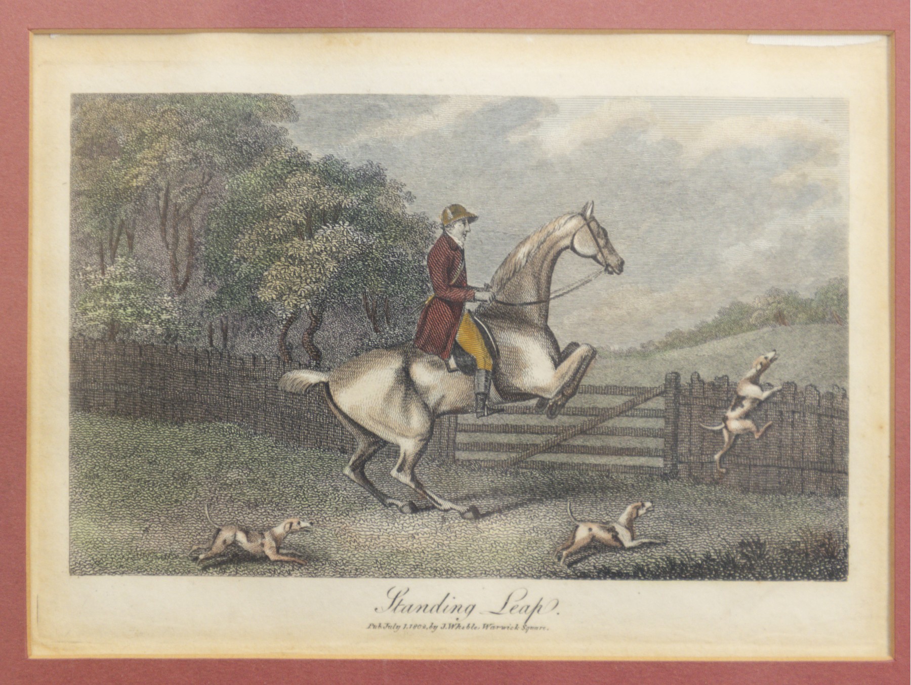 J. Wheble Engraving Print "Standing Leap" In Gilt Frame