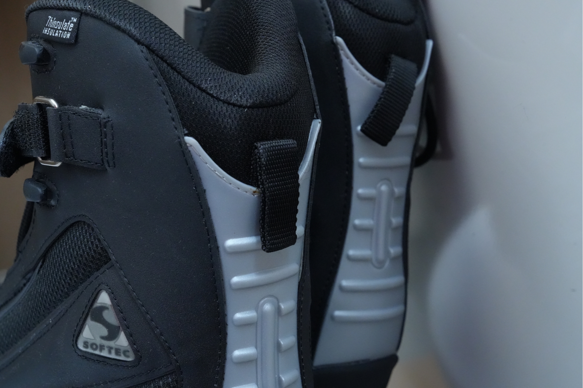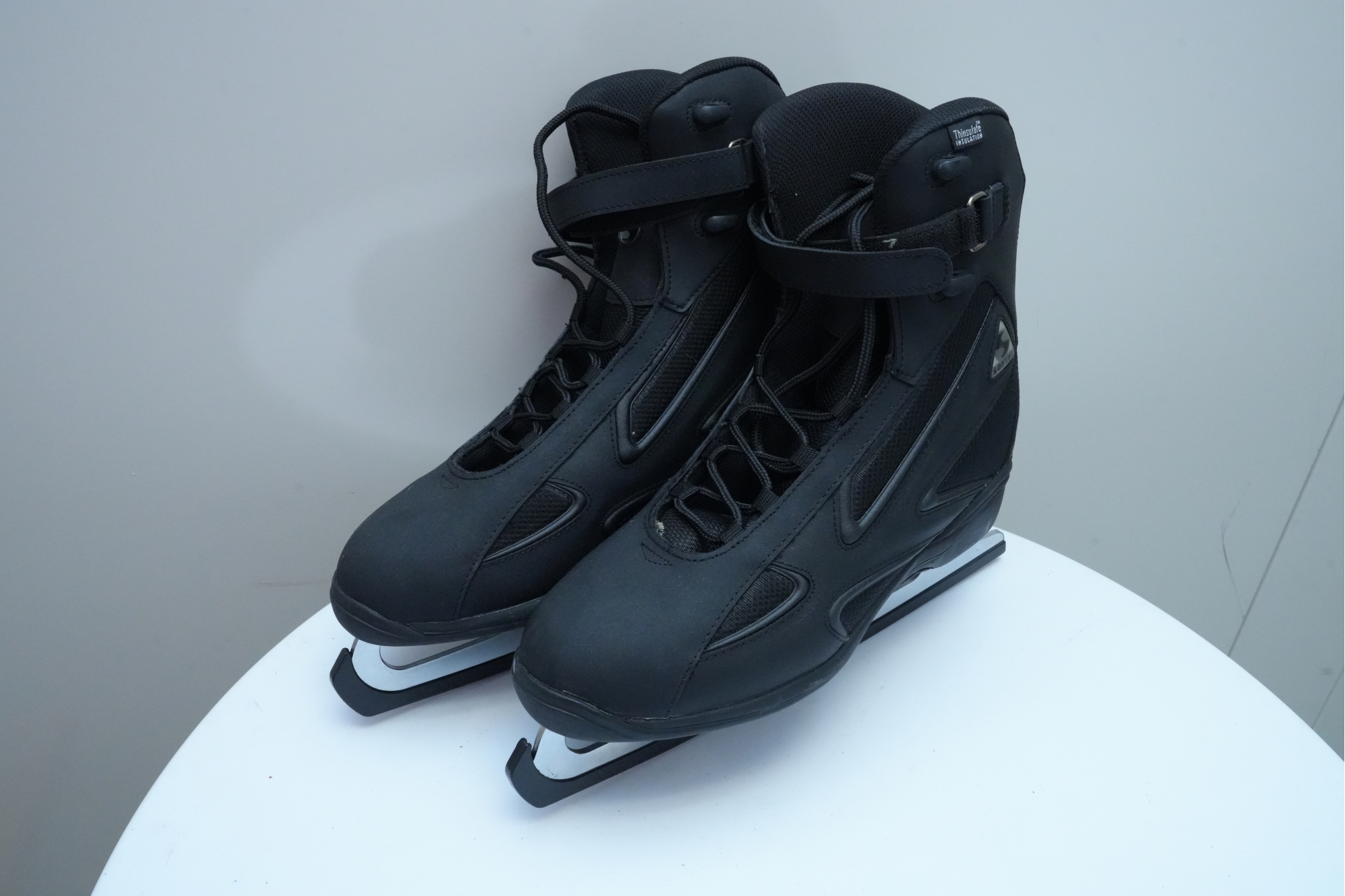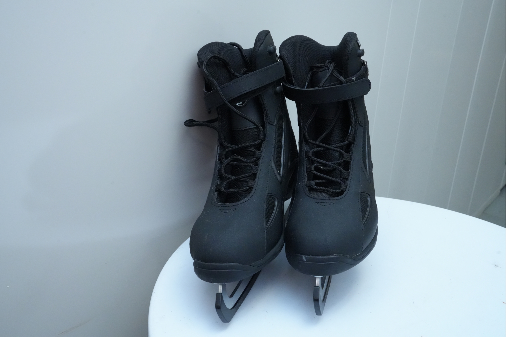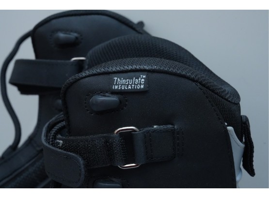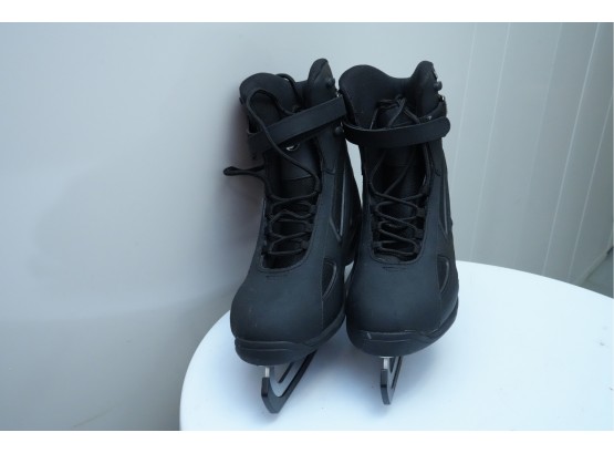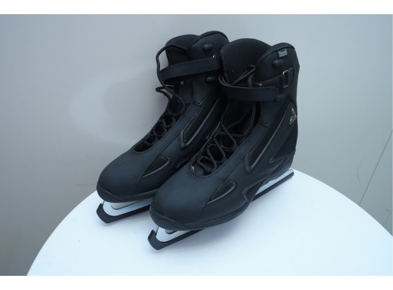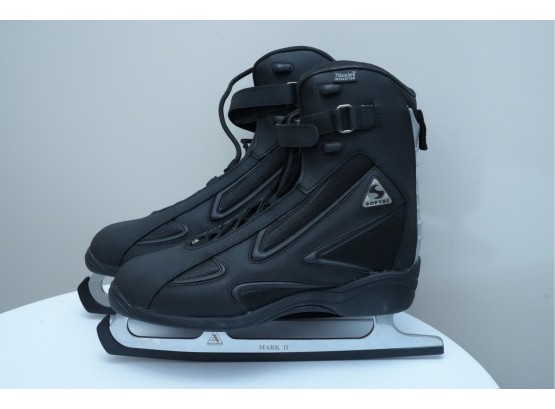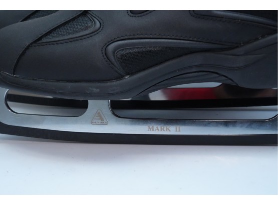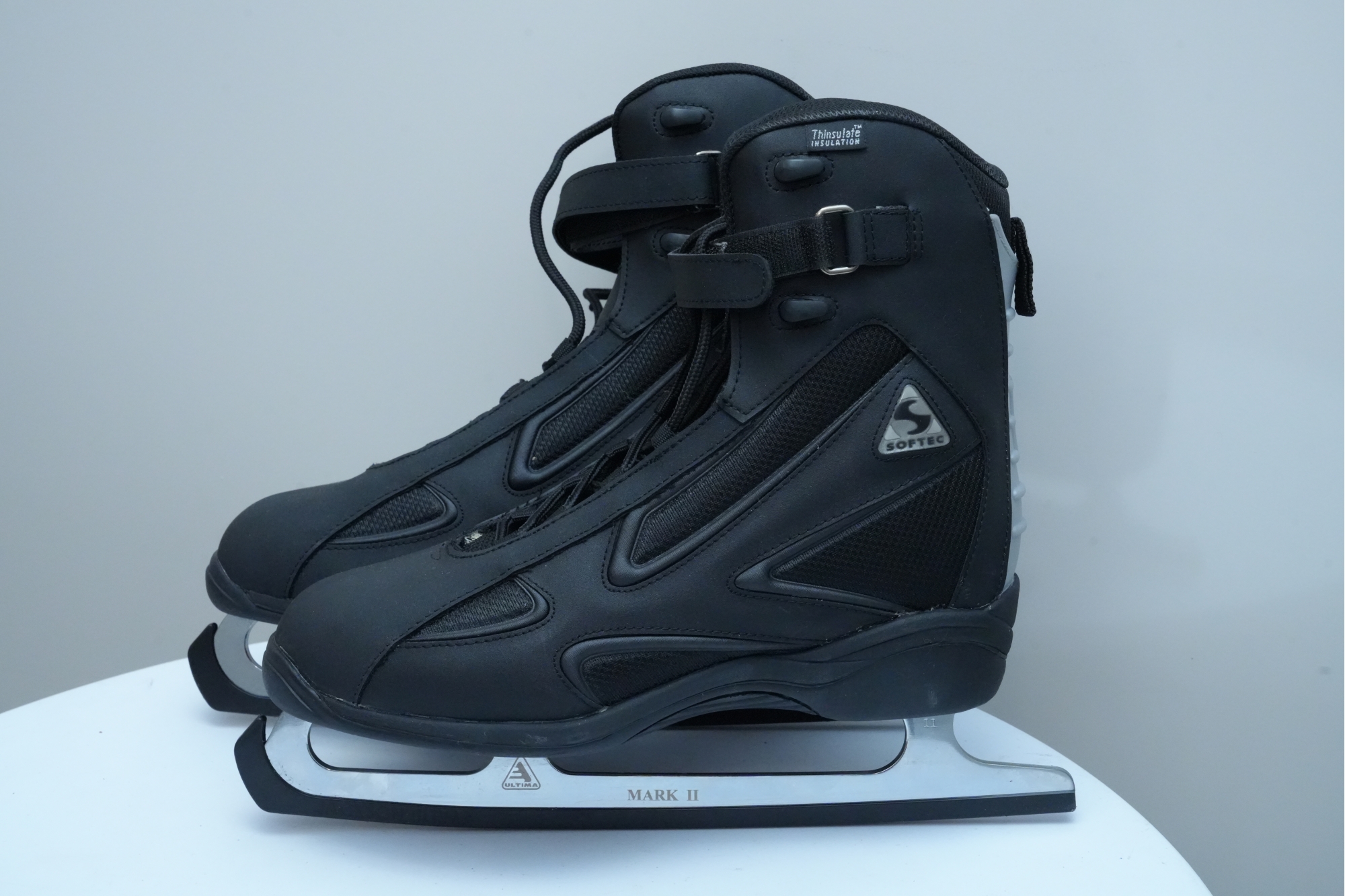 Jackson Skates (Canadian) "Ultima Softec Elite" figure ice skates in black, equipped with "Mark II" blades and "Thinsulate" lining for warmth. Marked "9" on backside, for "Size 9."
