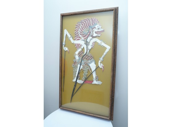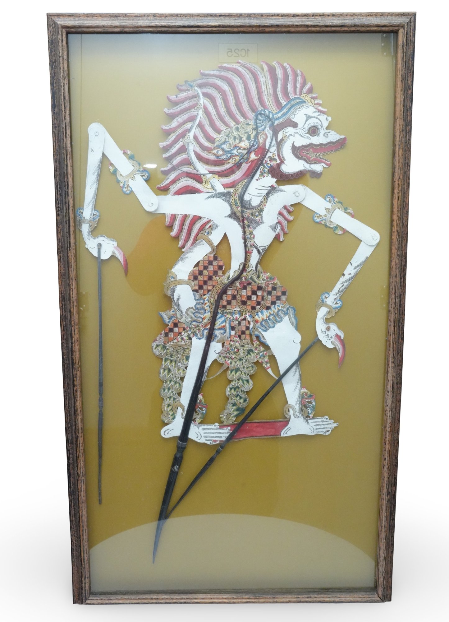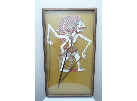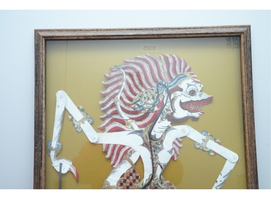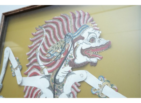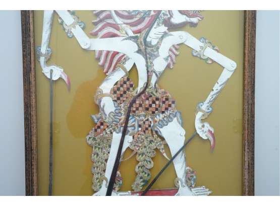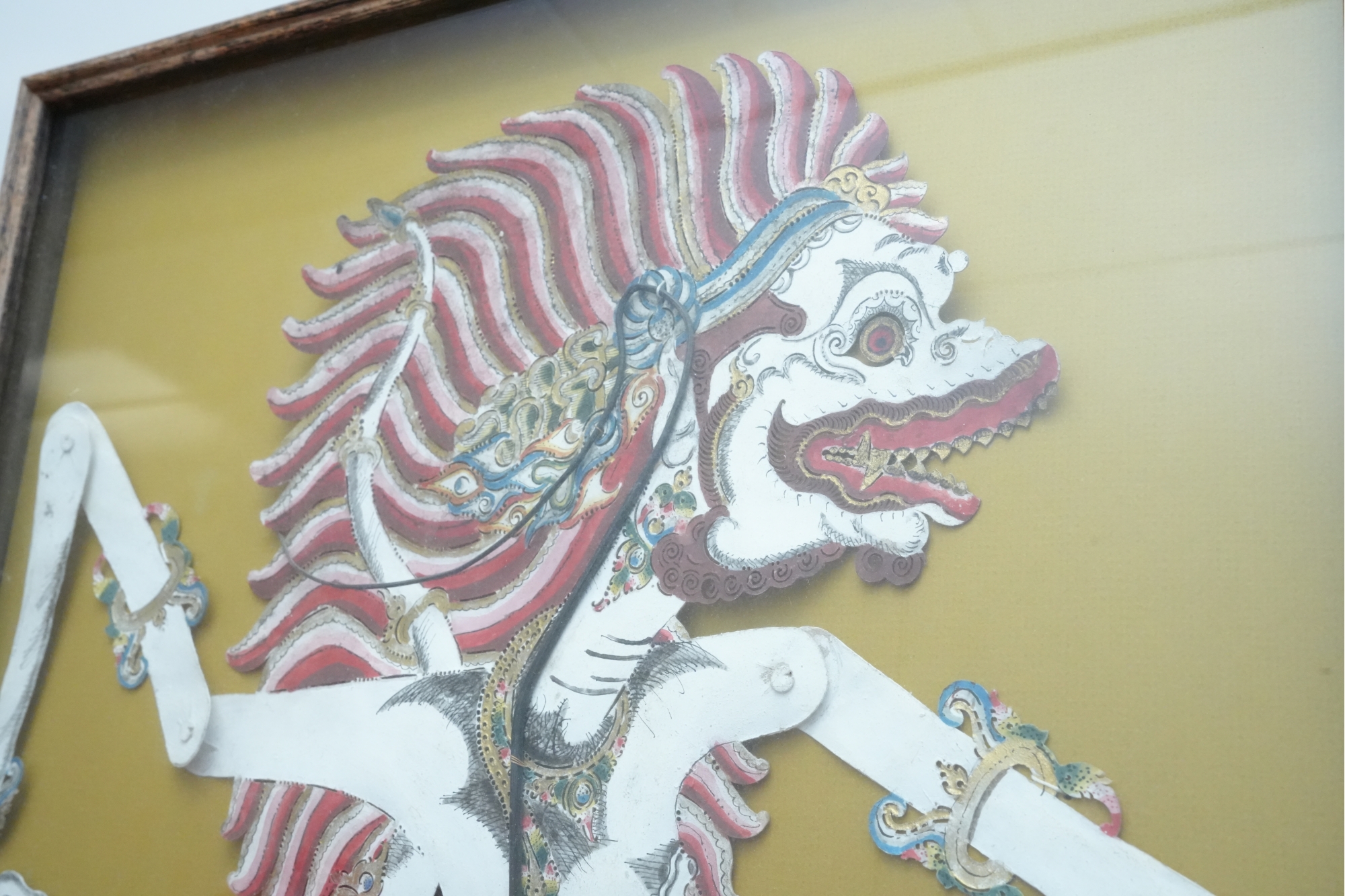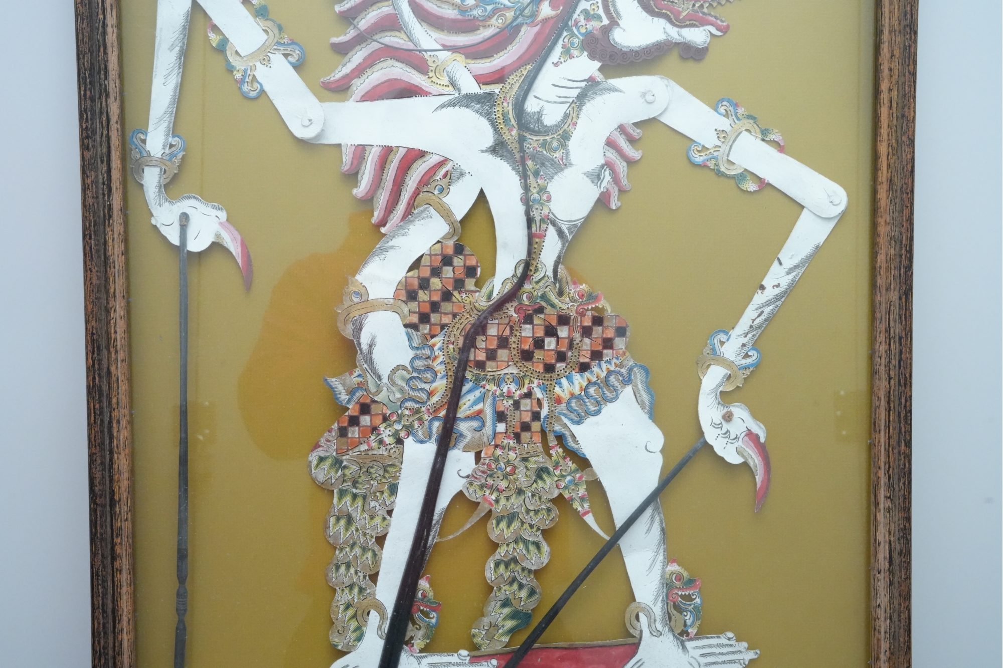 Javanese Wayang Kulit shadow puppet mounted on rods depicting "Anoman" (Hanuman), the white monkey god from the Hindu epic, Ramayana.