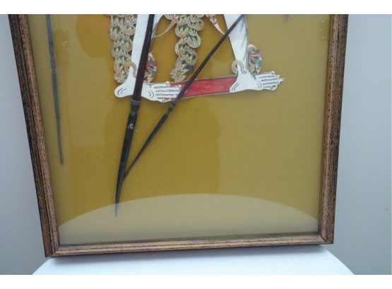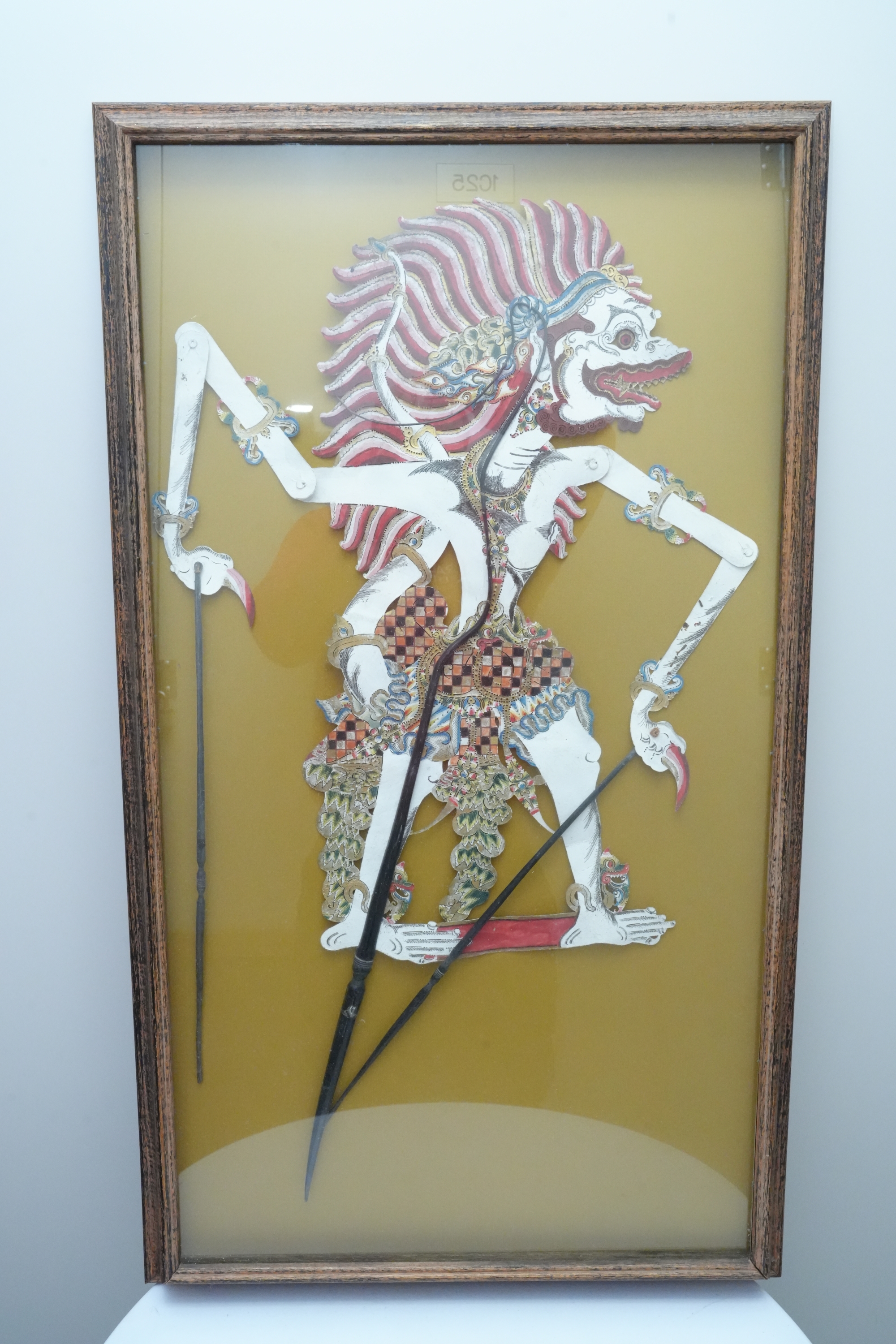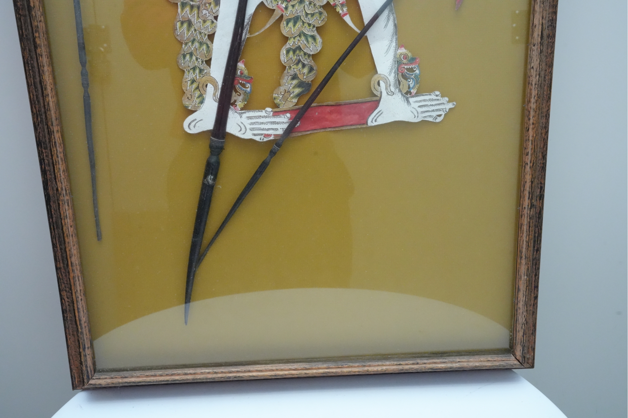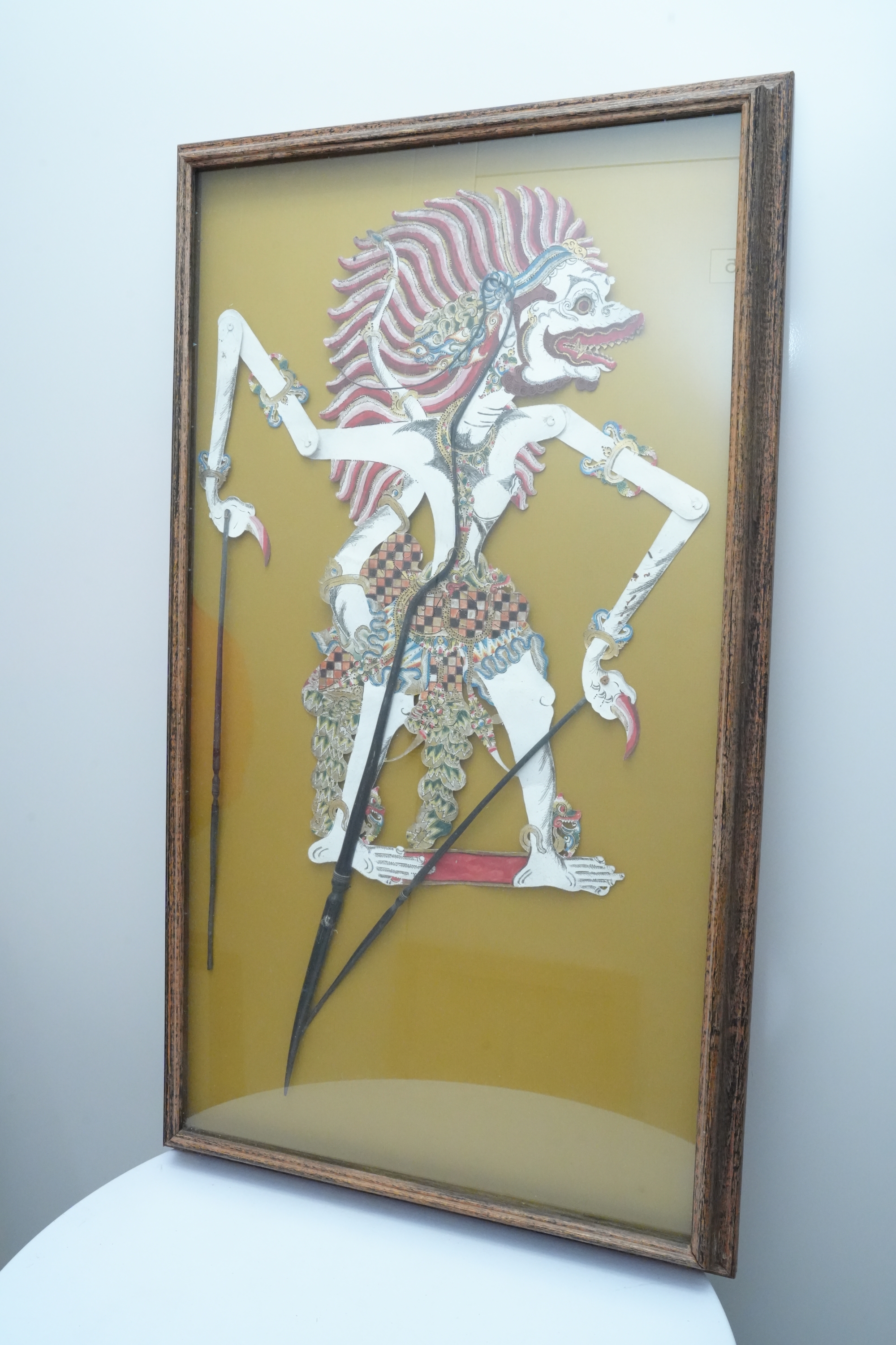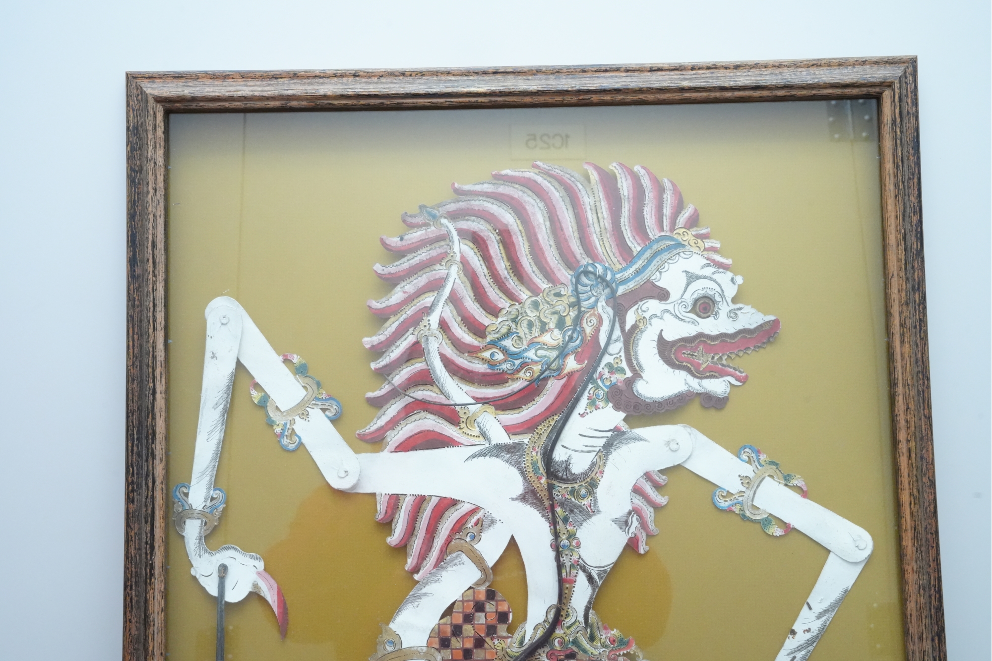 Javanese Wayang Kulit shadow puppet mounted on rods depicting "Anoman" (Hanuman), the white monkey god from the Hindu epic, Ramayana.