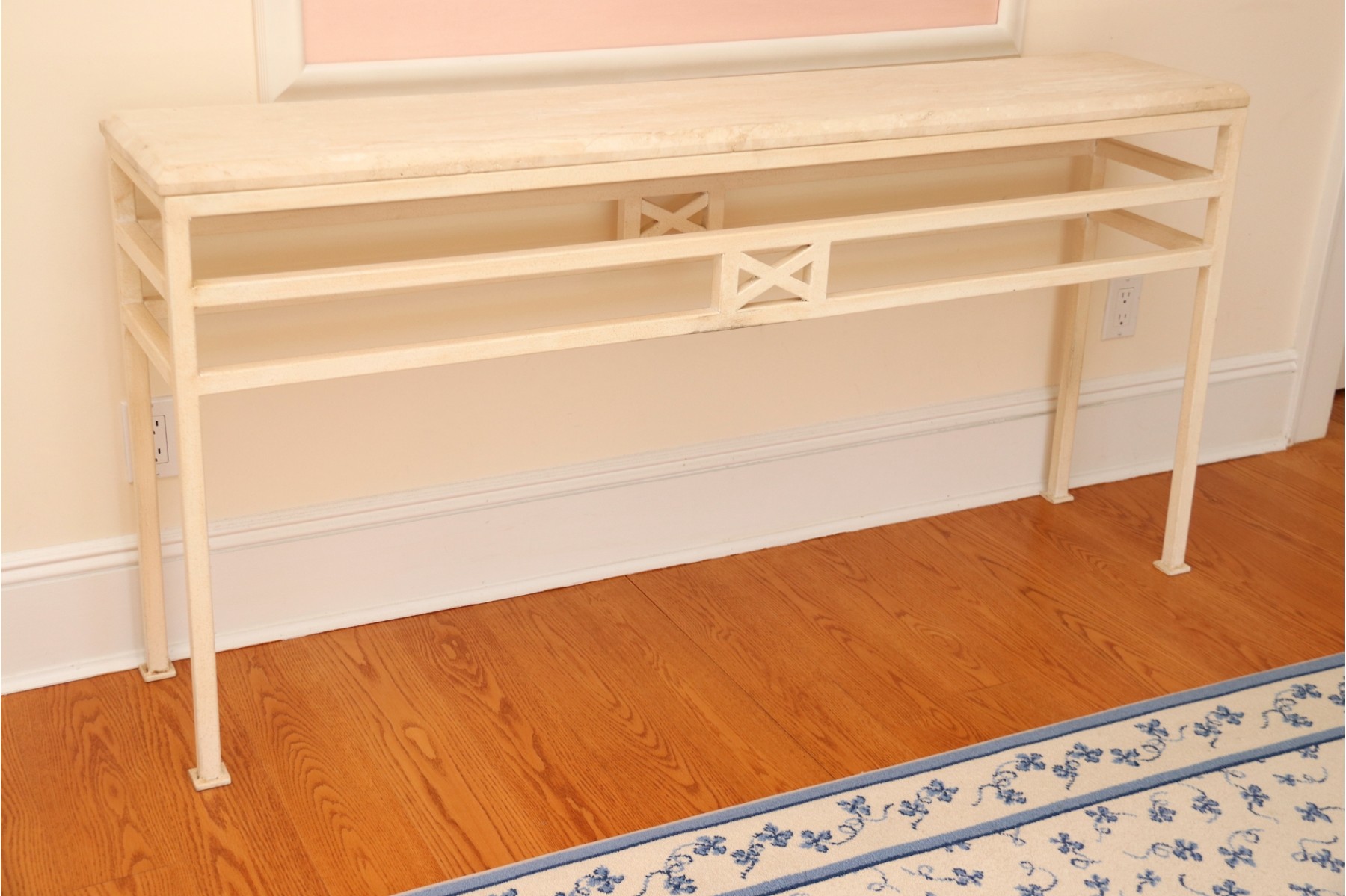 Stunning table designed by Michael Taylor for the Kreiss collection. Table is in very good condition with limestone top and metal cross sections and legs that make for a great post modern look