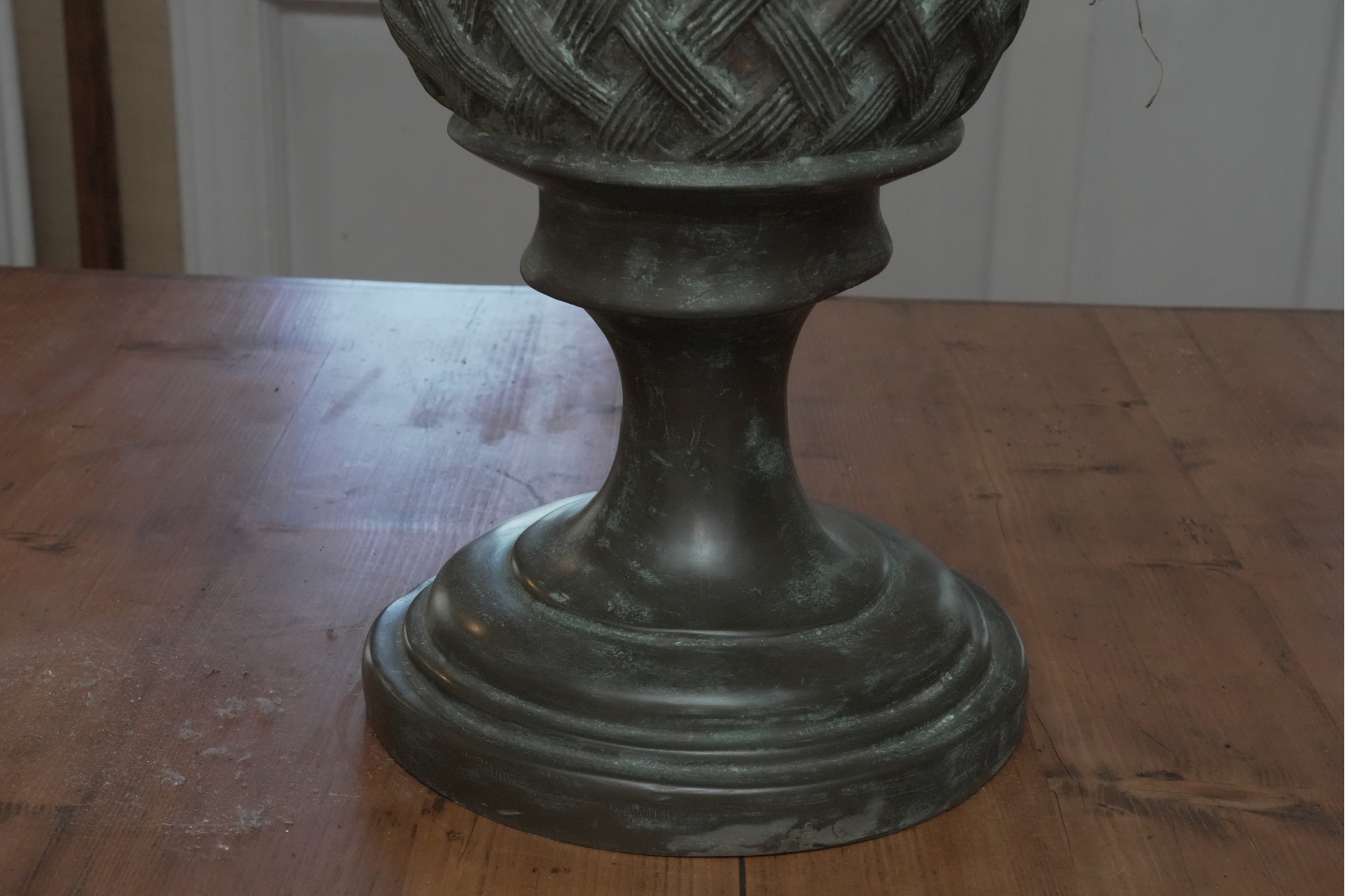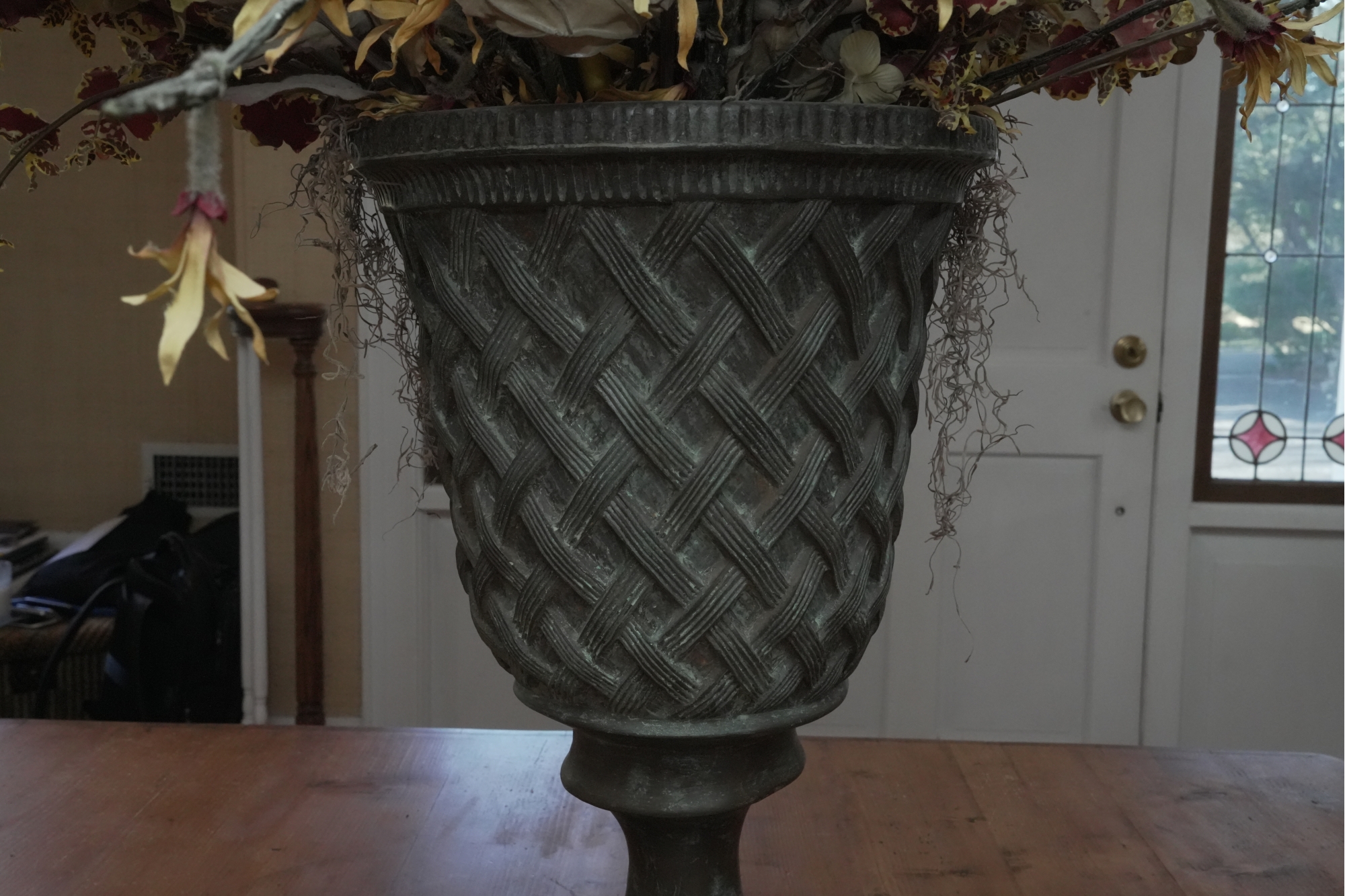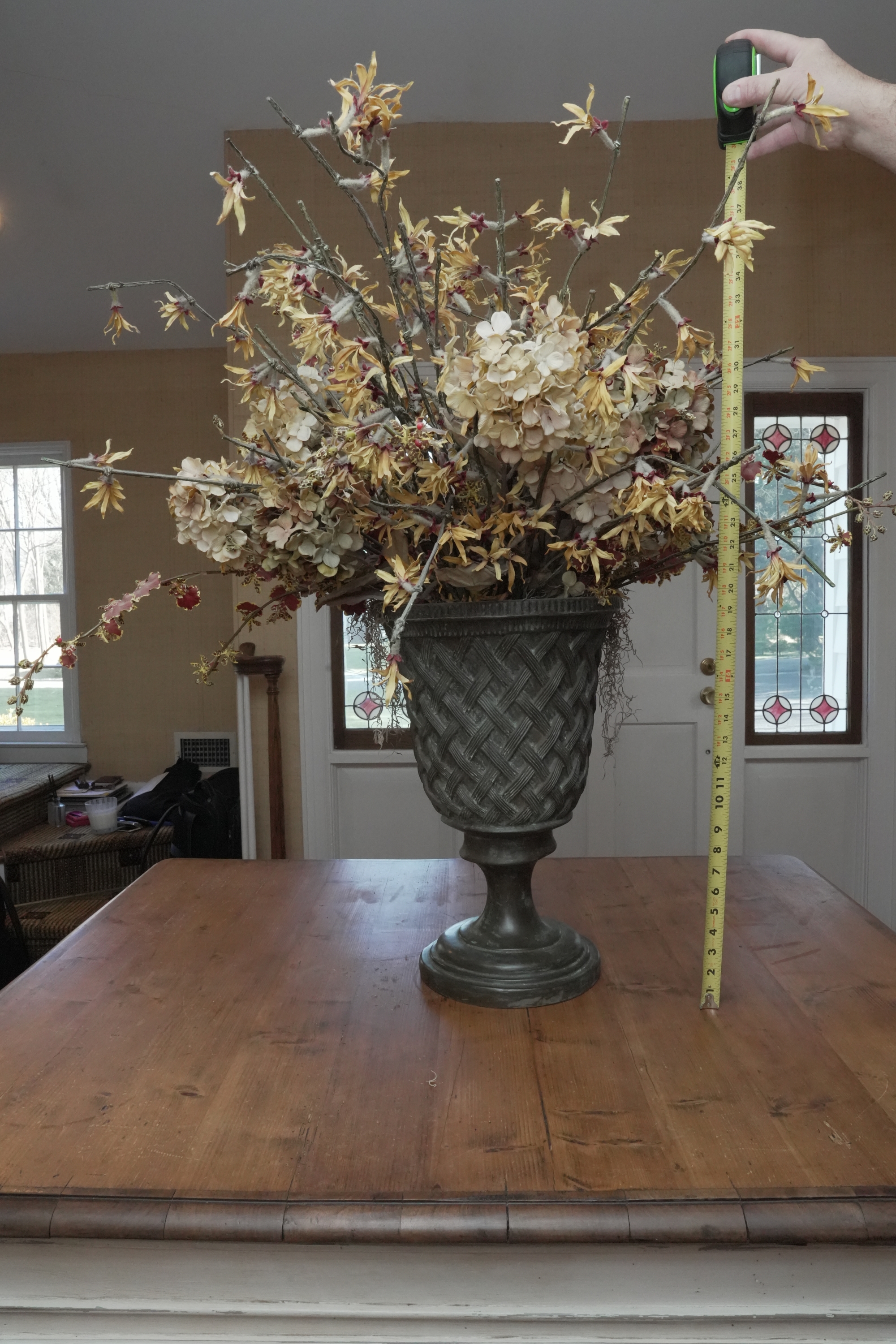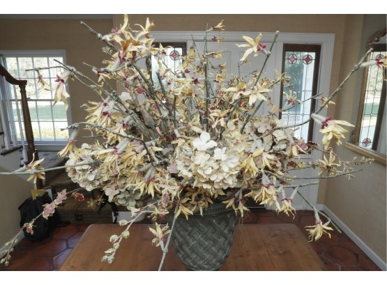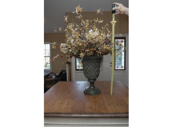 Large Decorative Resin Urn With Faux Hydrangea & Orchid Floral Arrangement