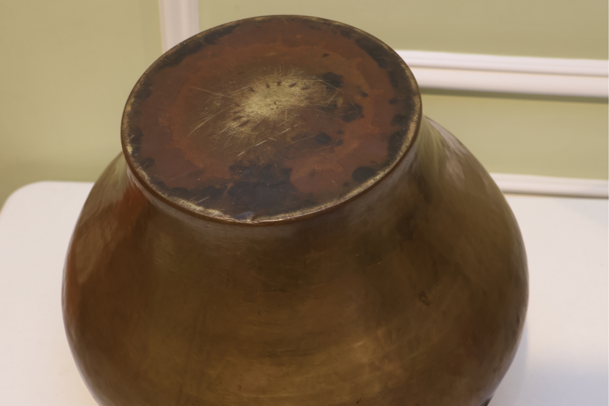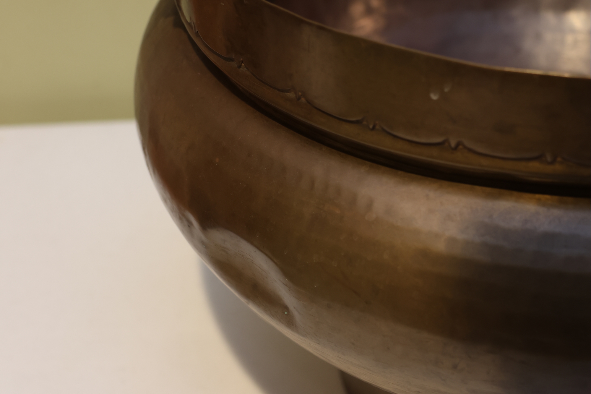 Large Hammered Copper Two-Handled Vessel