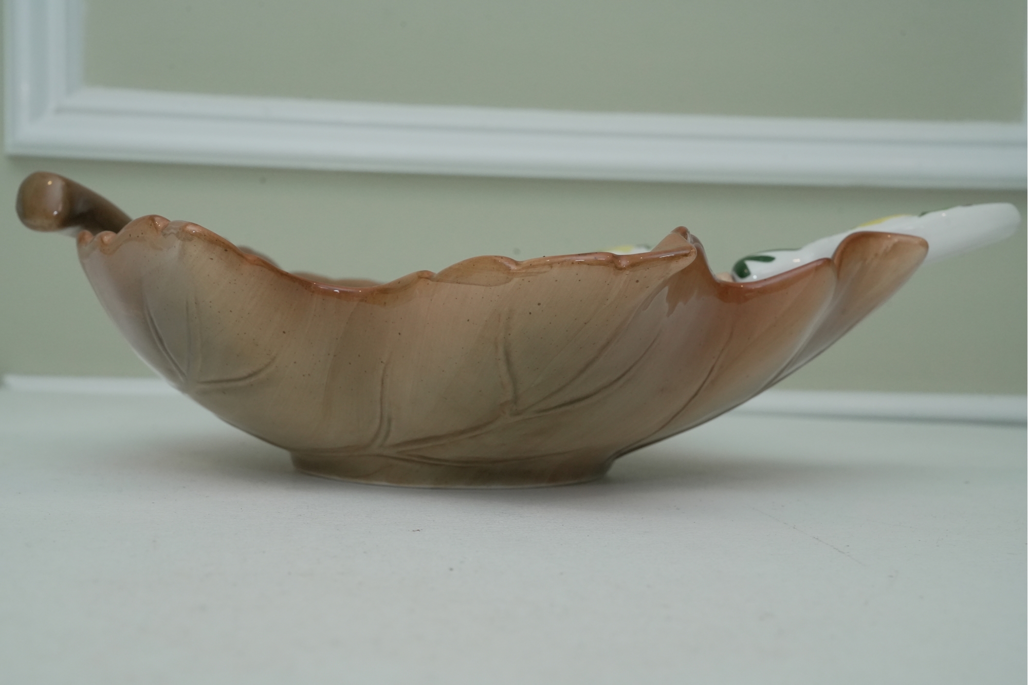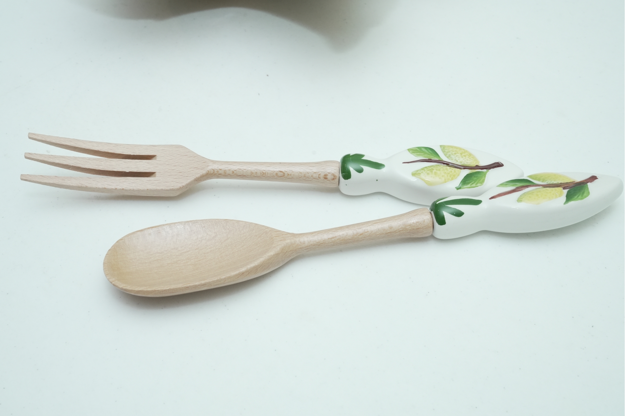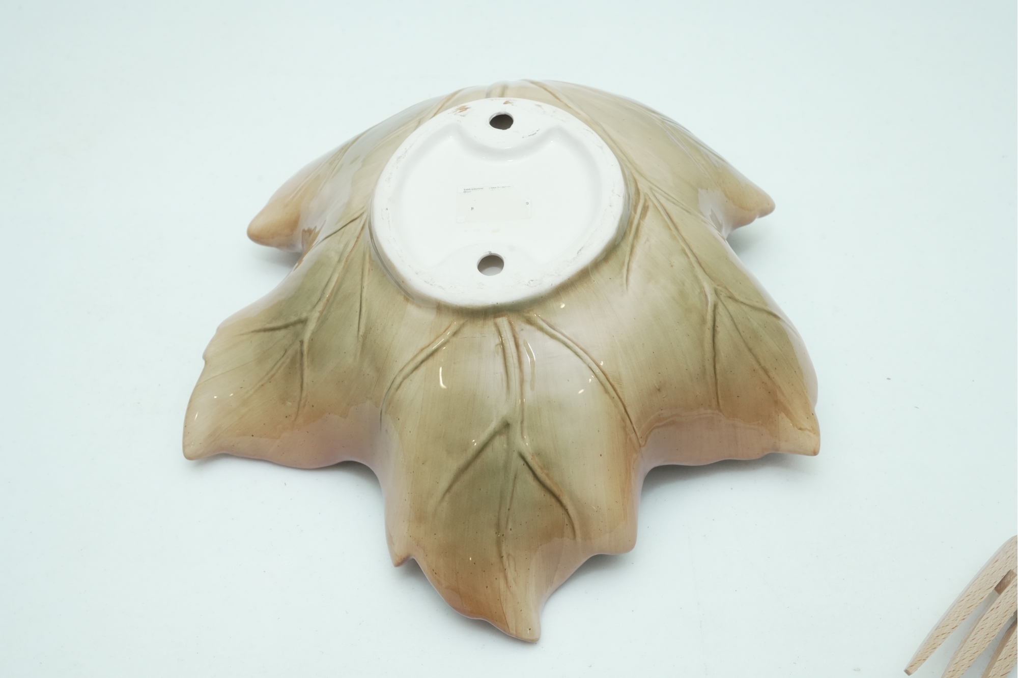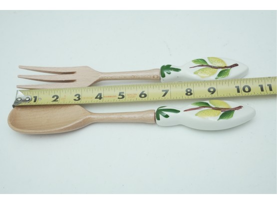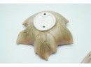 Leaf-Shaped Ceramic Bowl With Wooden & Ceramic Serving Utensils