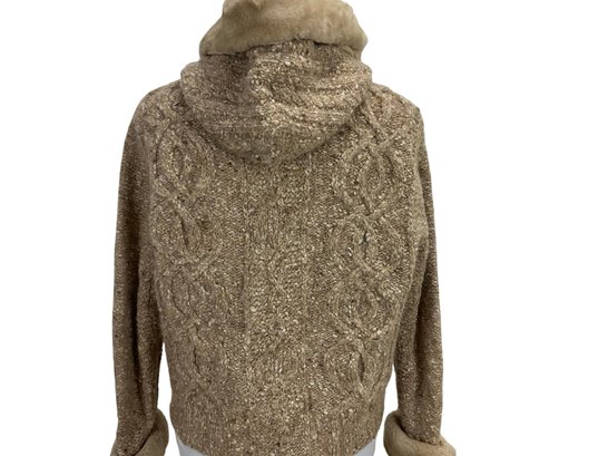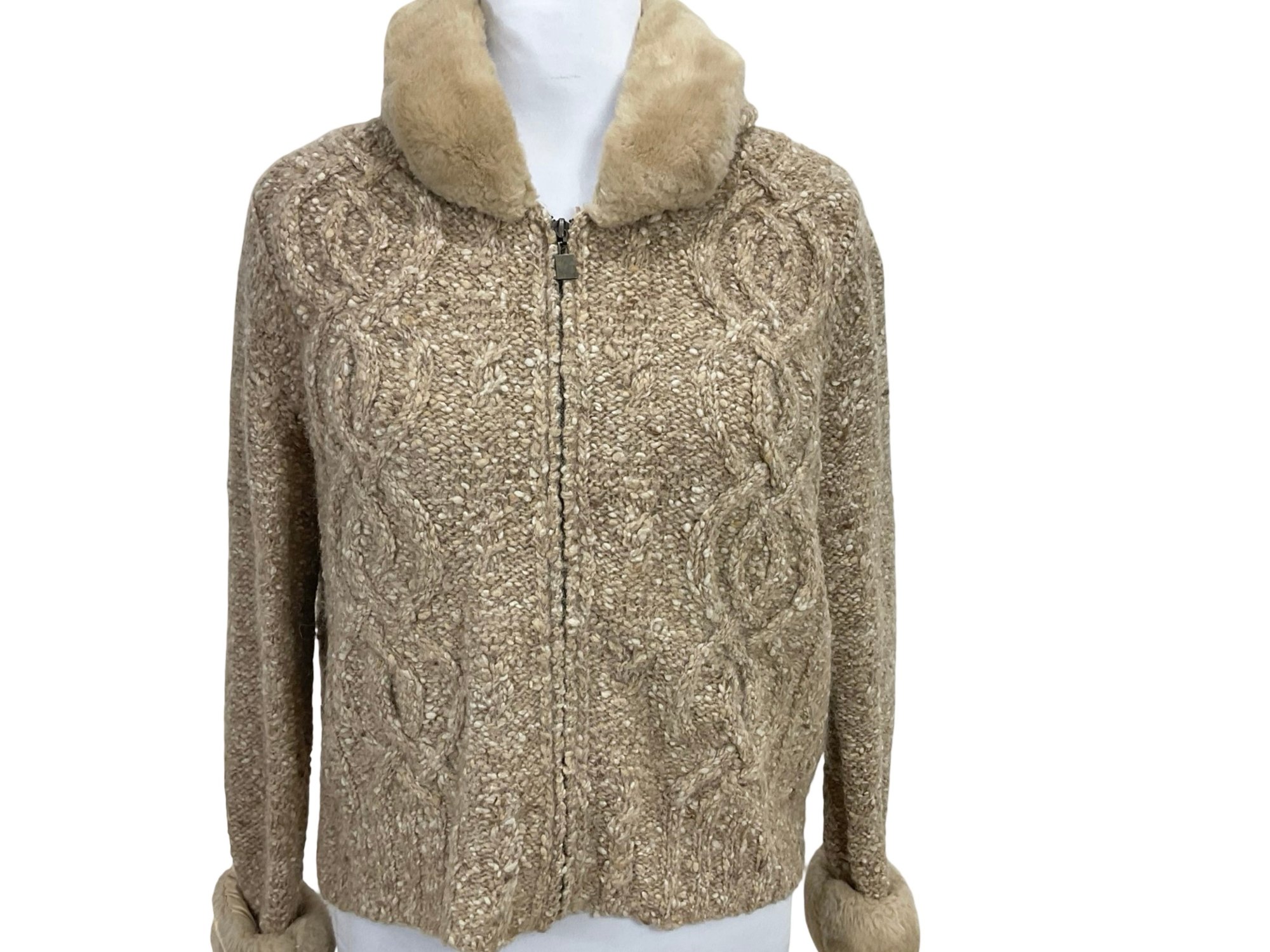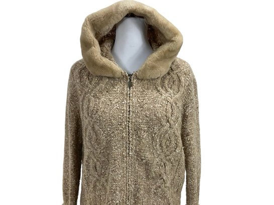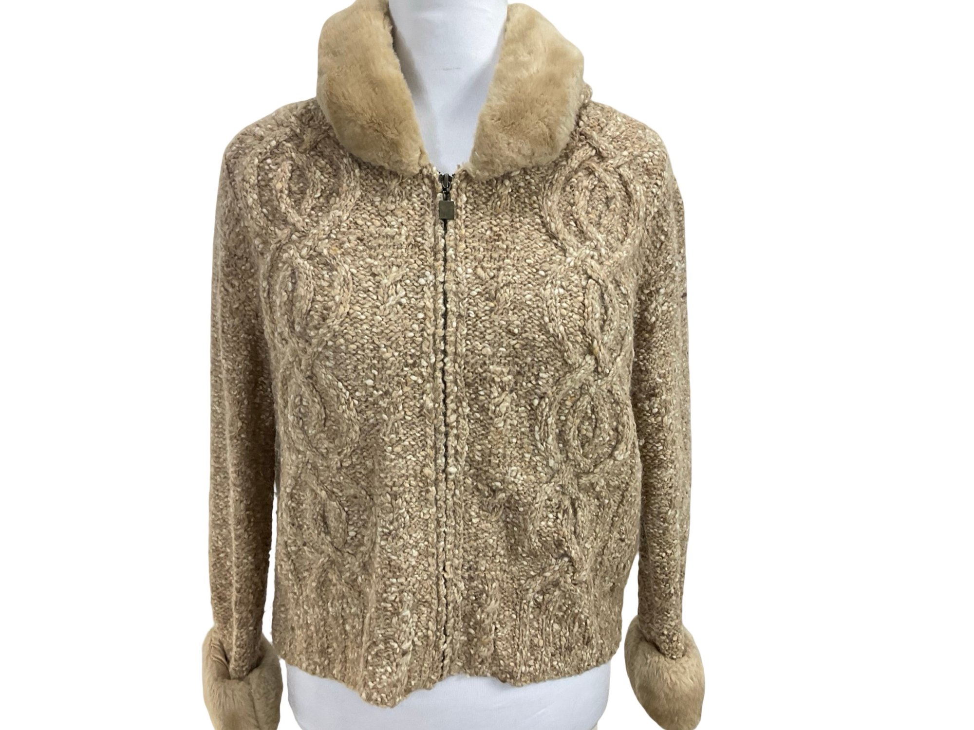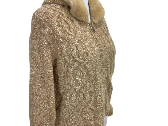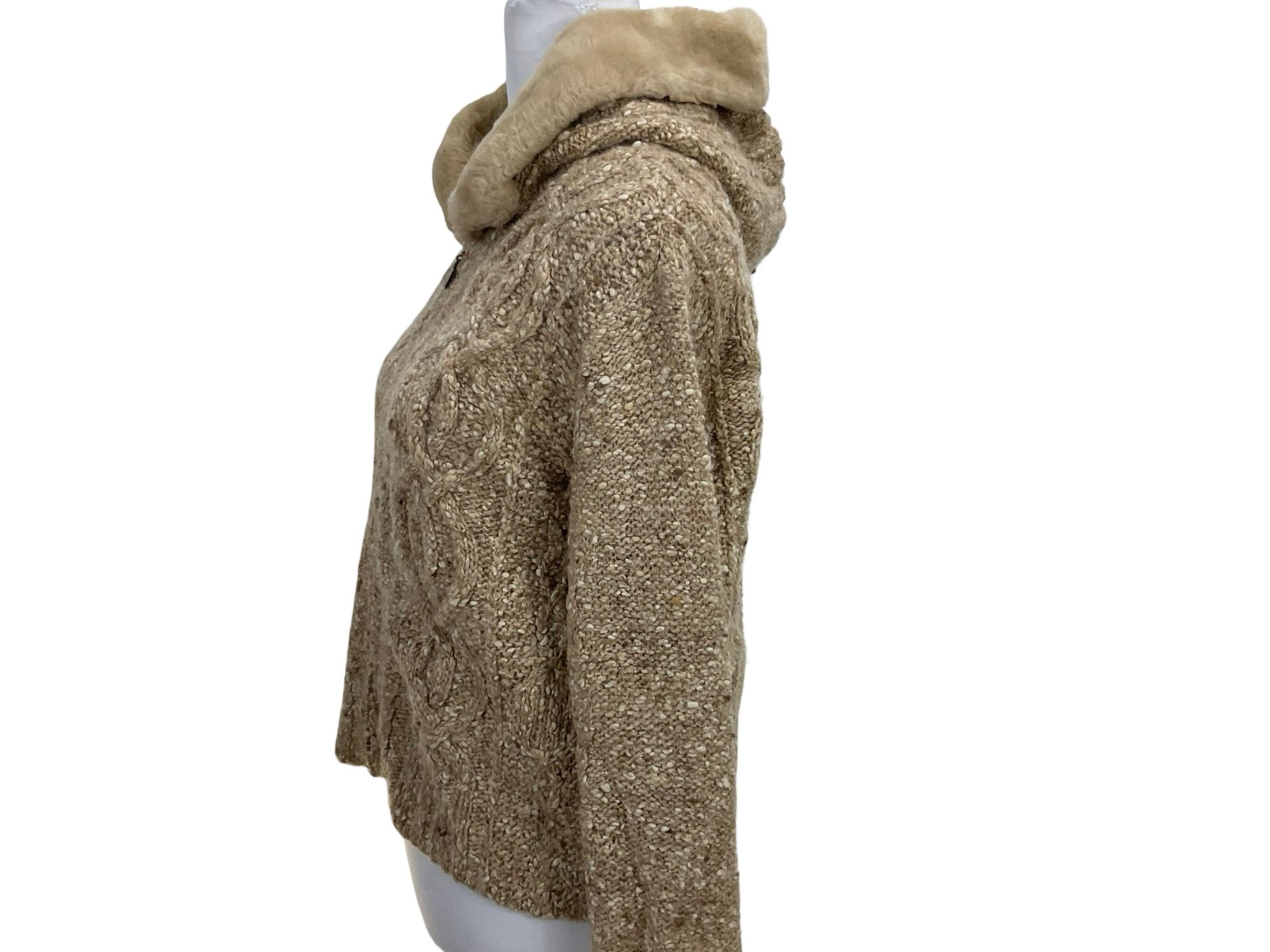 Liz Claiborne Petite Wool Zippered Sweater With Faux Fur Collar Size S