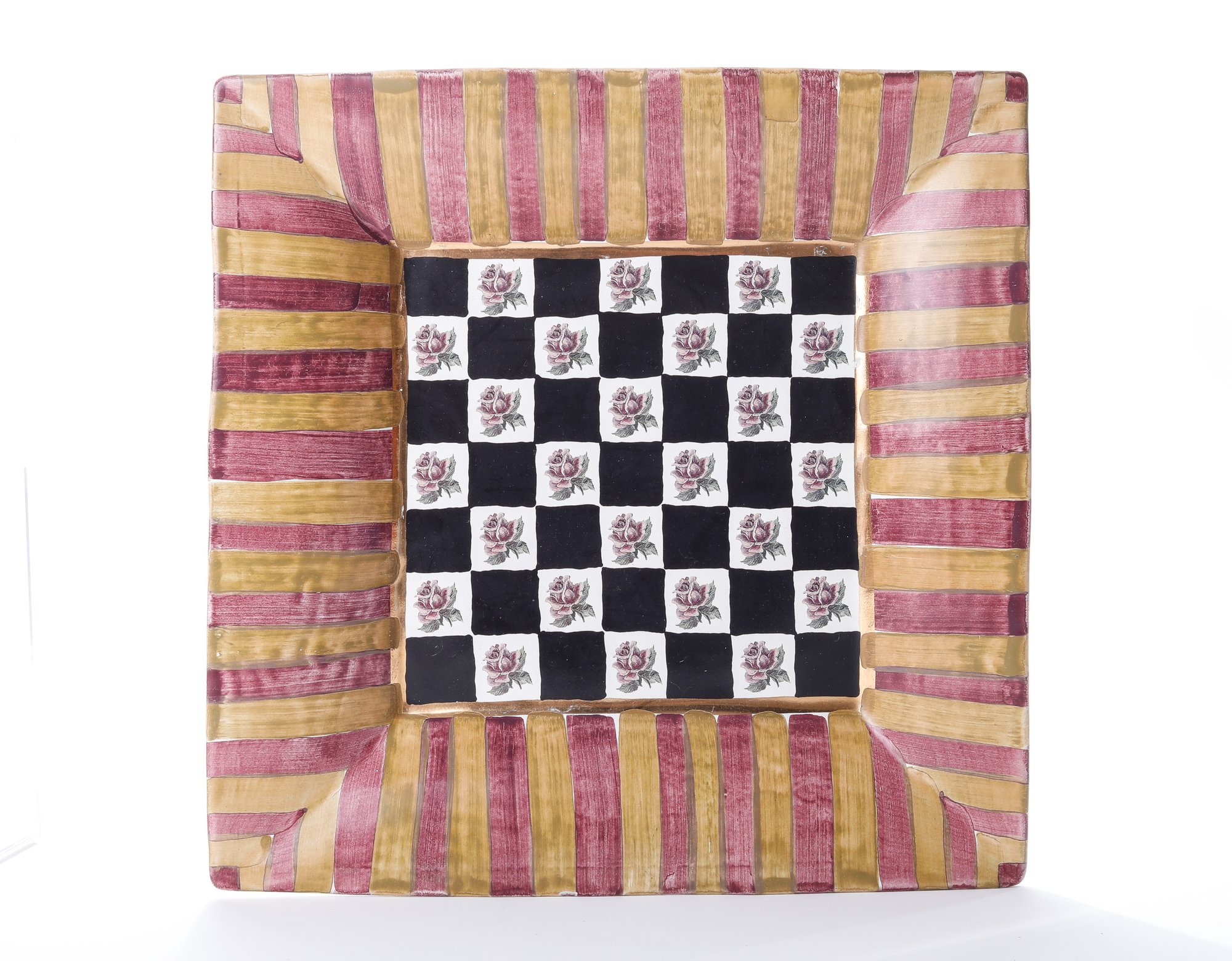 Vtg Mackenzie Childs Ceramic Torquay Frank Mustard Square Dinner plate- measures 12 x 12 and in very good condition