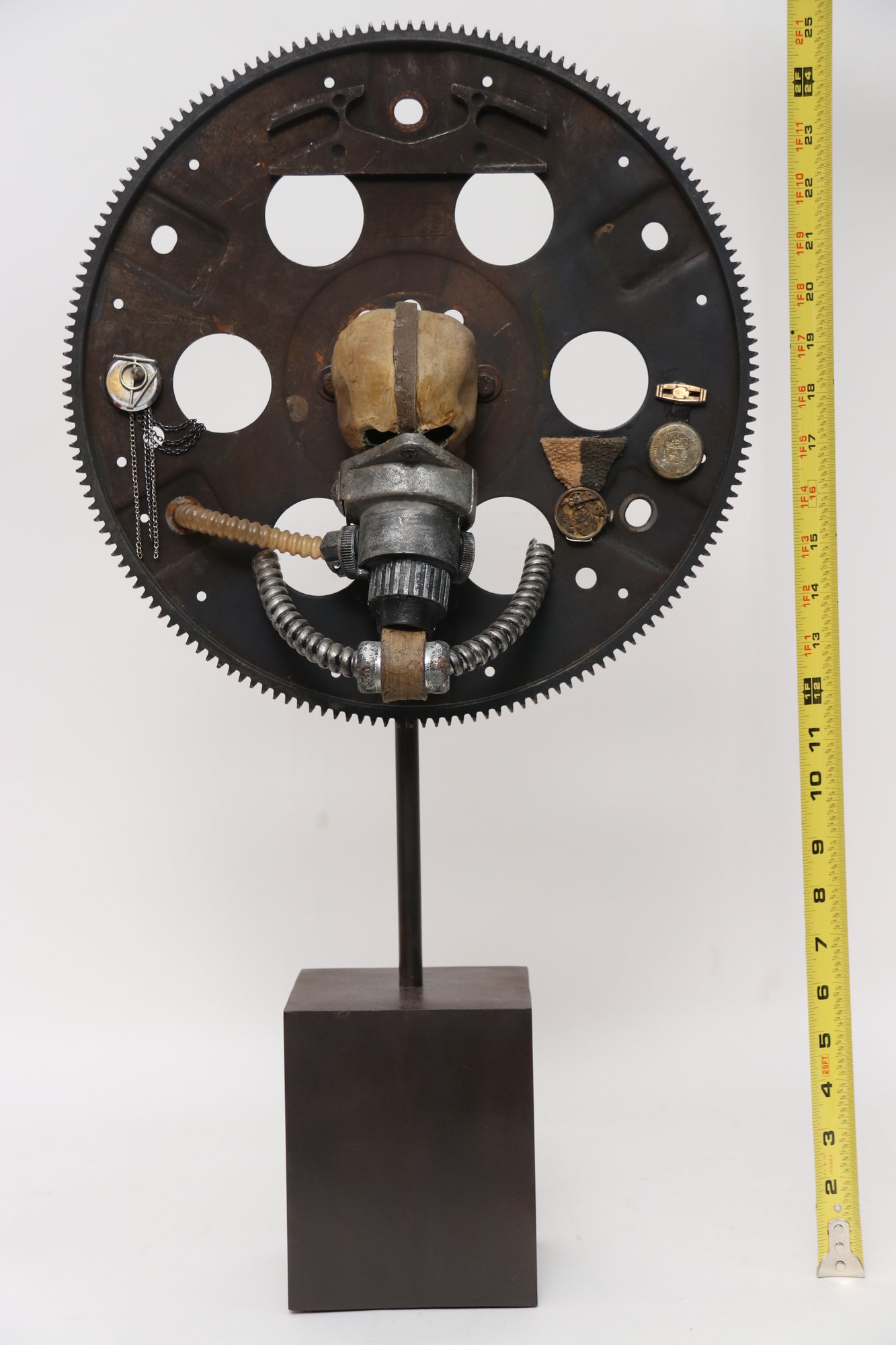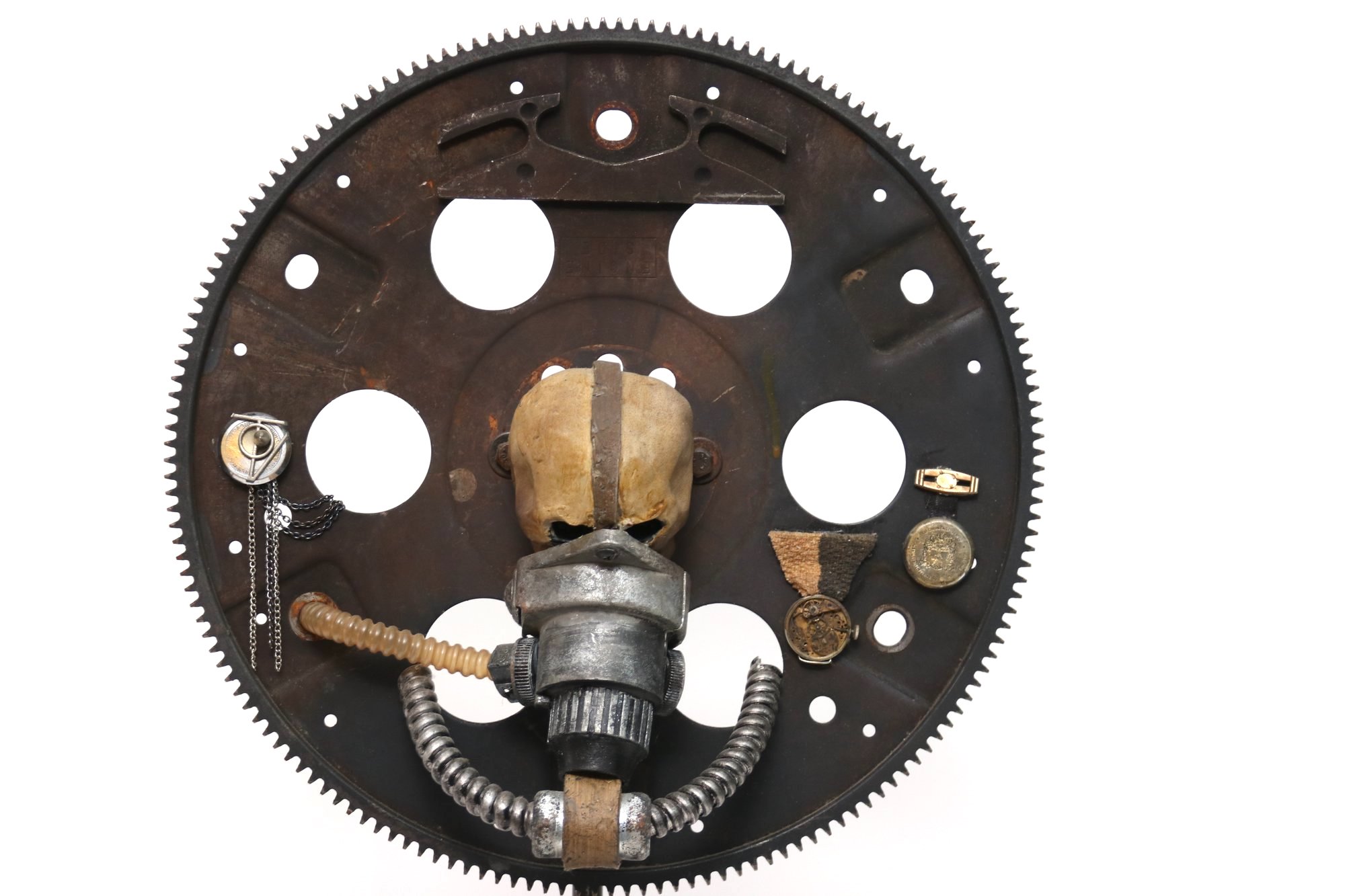 Mad Max: Fury Road-steering wheel sculpture is a unique art piece reminiscent of the film's rugged and dystopian world. Given the central role that vehicles play in the Mad Max series, particularly "Fury Road," the steering wheel holds significant symbolism and could serve as a powerful artistic representation.