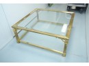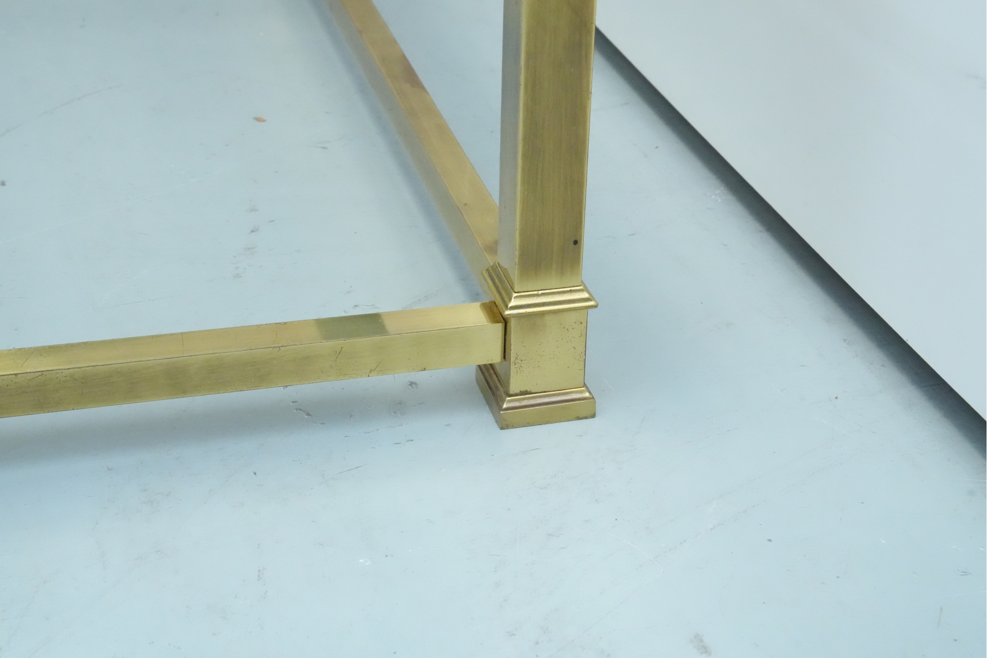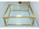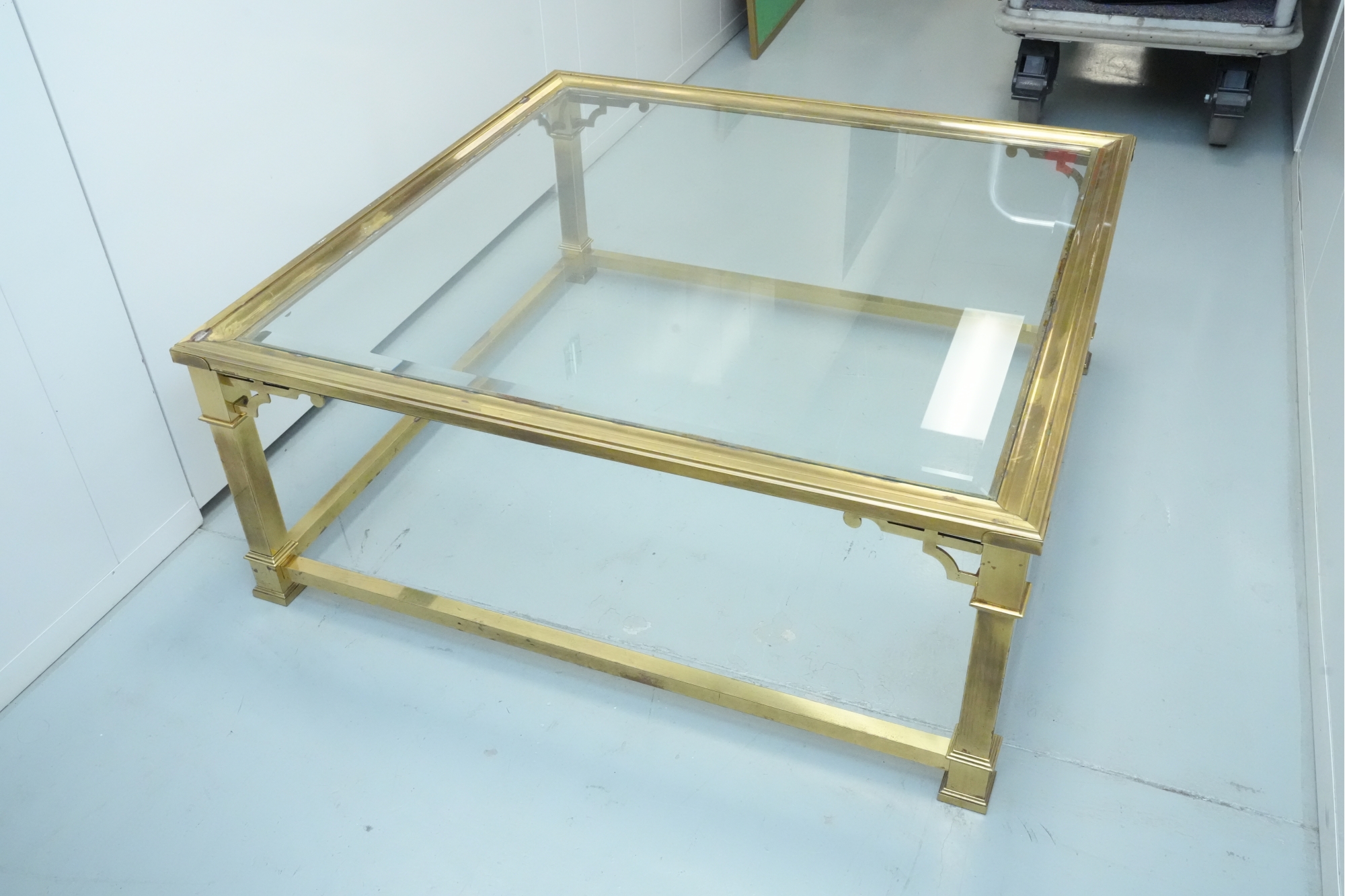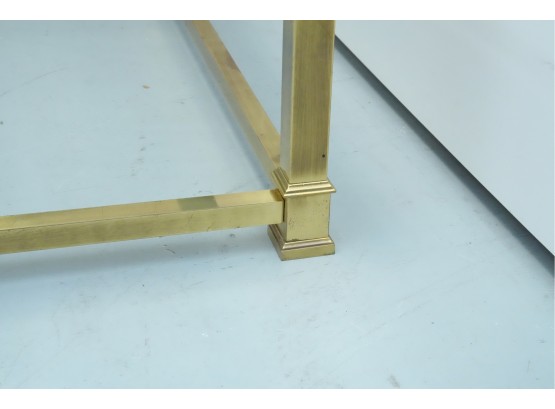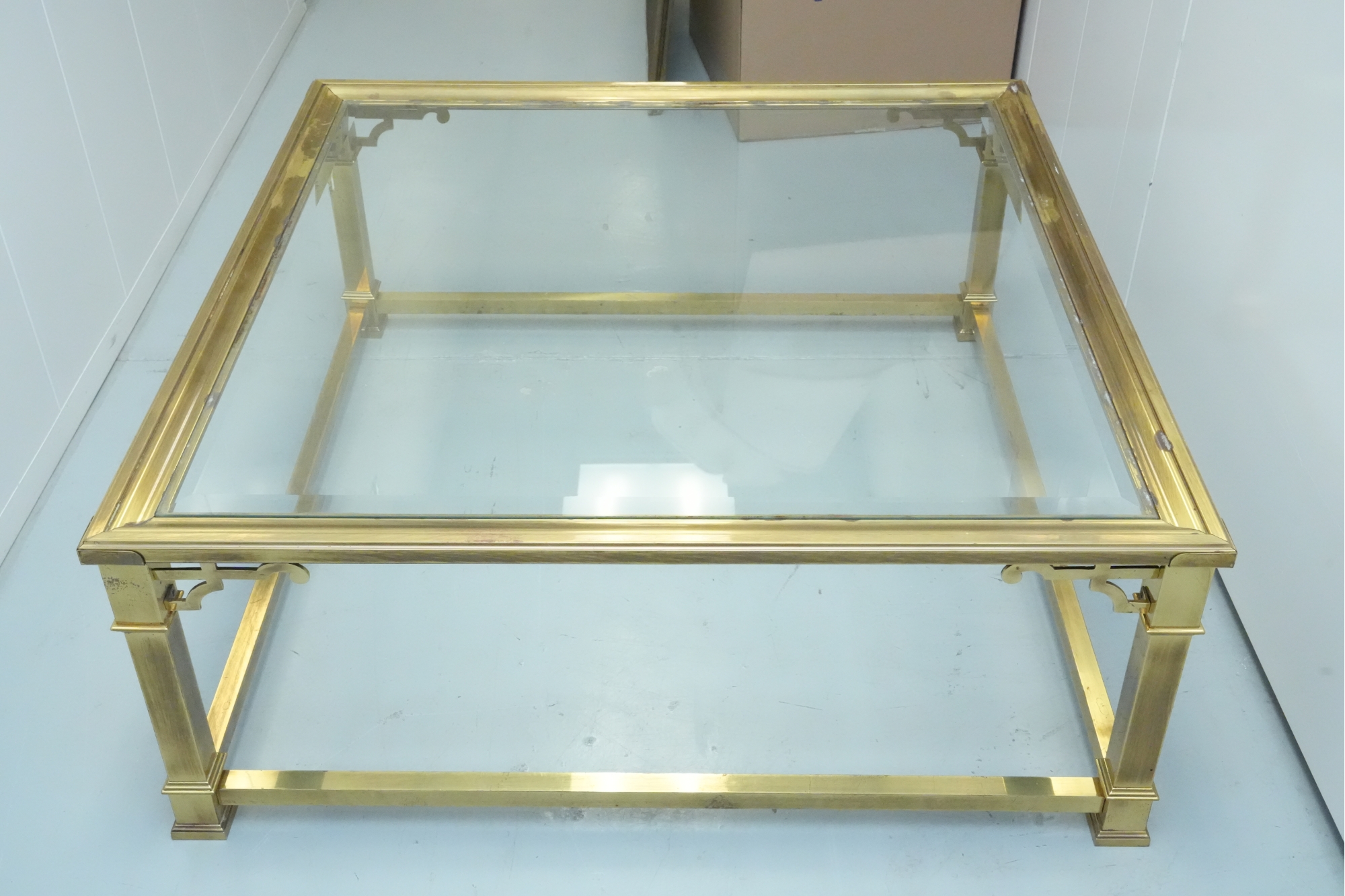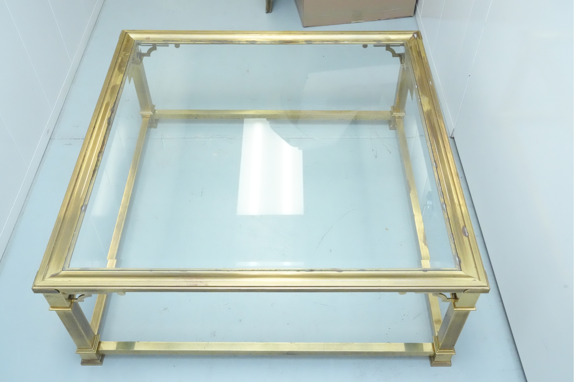 Vintage (1970s) Mastercraft Furniture Company (U.S.A.) brass and glass Greek key coffee table. Glass table does have a chip