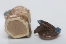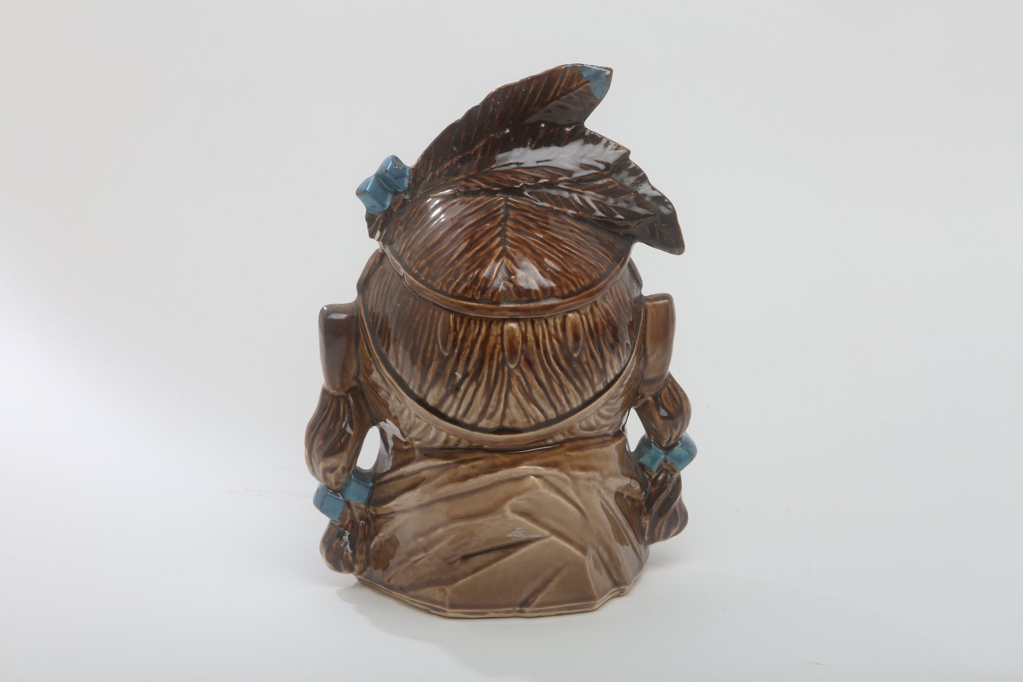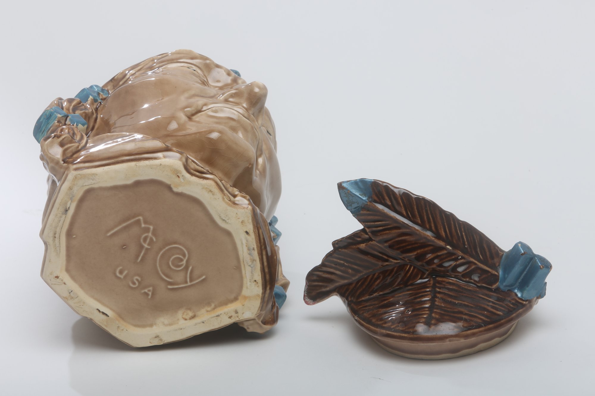The Indian Chief Bust is a sculptural piece depicting the bust or head of a Native American chief. McCoy Pottery produced various versions of this piece, often showcasing detailed facial features, headdress, and traditional attire associated with Native American chiefs.