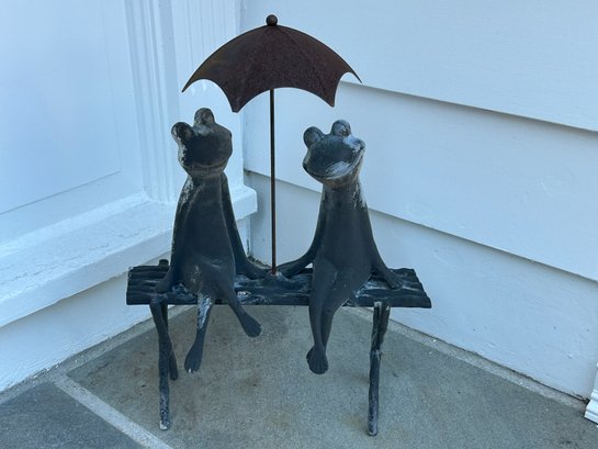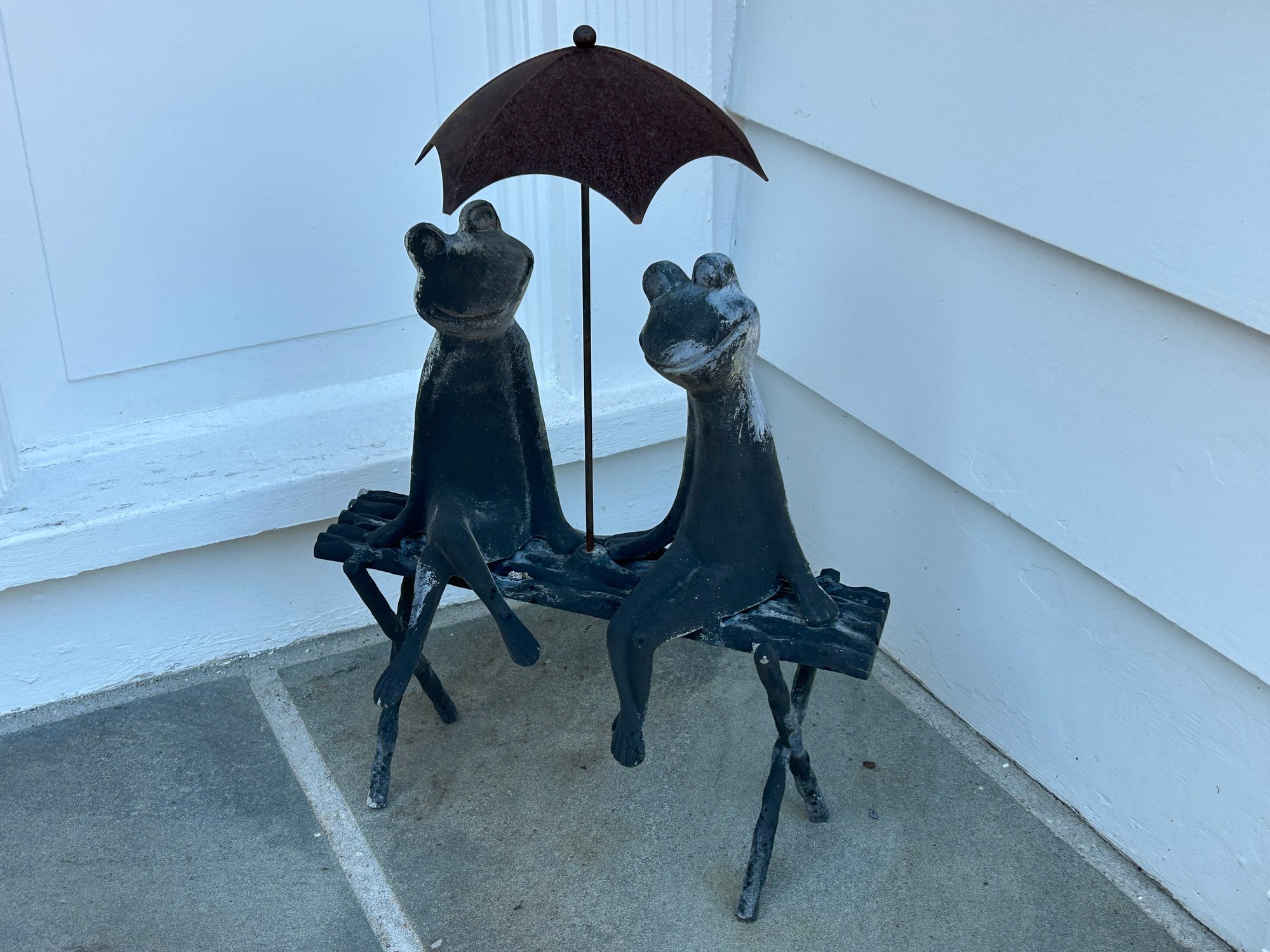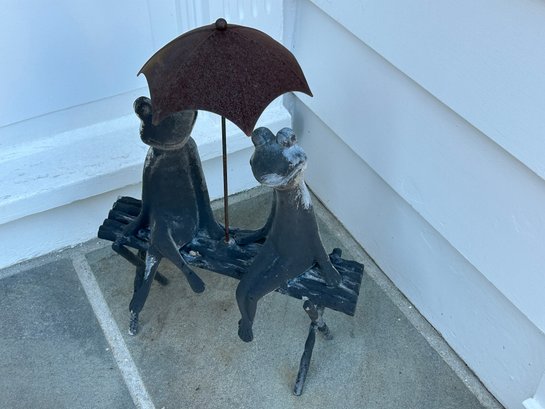 Condition: Aluminum statue, rust to umbrella as shown. Sold as is.