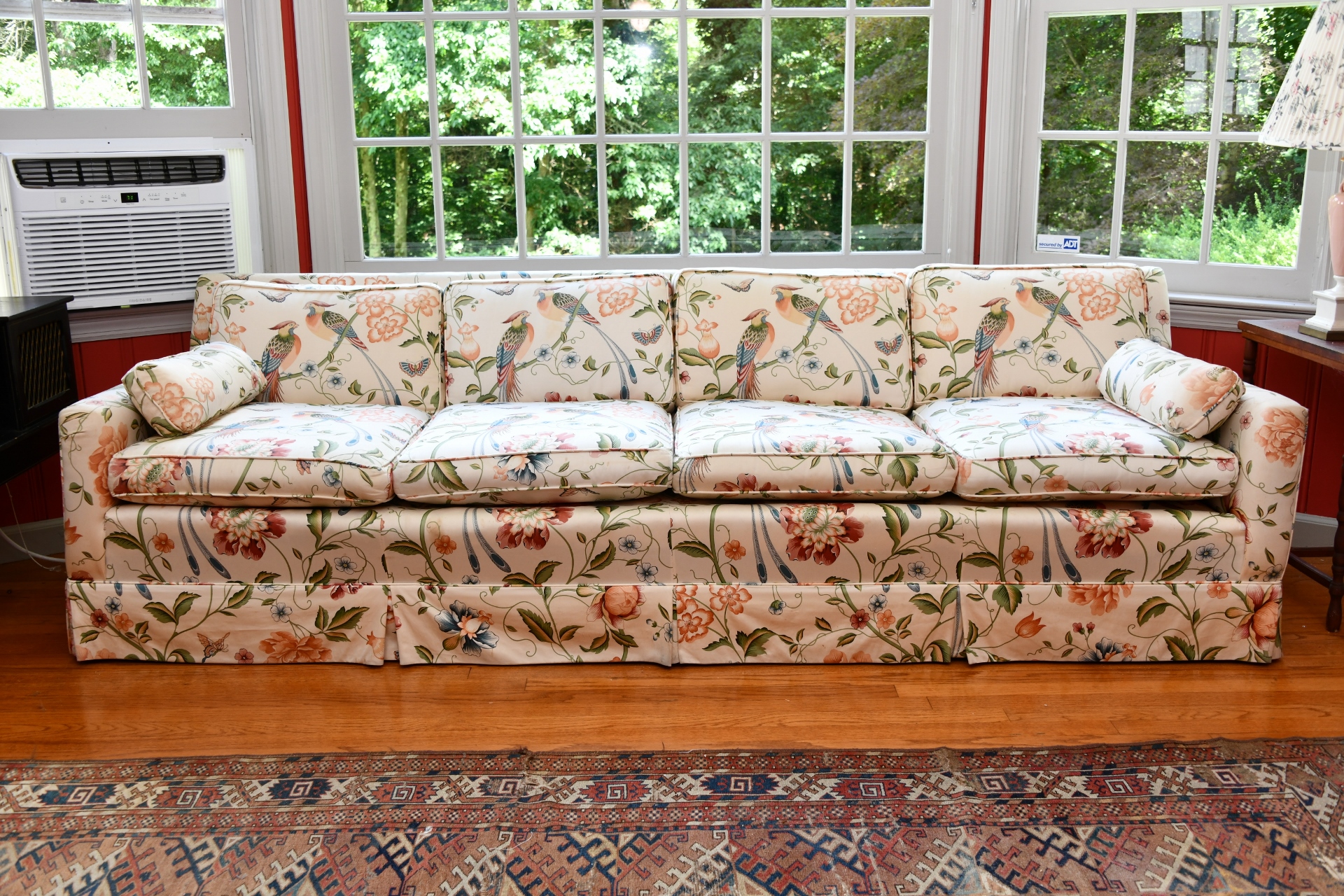 Notes: first half 20th century, with loose cushions and bolster pillows. condition is overall good, scattered stains and soiled scuffs.