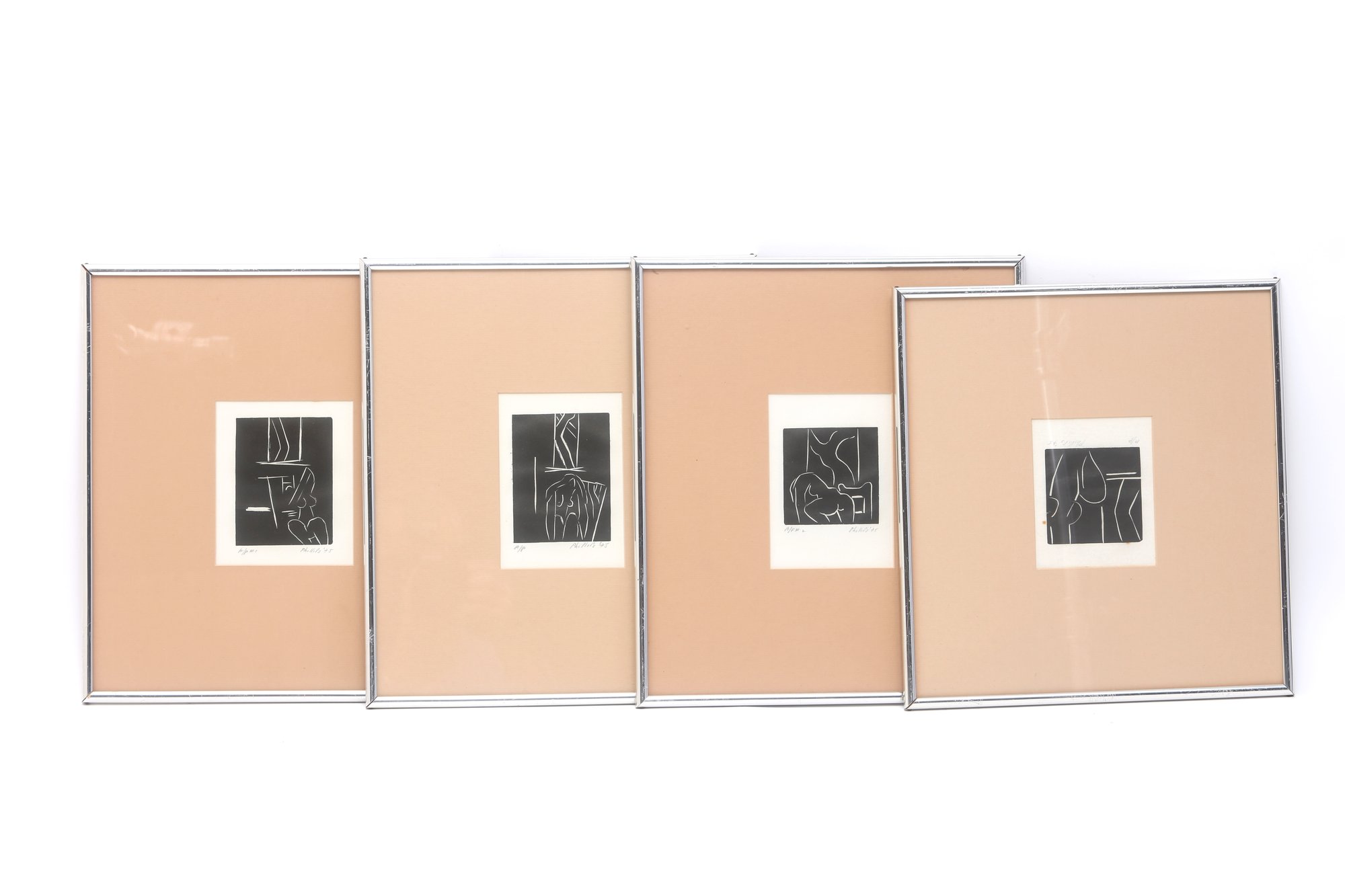 4 amazing abstract works matted and framed in chrome frames measuring 13 x 14"