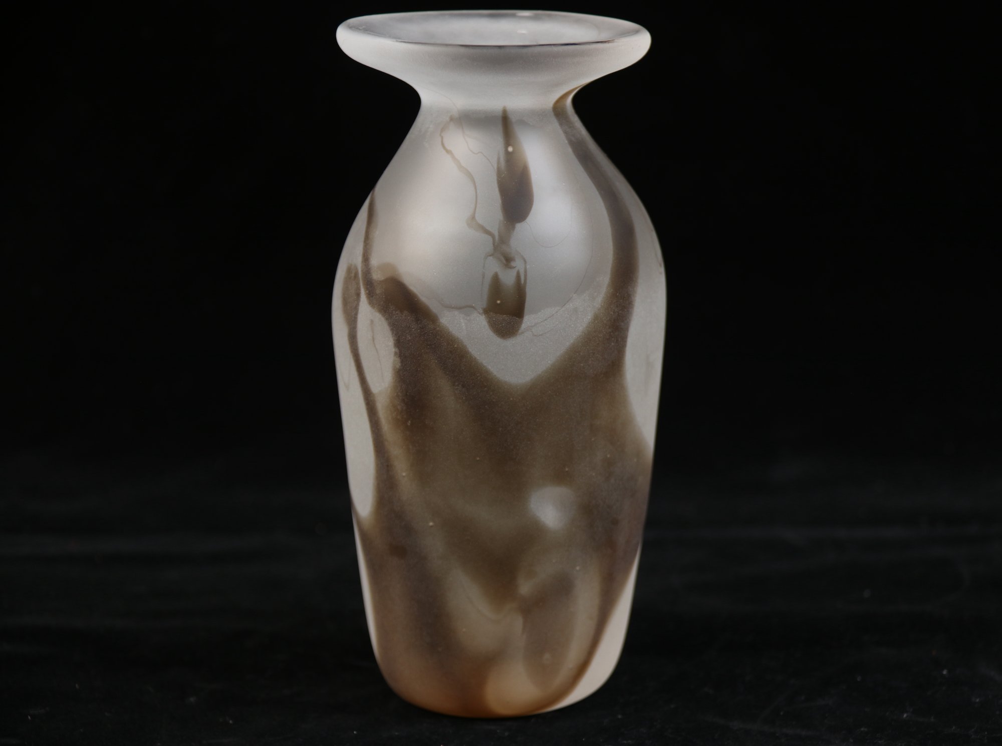 Mid Century Art Glass Earth Tone Vase in good condition with wear on bottom from display- measures 3 x 6