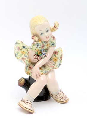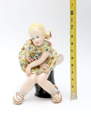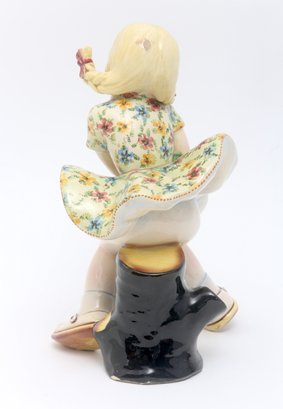 Ceramic Sculpture Of Little Girl In A Dress- marked on the back side of the figurine