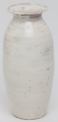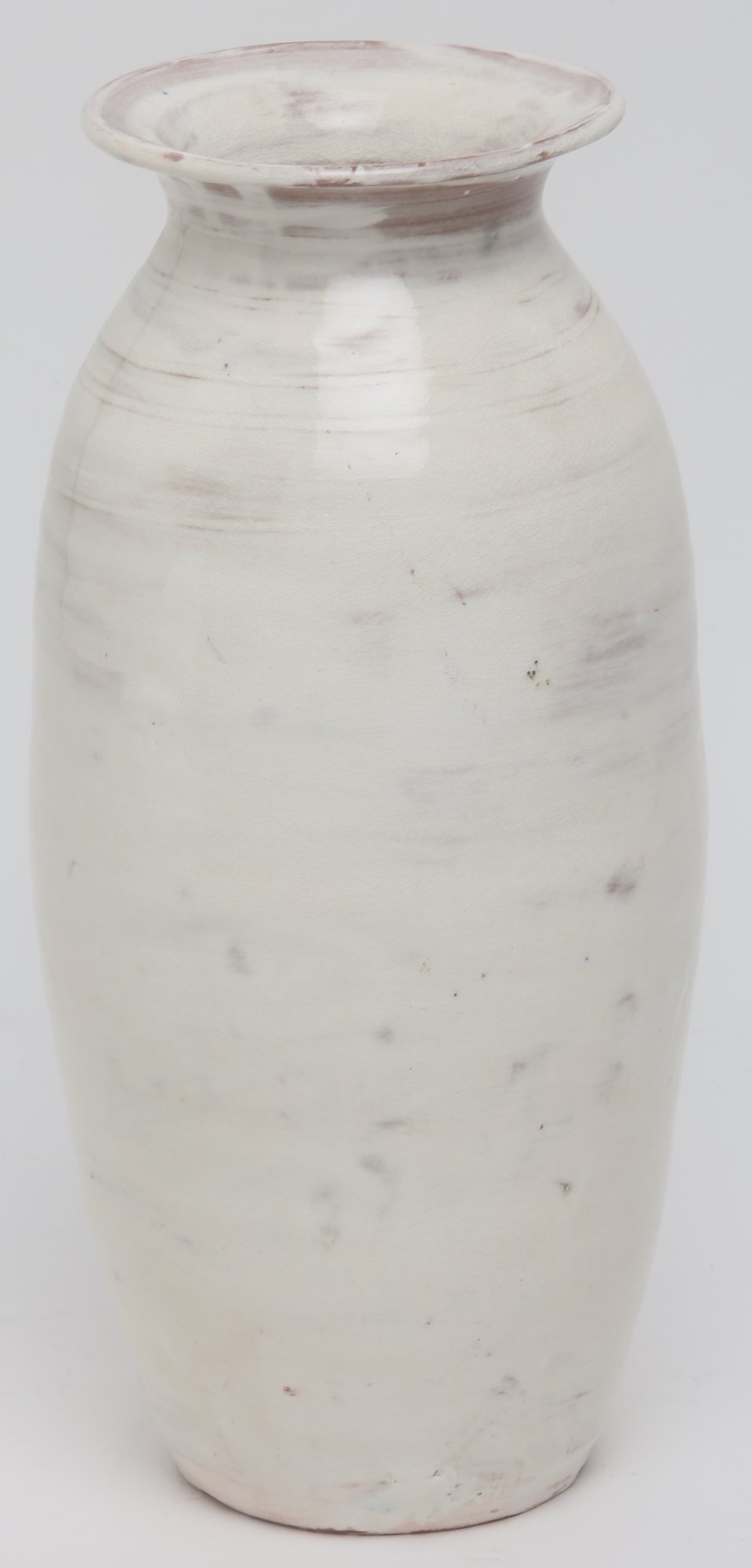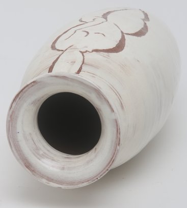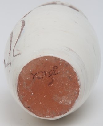 glazed clay white vase with a silhouette of a nude and artist signed on bottom