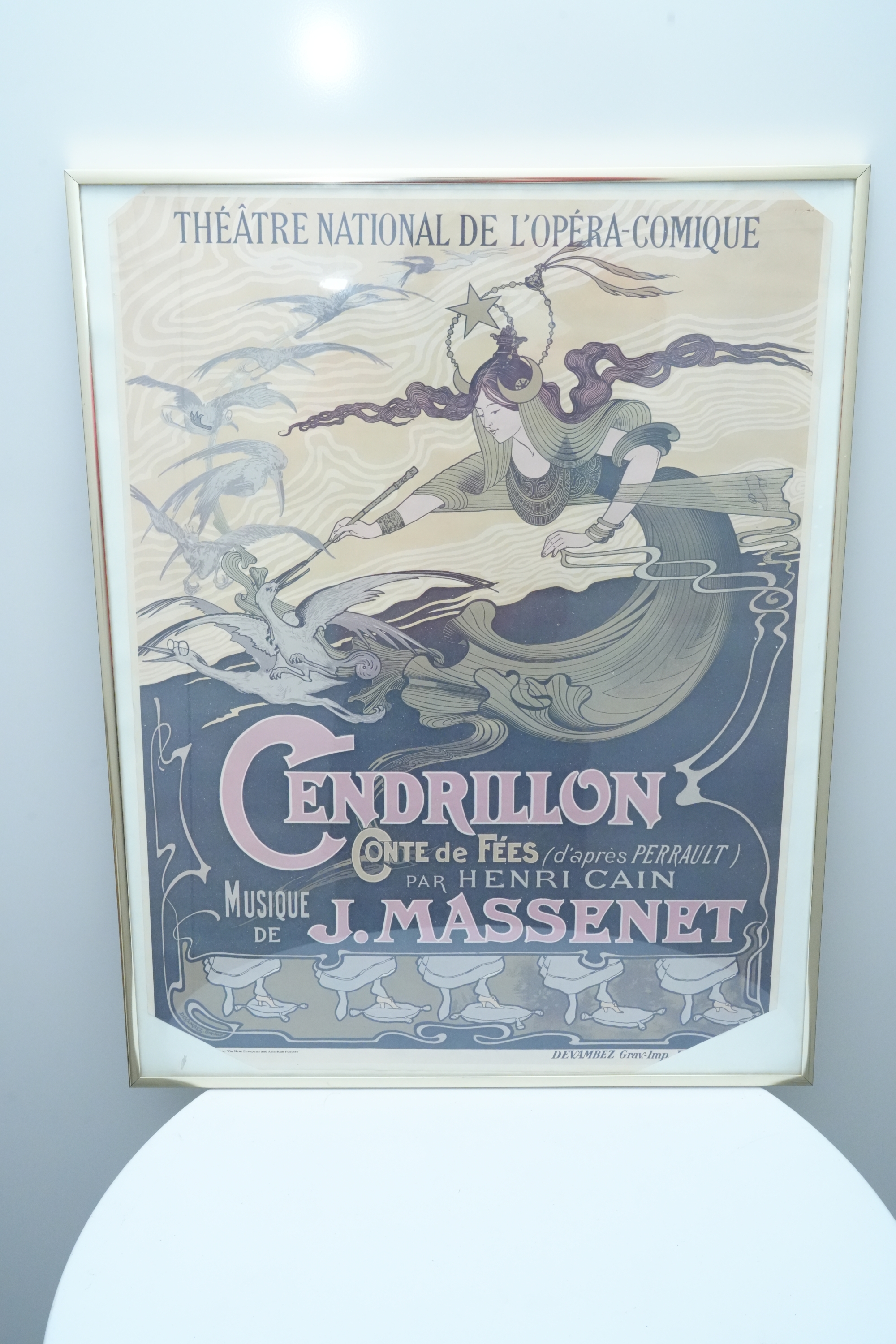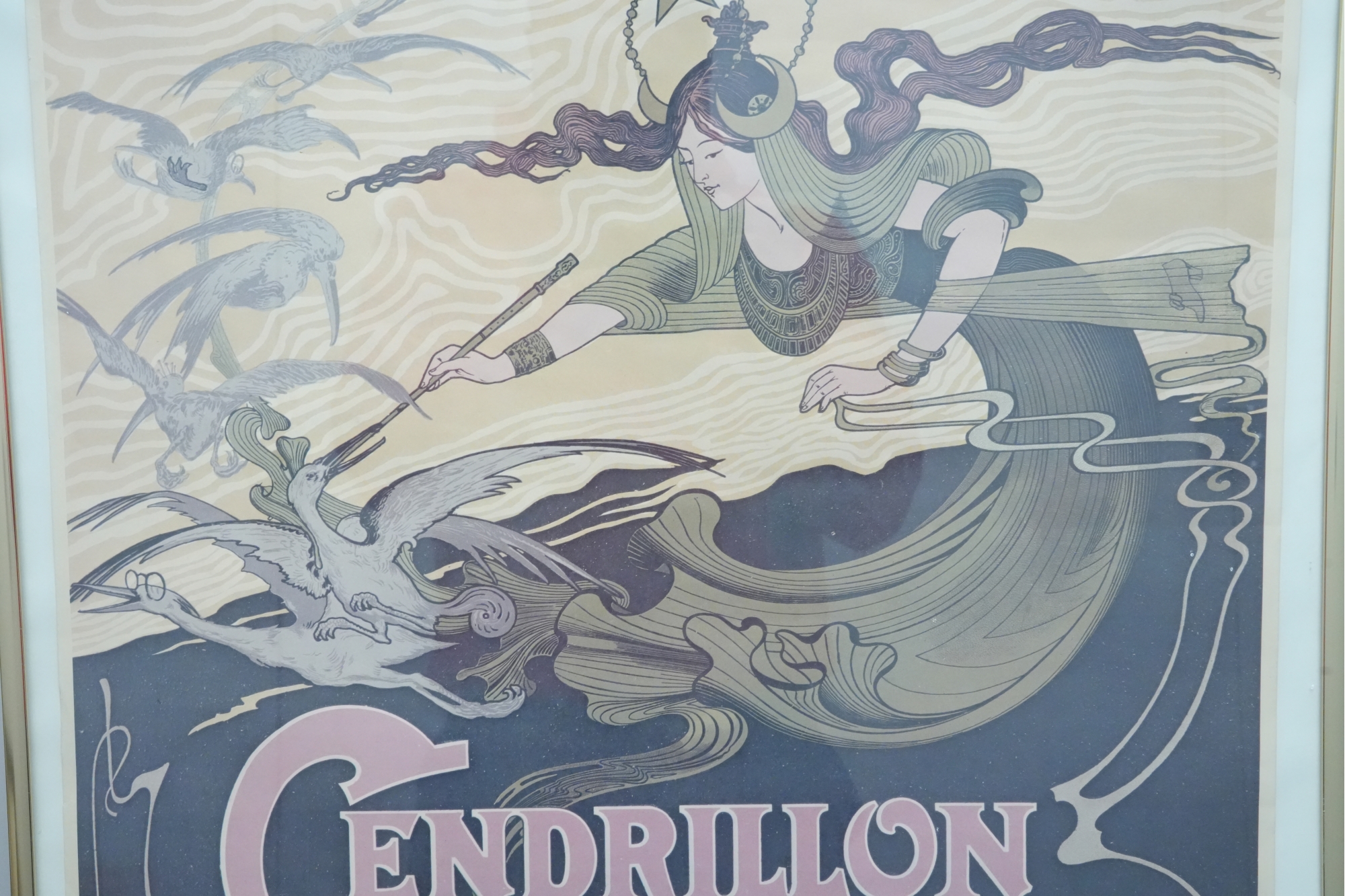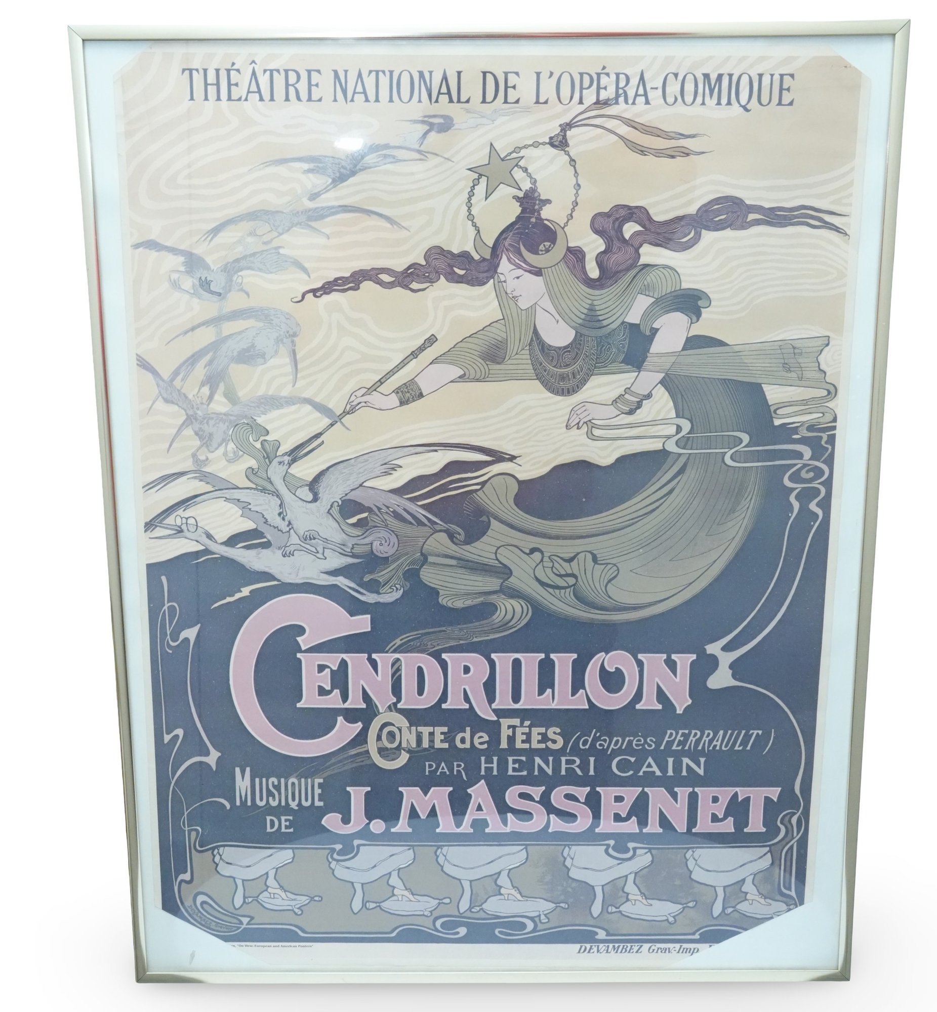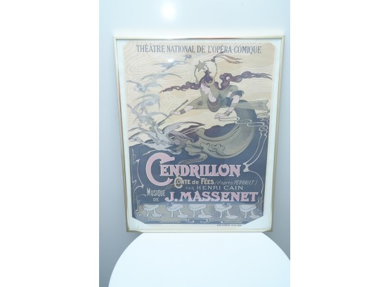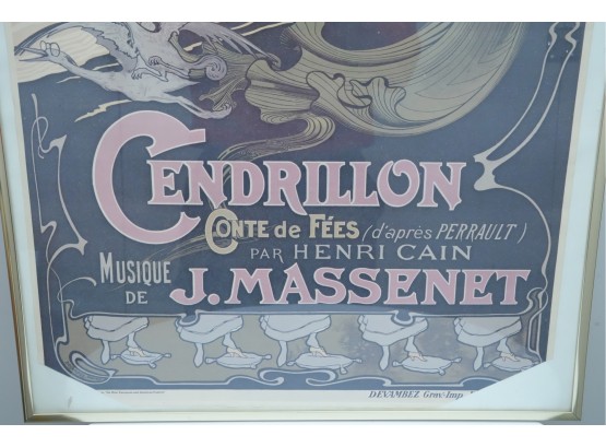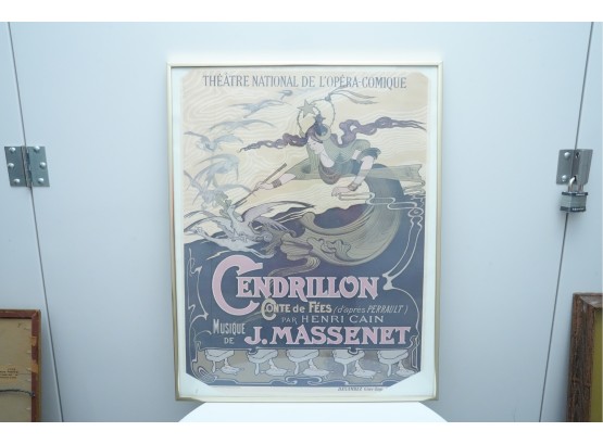 Art Nouveau lithograph poster advertising Jules Massenet's opera "Cendrillon" (Cinderella) première performance at the Théâtre National de l'Opéra-Comique, Paris.