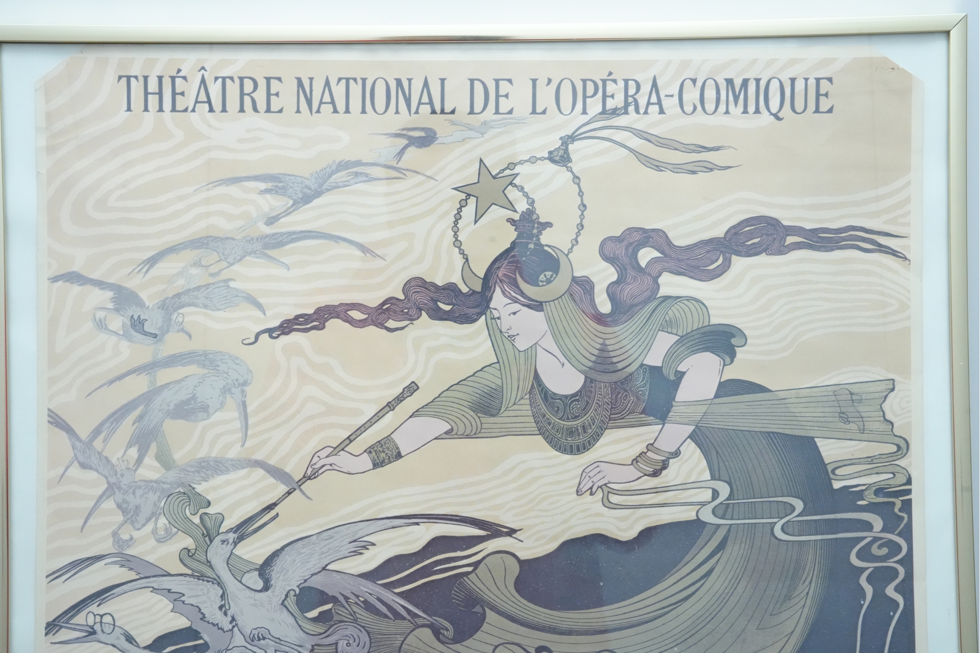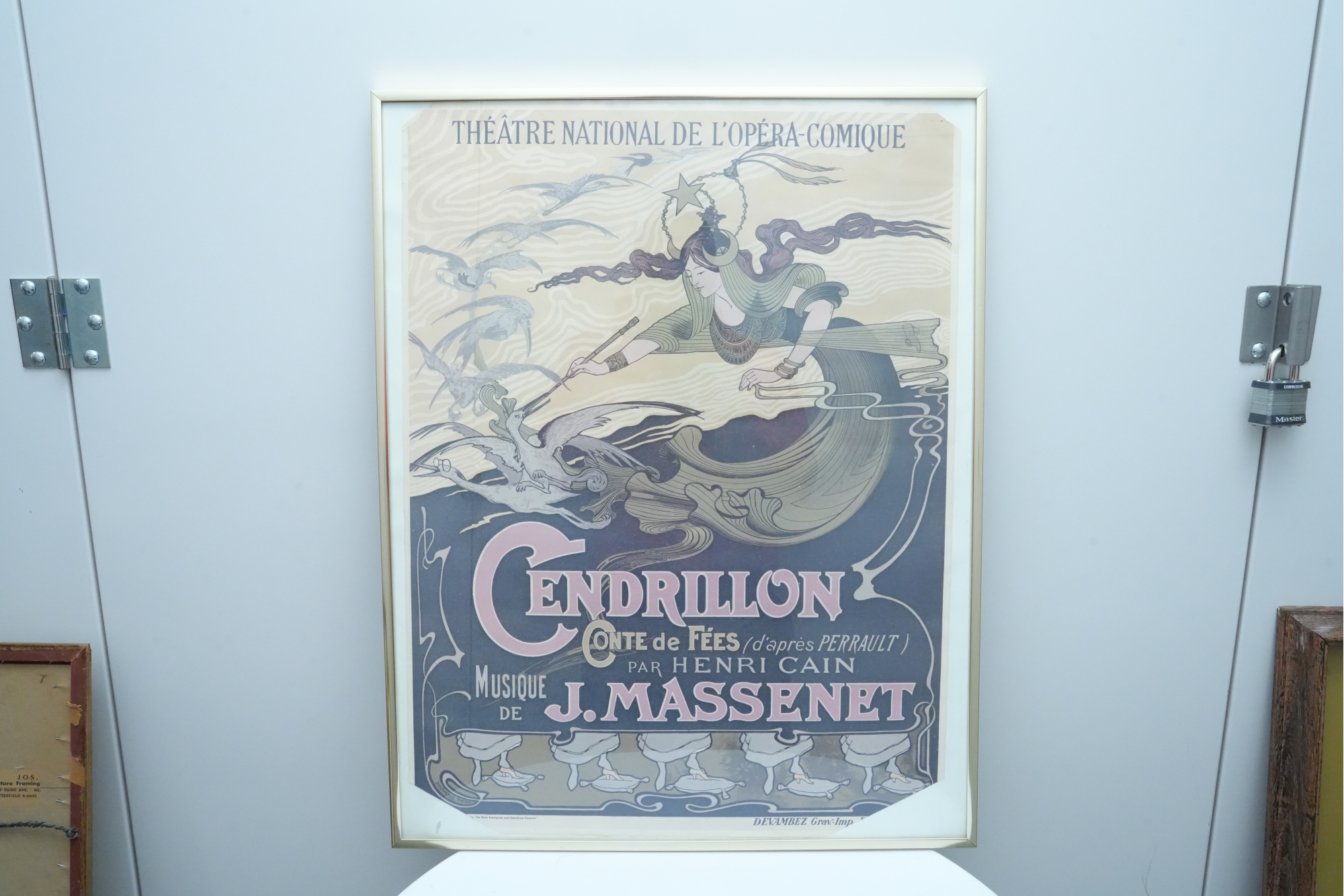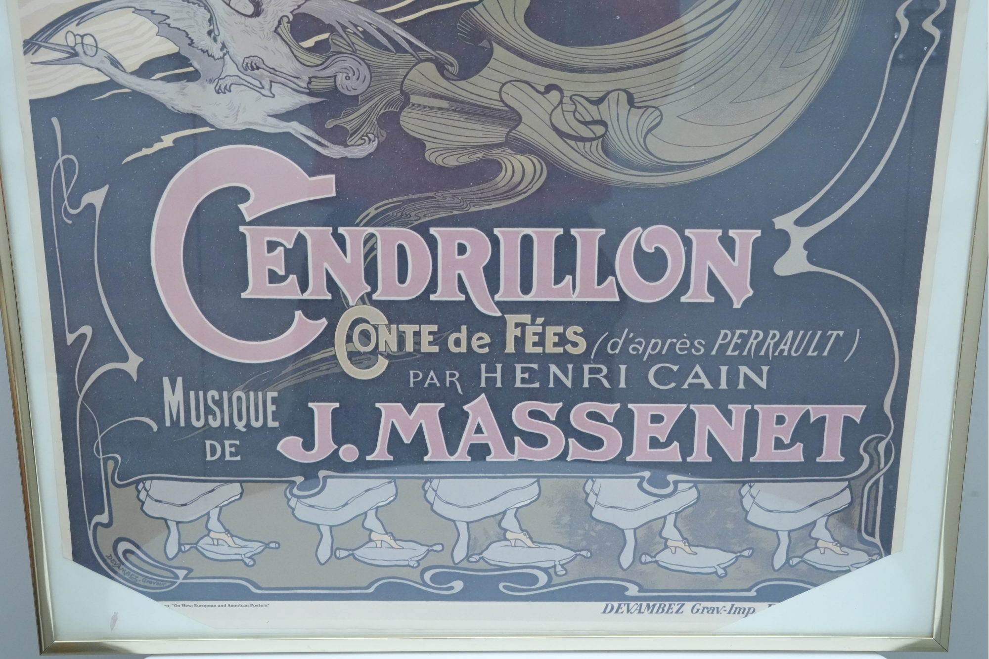 Art Nouveau lithograph poster advertising Jules Massenet's opera "Cendrillon" (Cinderella) première performance at the Théâtre National de l'Opéra-Comique, Paris.