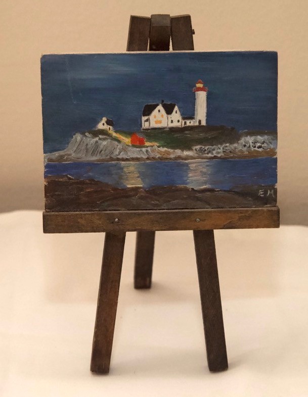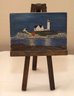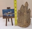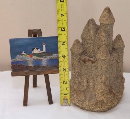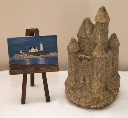Miniature Seascape Painting On Easel And Sandcastle Coin Bank