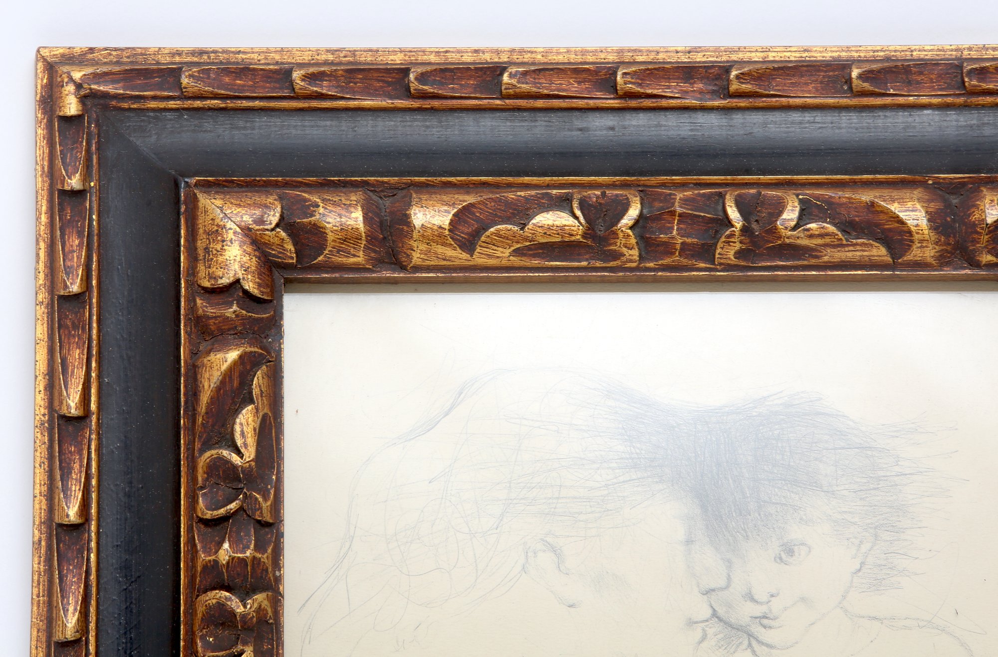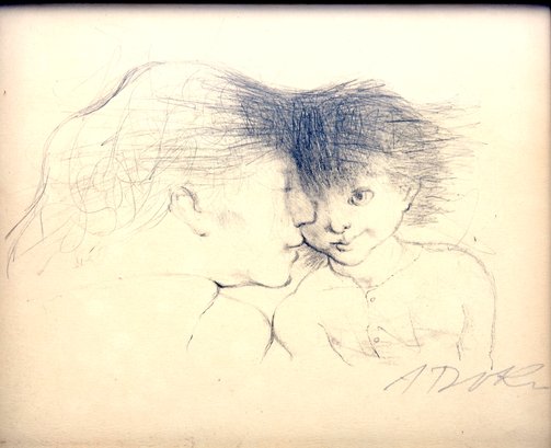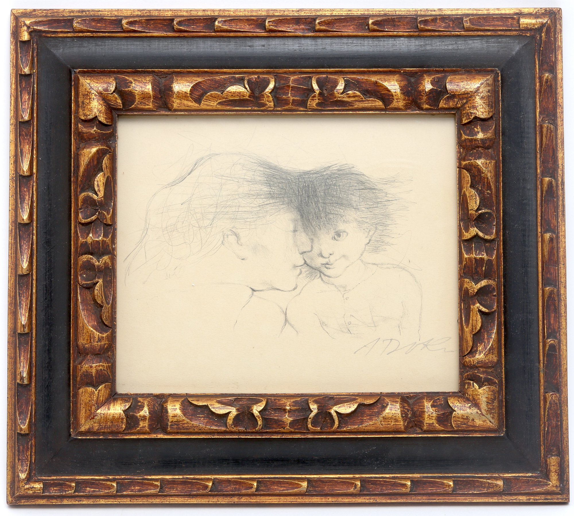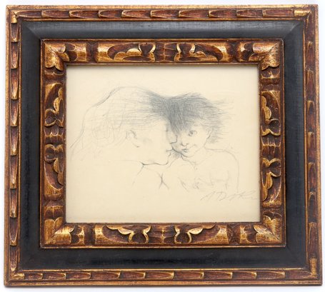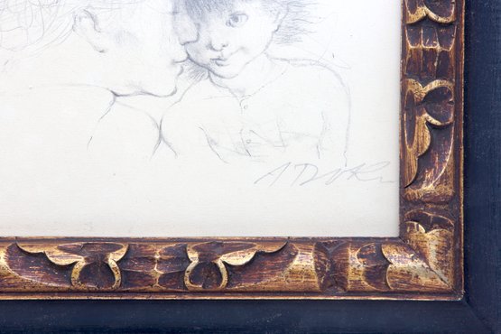 Framed sketch in pencil mother and child