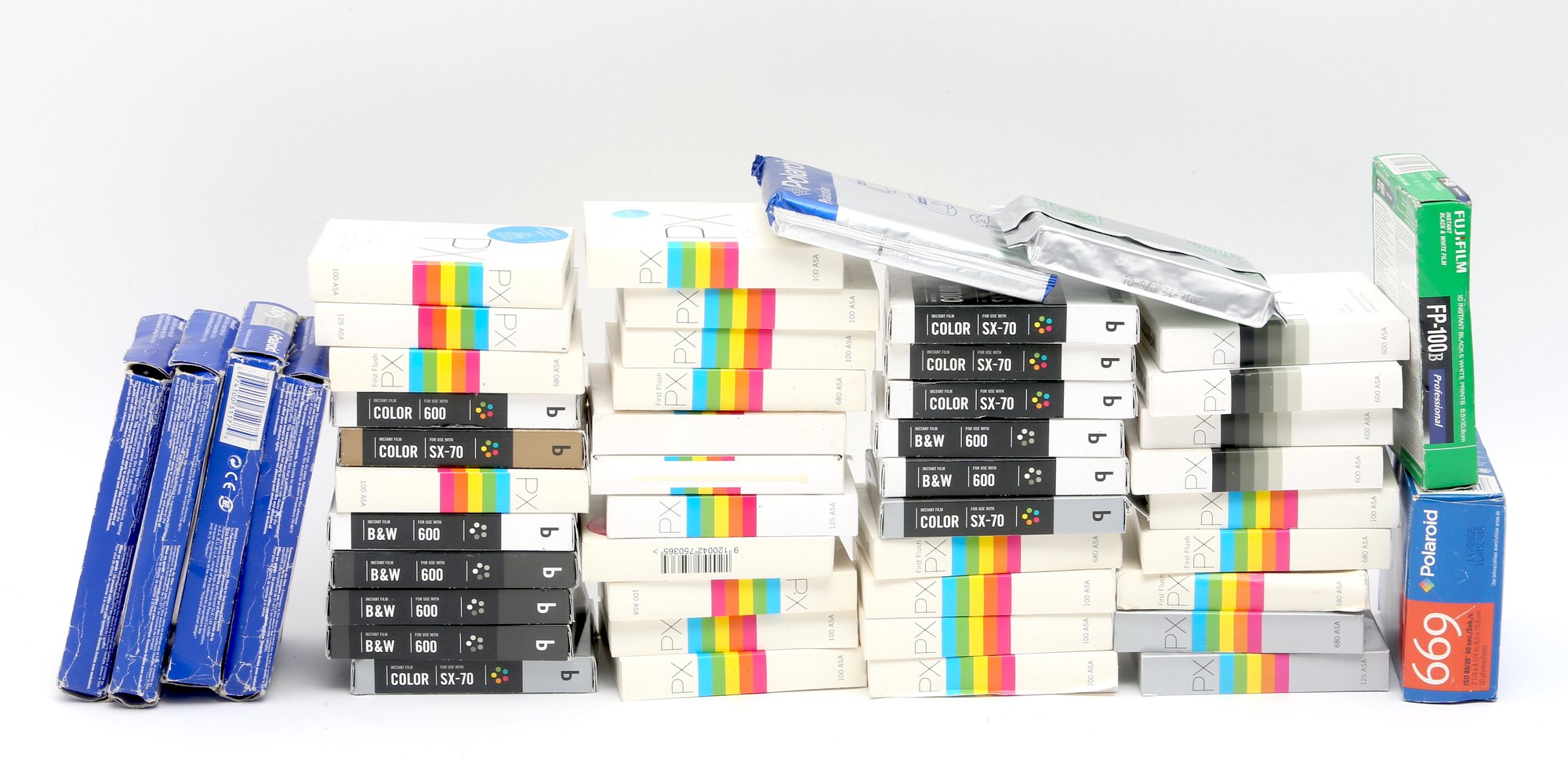 a large selection of Polaroid film sold as is- Looks to be unopened and was stored in a dark dry environment