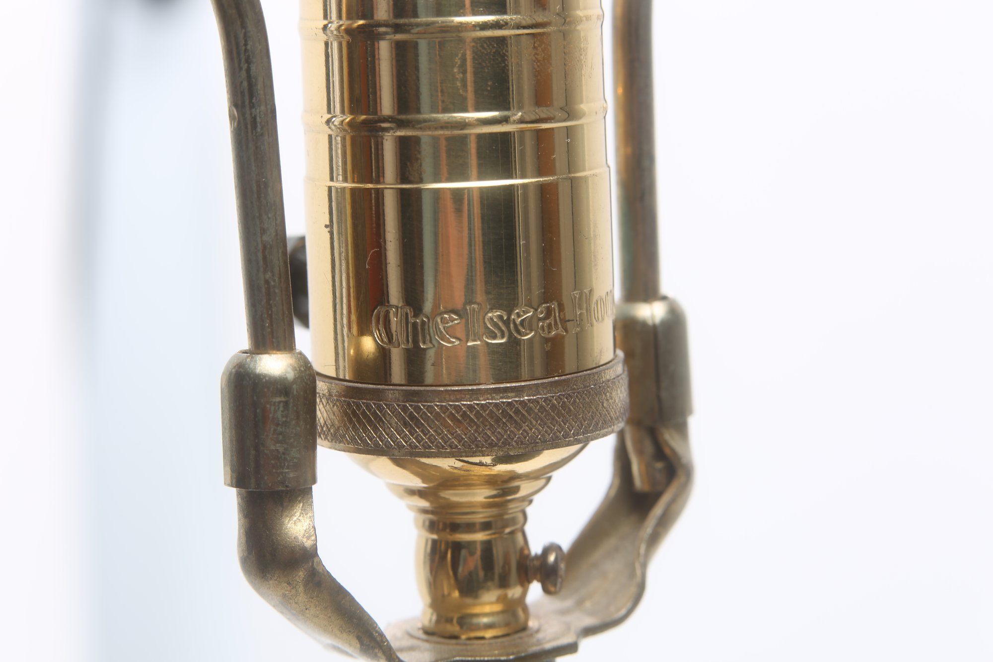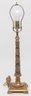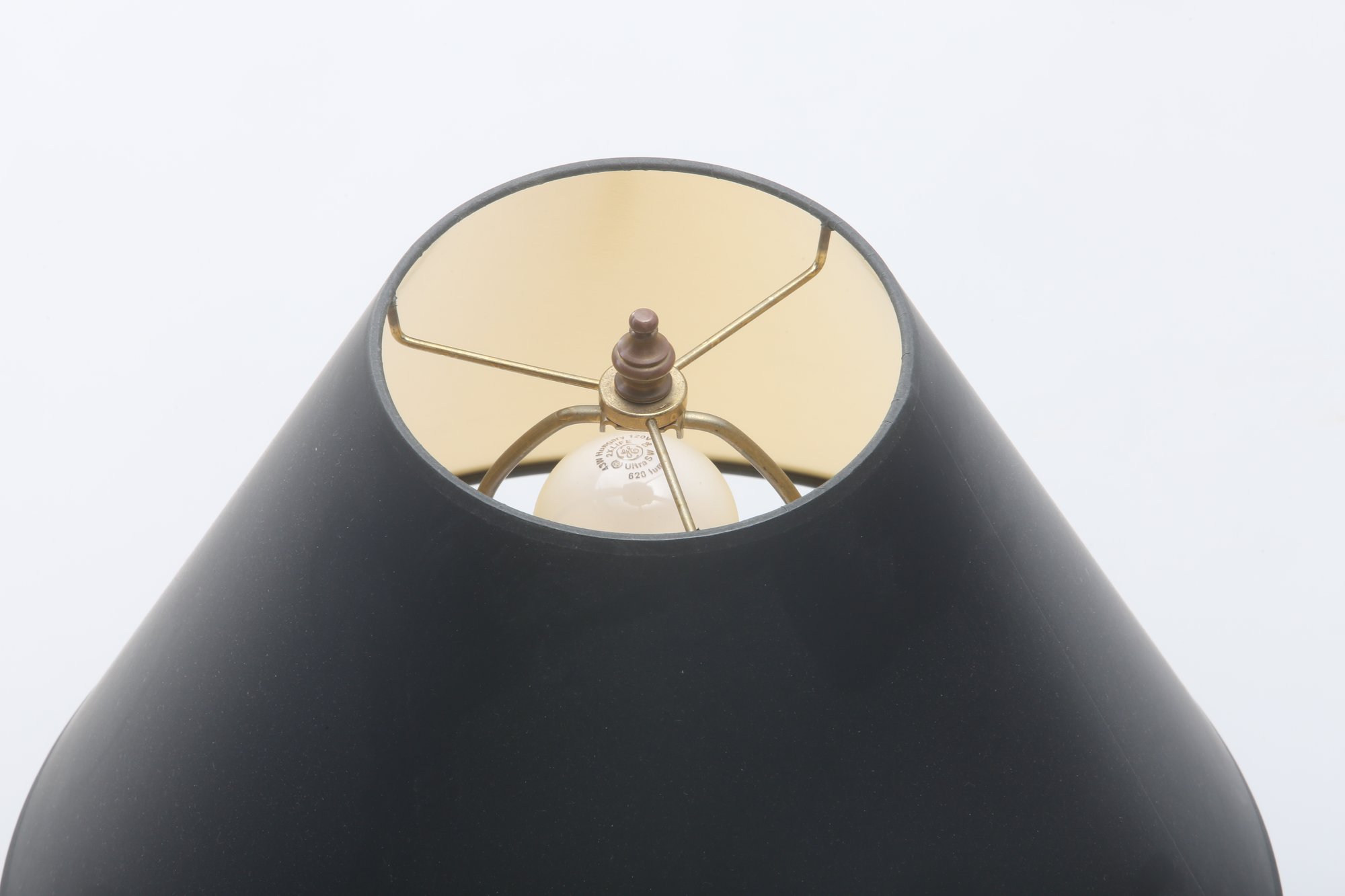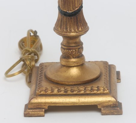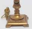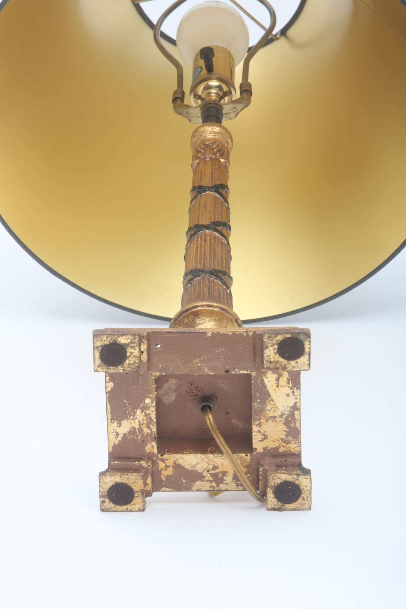 gold stem with black design and square base