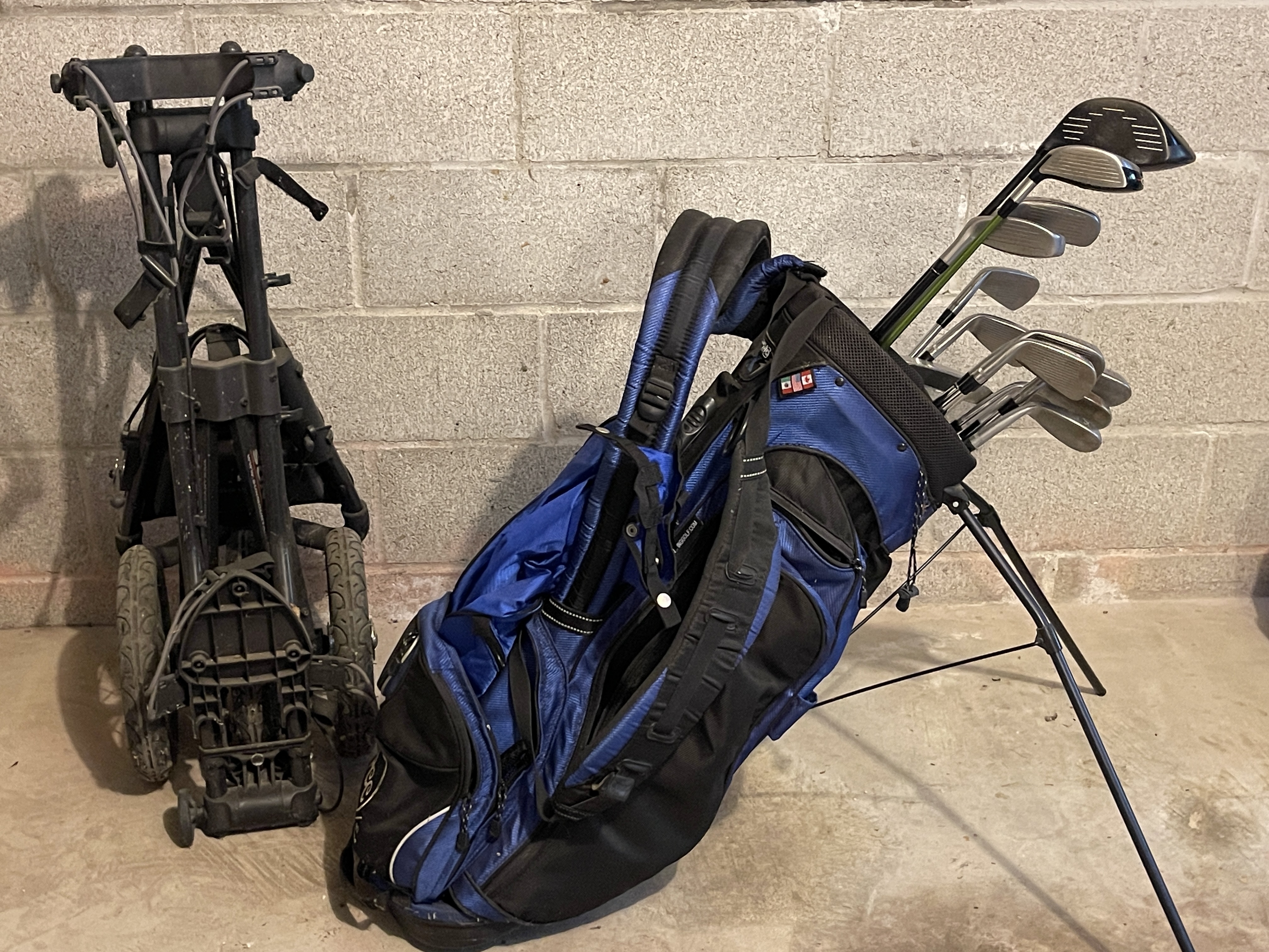 Golf Clubs And A Pull Cart