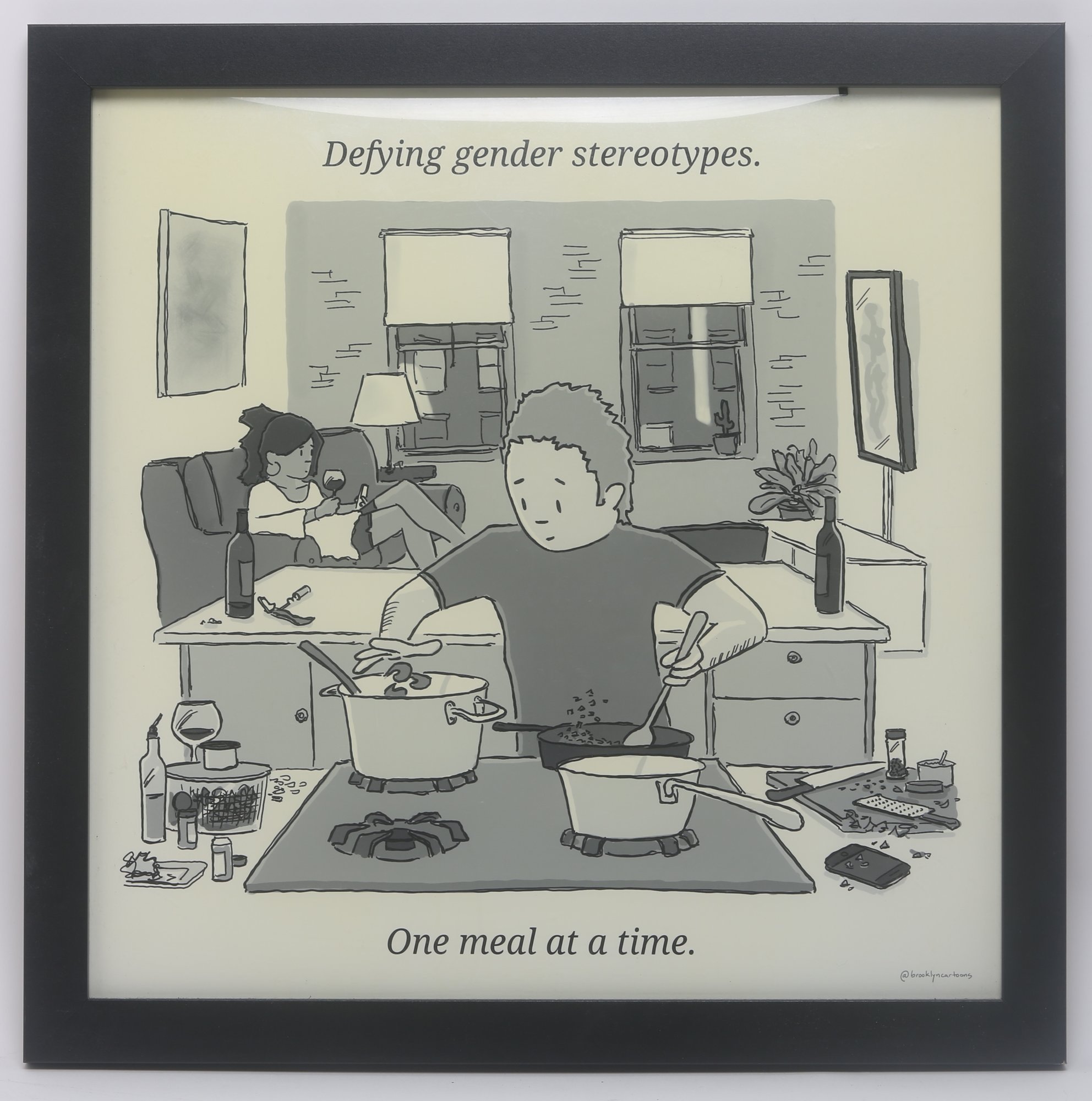 defying gender stereotypes titled one meal at a time by Brooklyn Cartoons