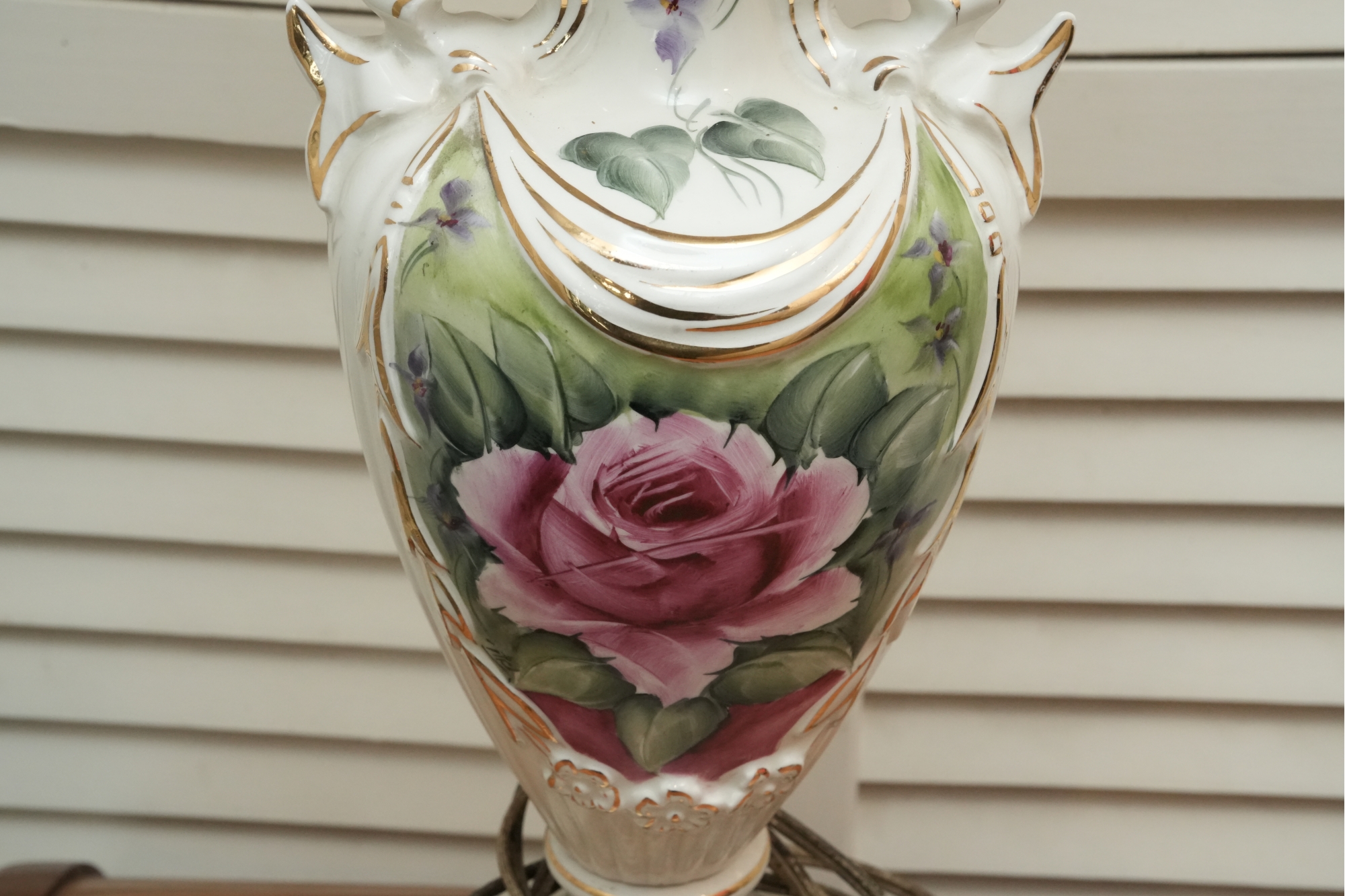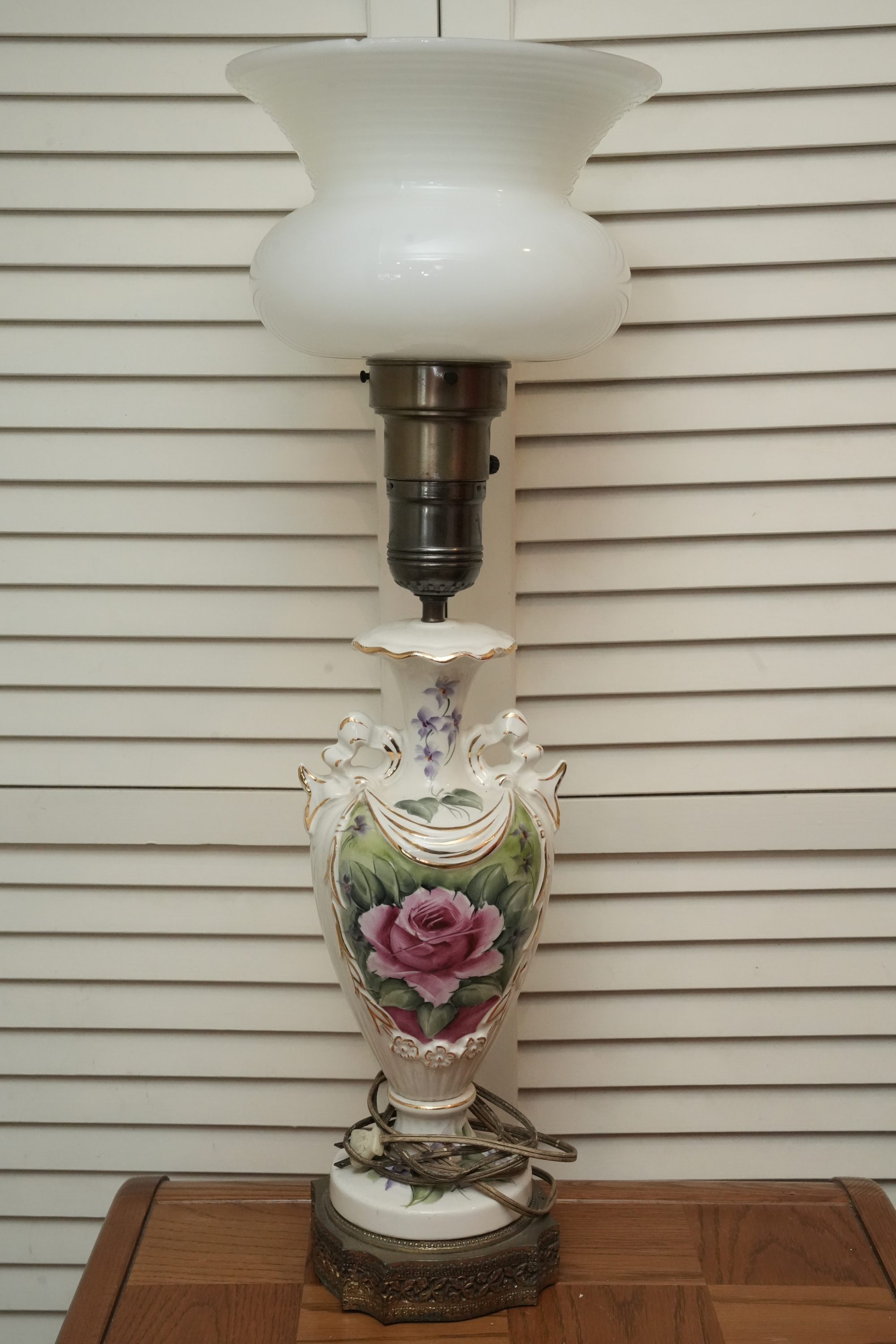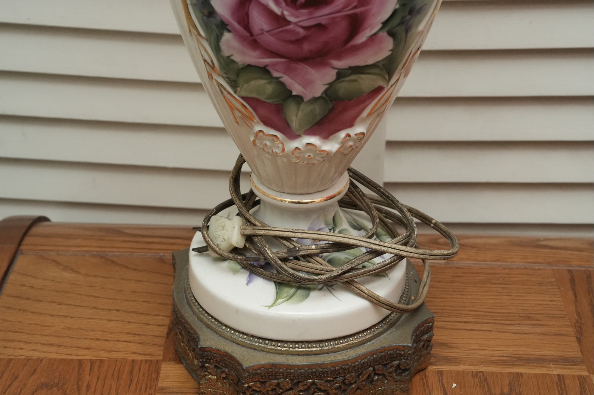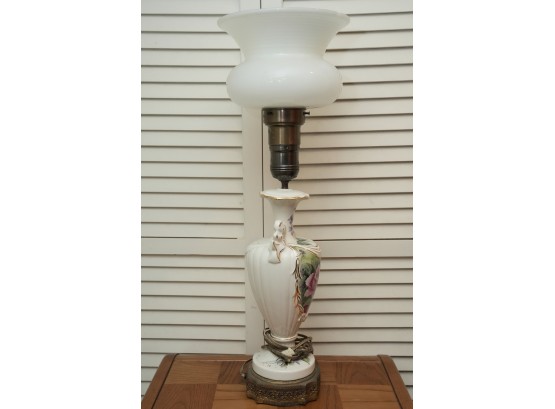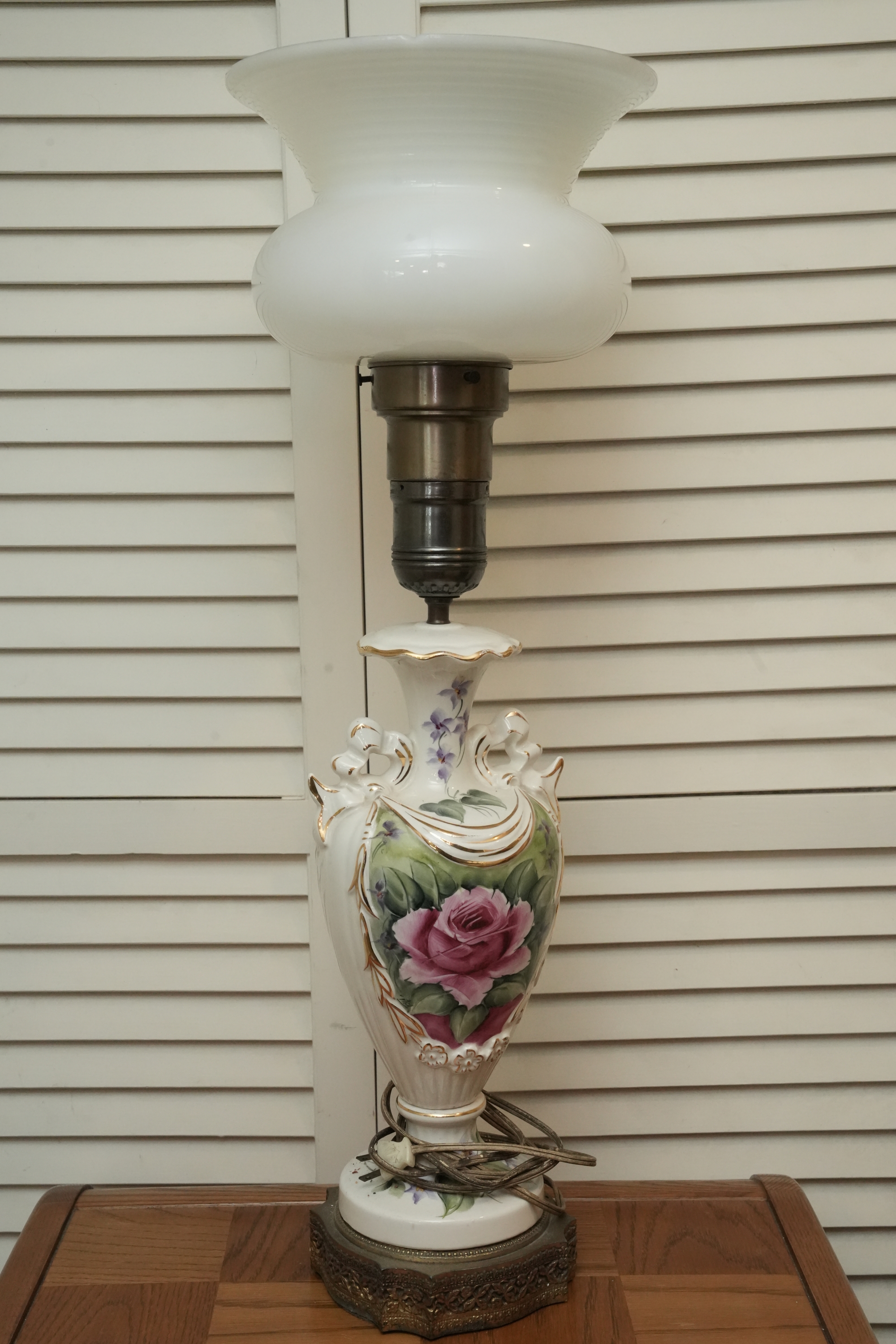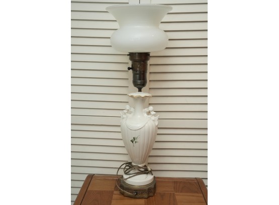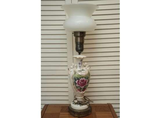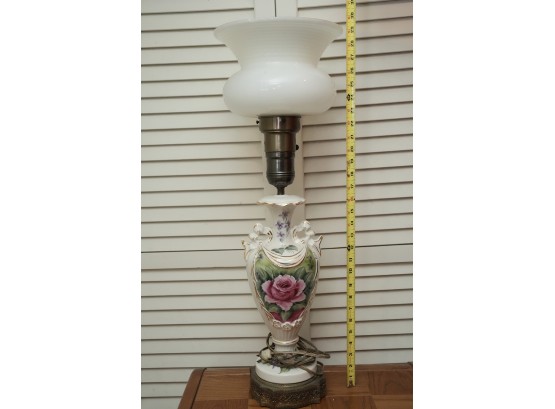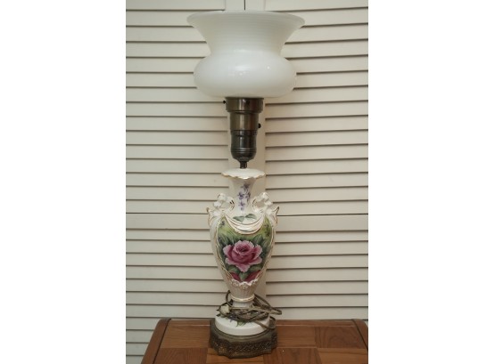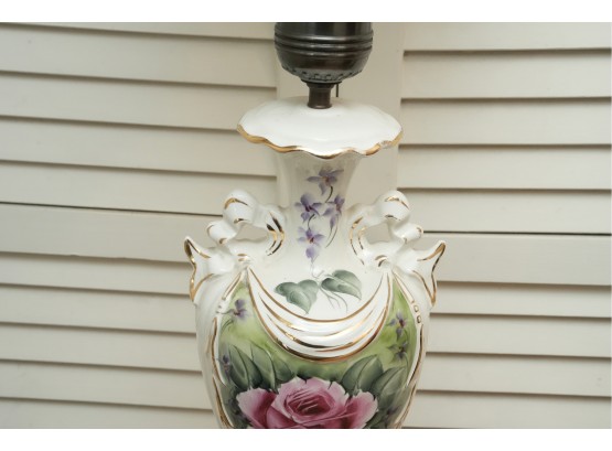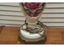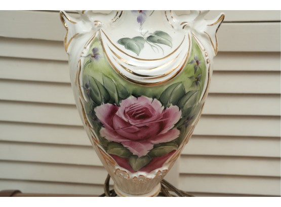 Porcelain Table Lamp With Hand-Painted Rose Decoration