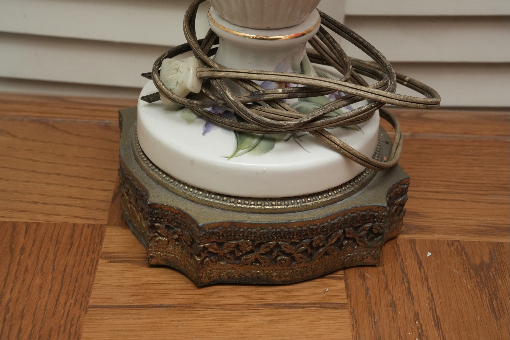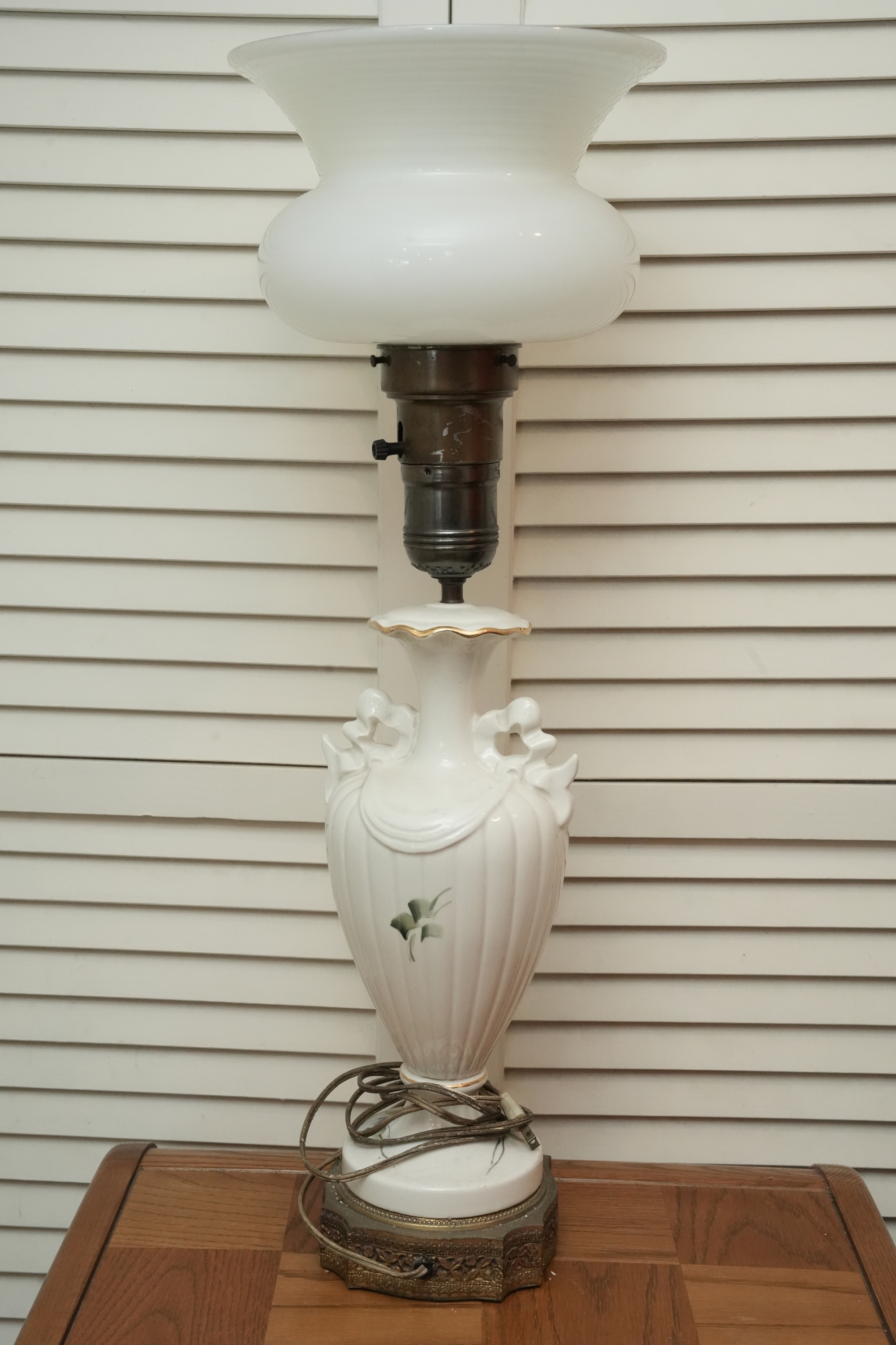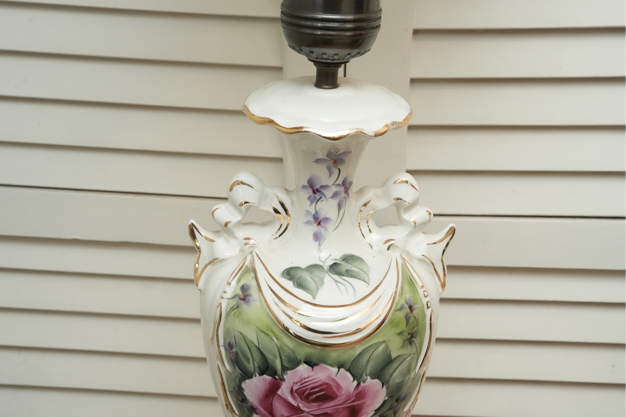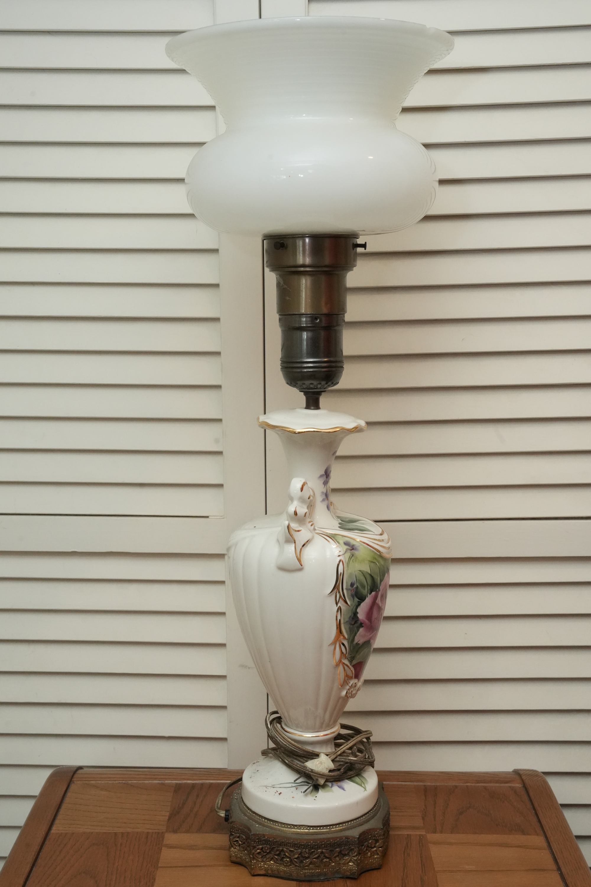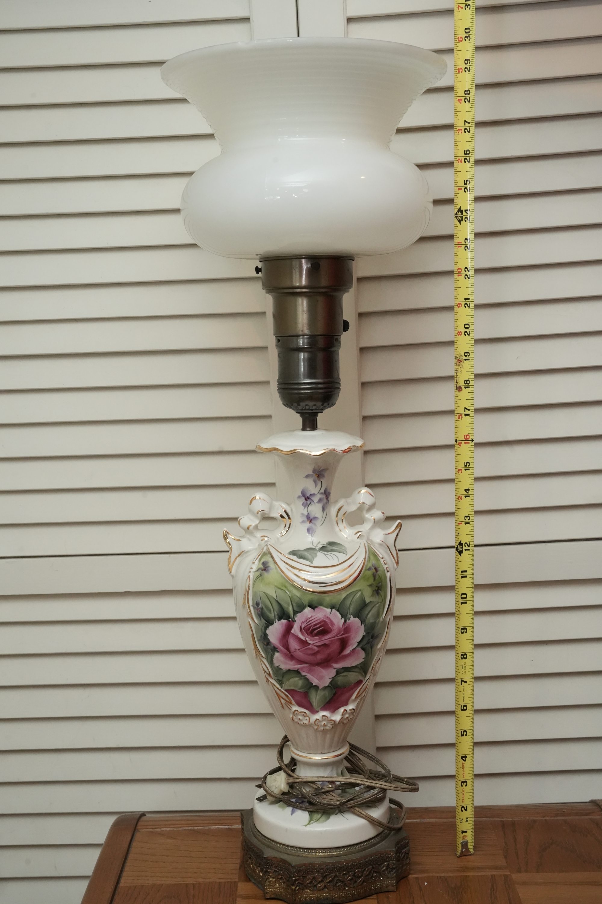 Porcelain Table Lamp With Hand-Painted Rose Decoration