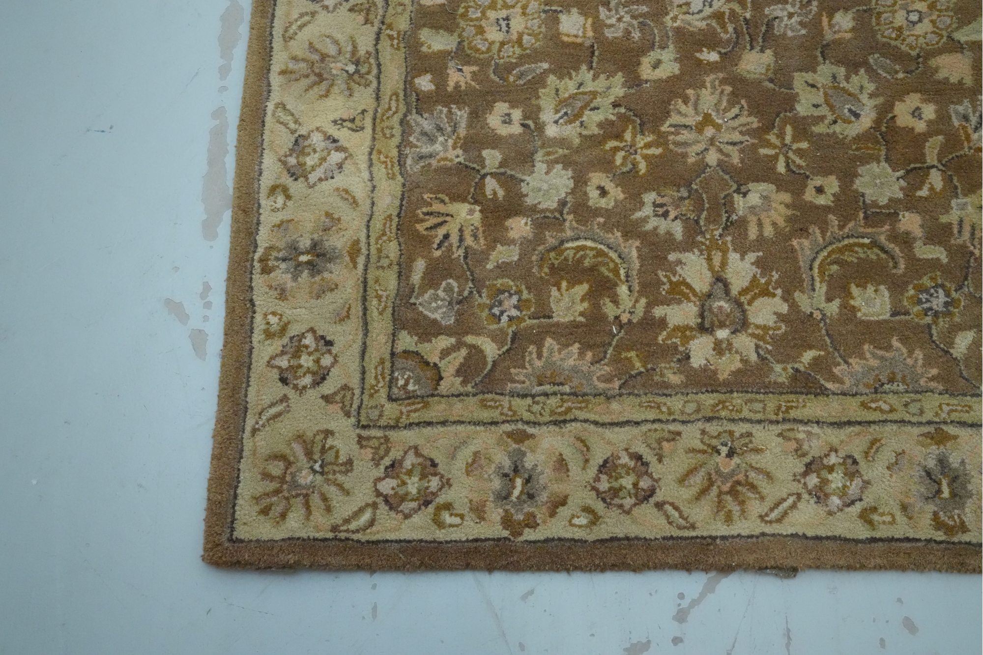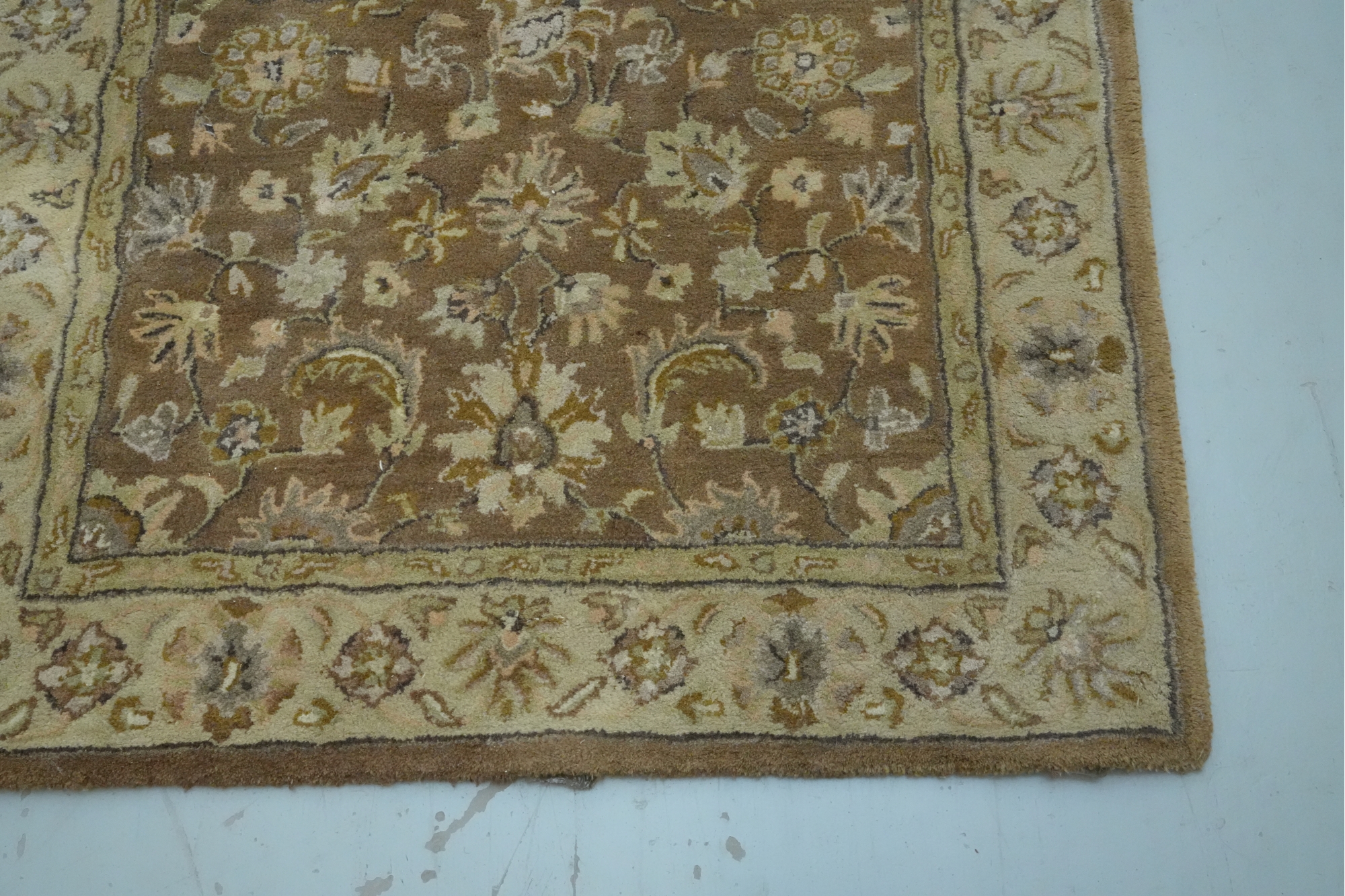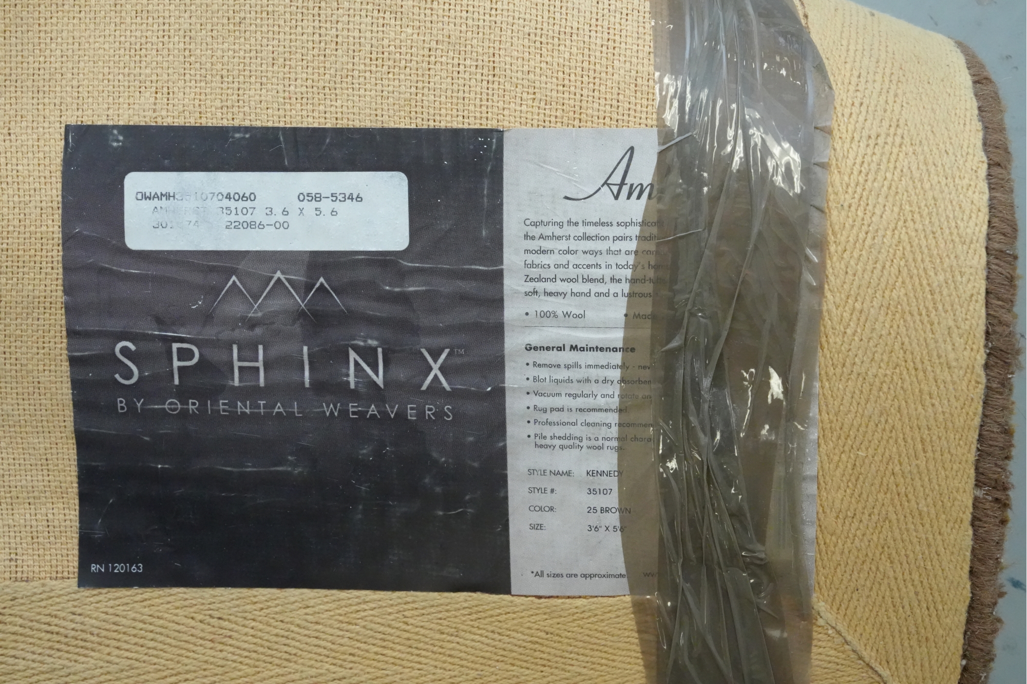 Oriental Weavers (Egypt) Amherst Collection Kennedy-style area rug, "Sphinx," woven from 100% New Zealand wool, featuring a warm brown field with muted floral motifs.