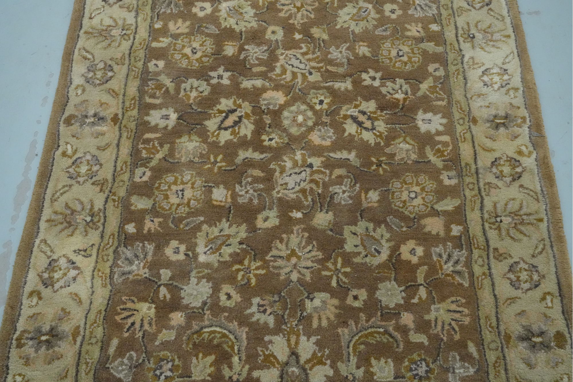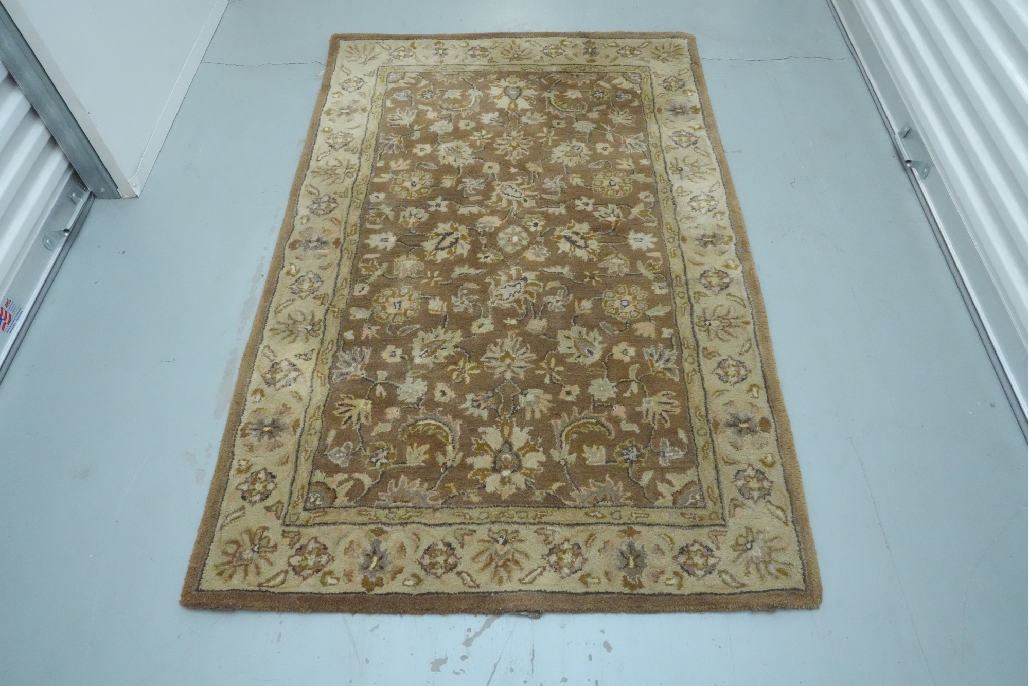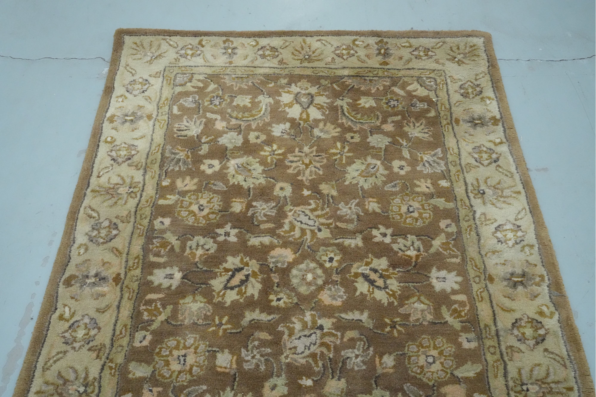 Oriental Weavers (Egypt) Amherst Collection Kennedy-style area rug, "Sphinx," woven from 100% New Zealand wool, featuring a warm brown field with muted floral motifs.