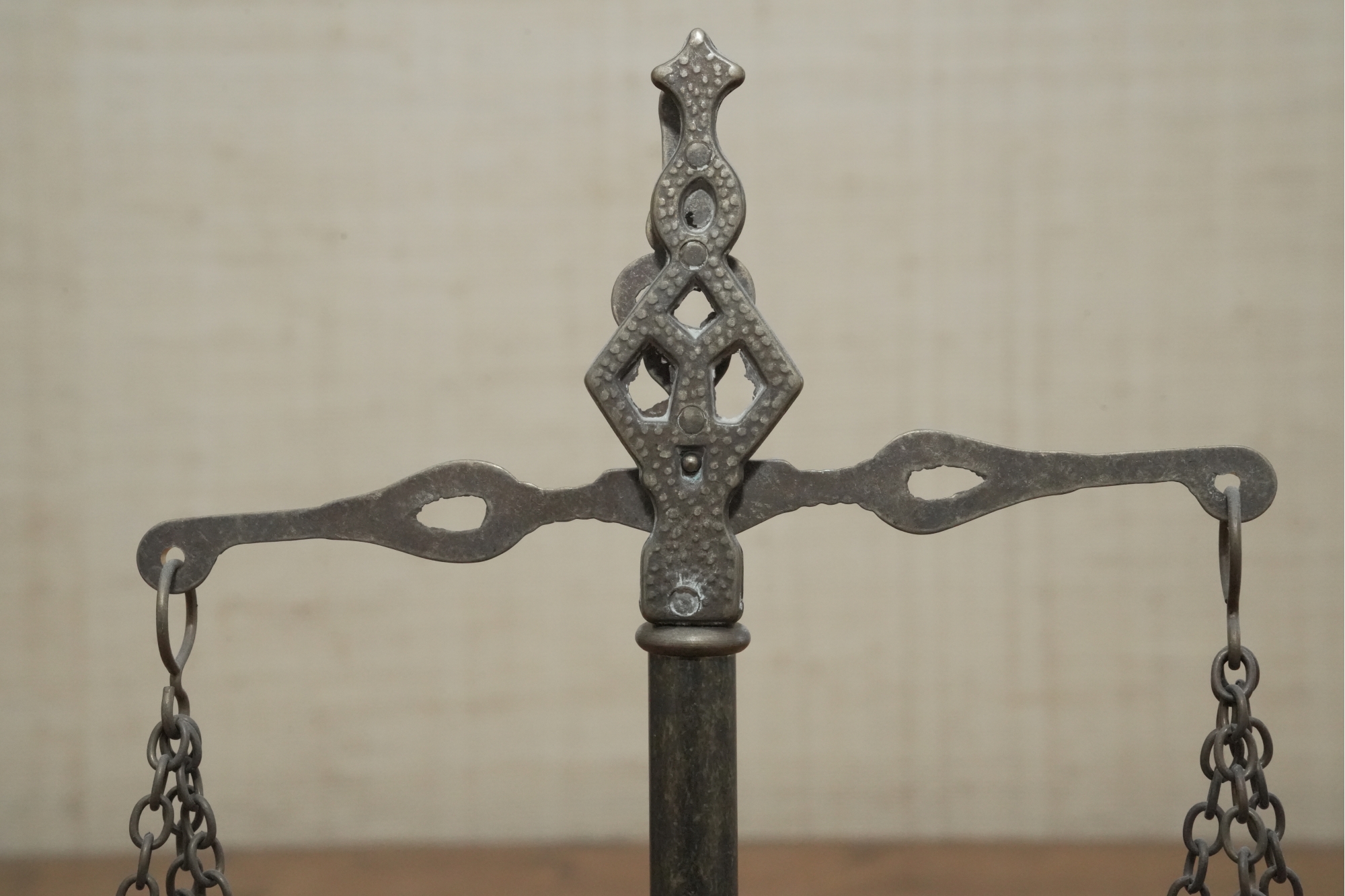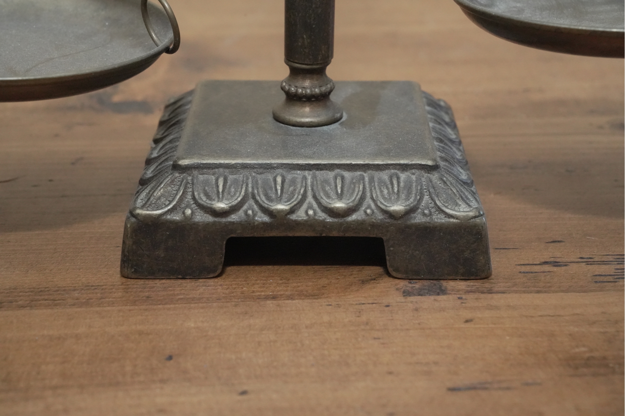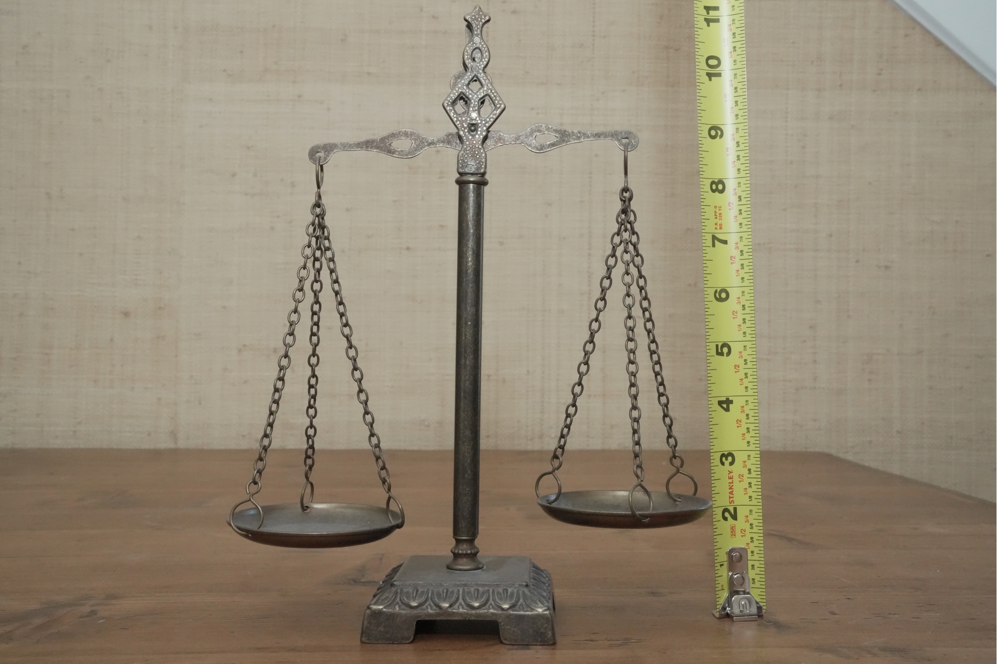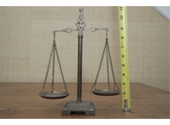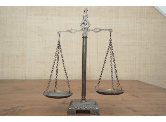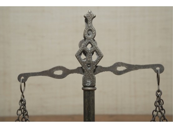 Ornate Decorative Metal Balance Scale With Two Hanging Pans