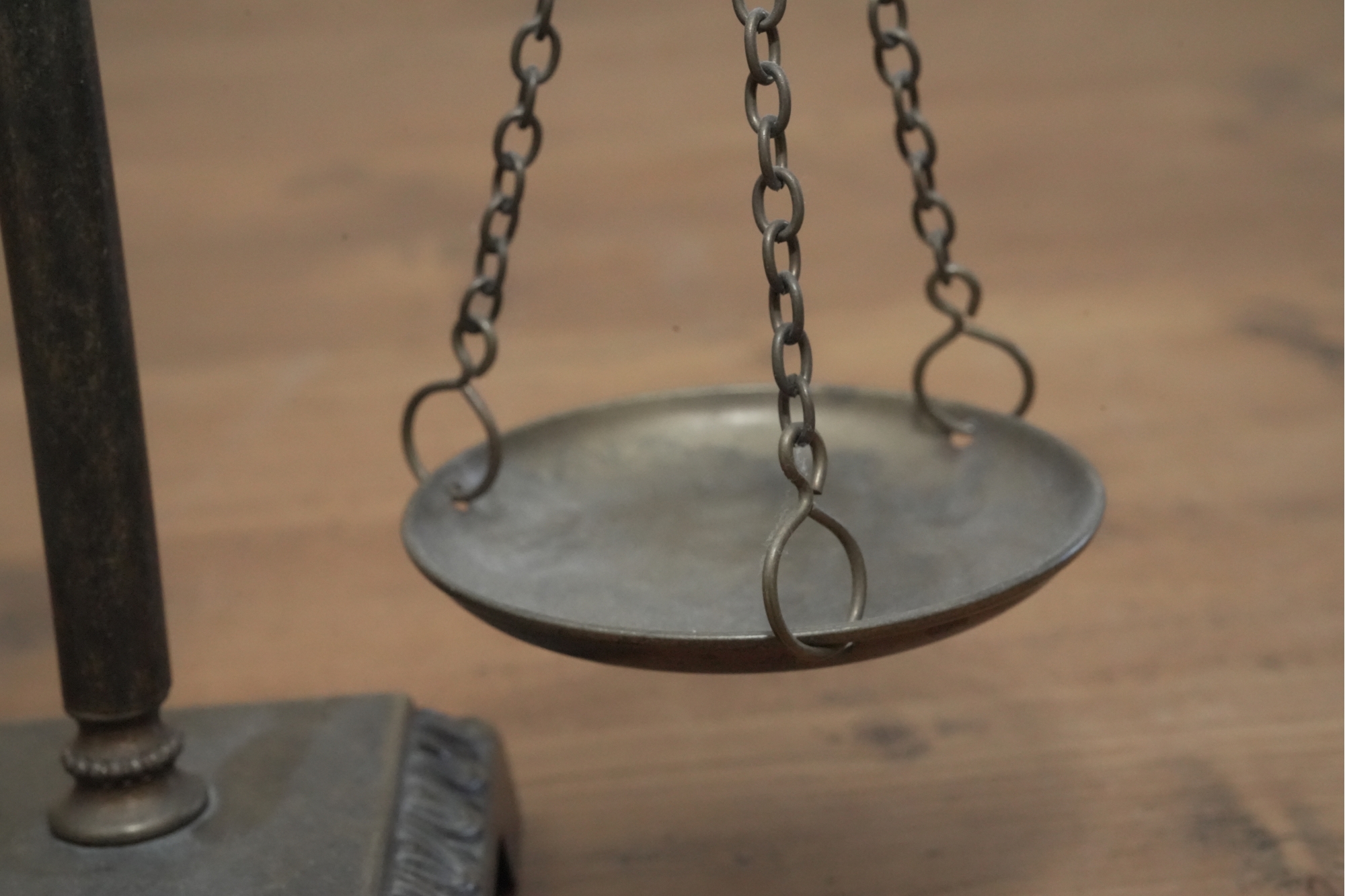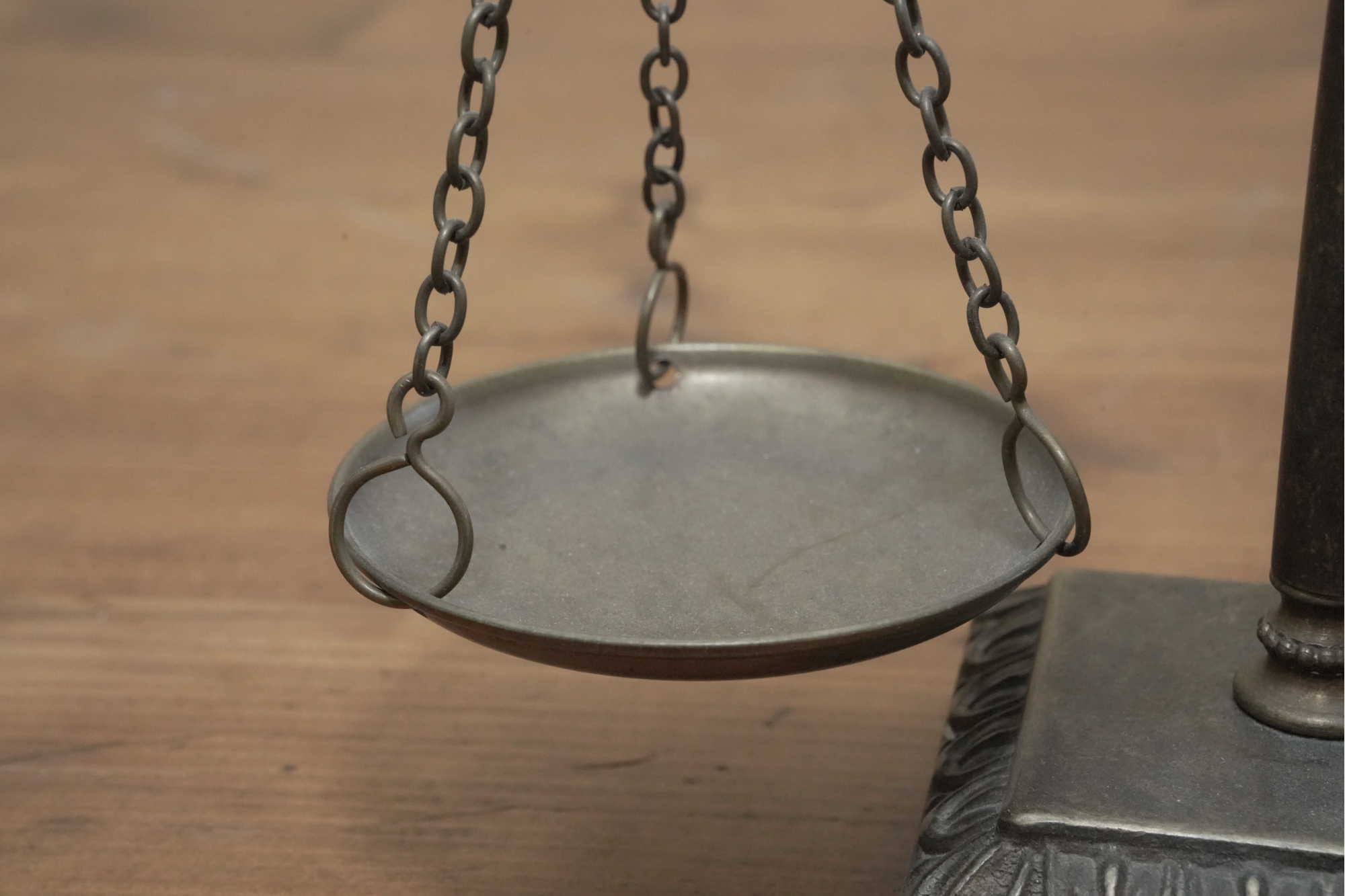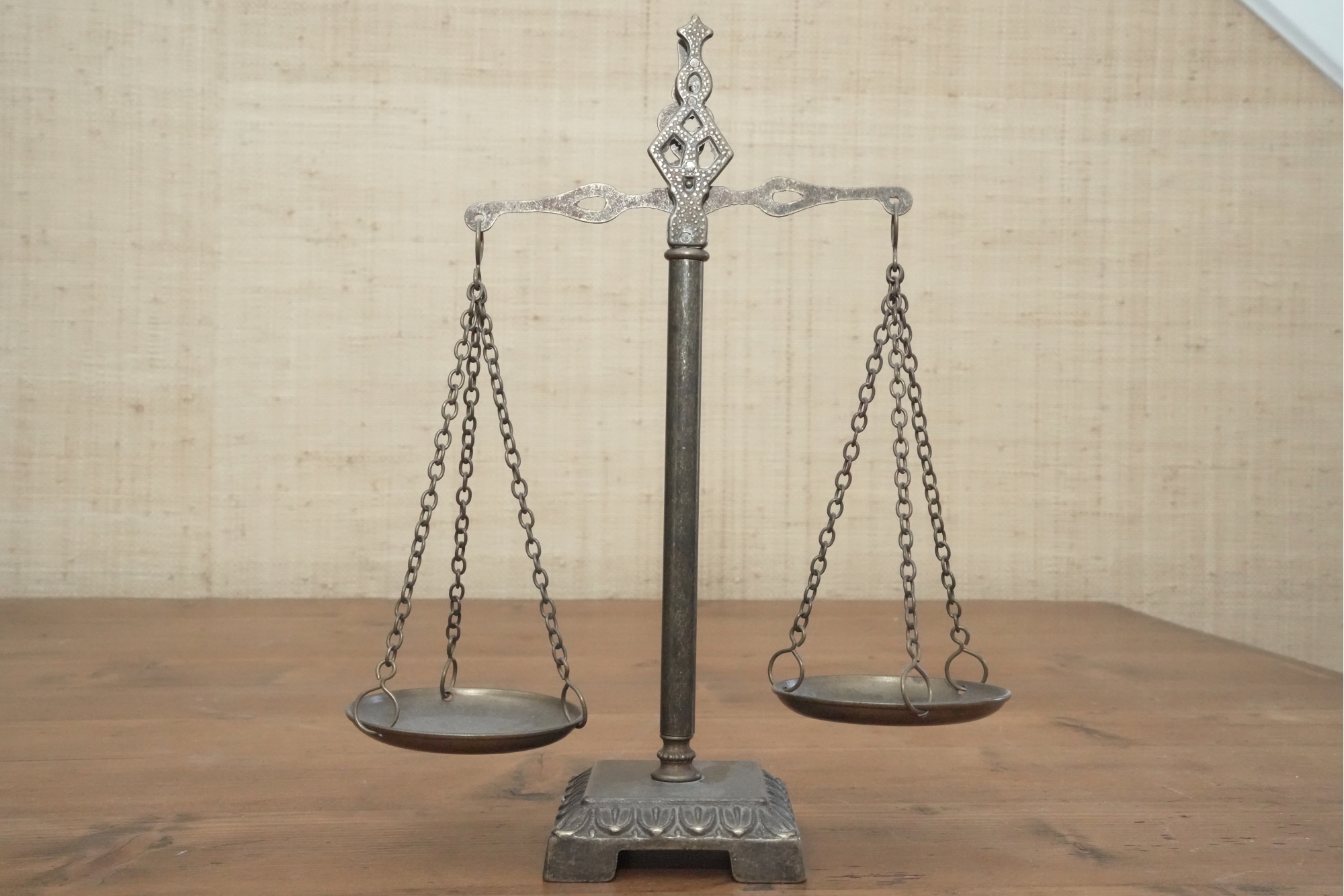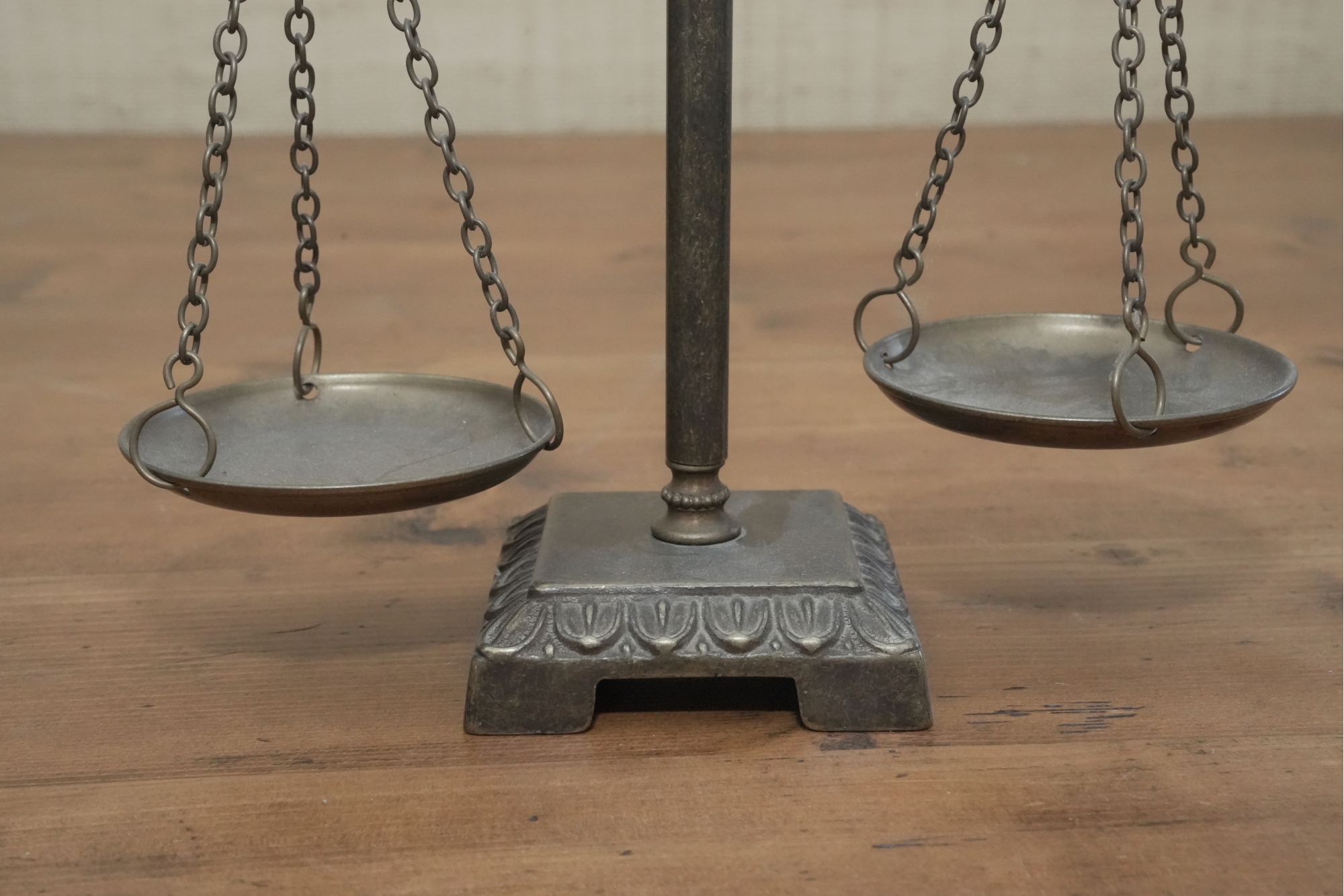 Ornate Decorative Metal Balance Scale With Two Hanging Pans