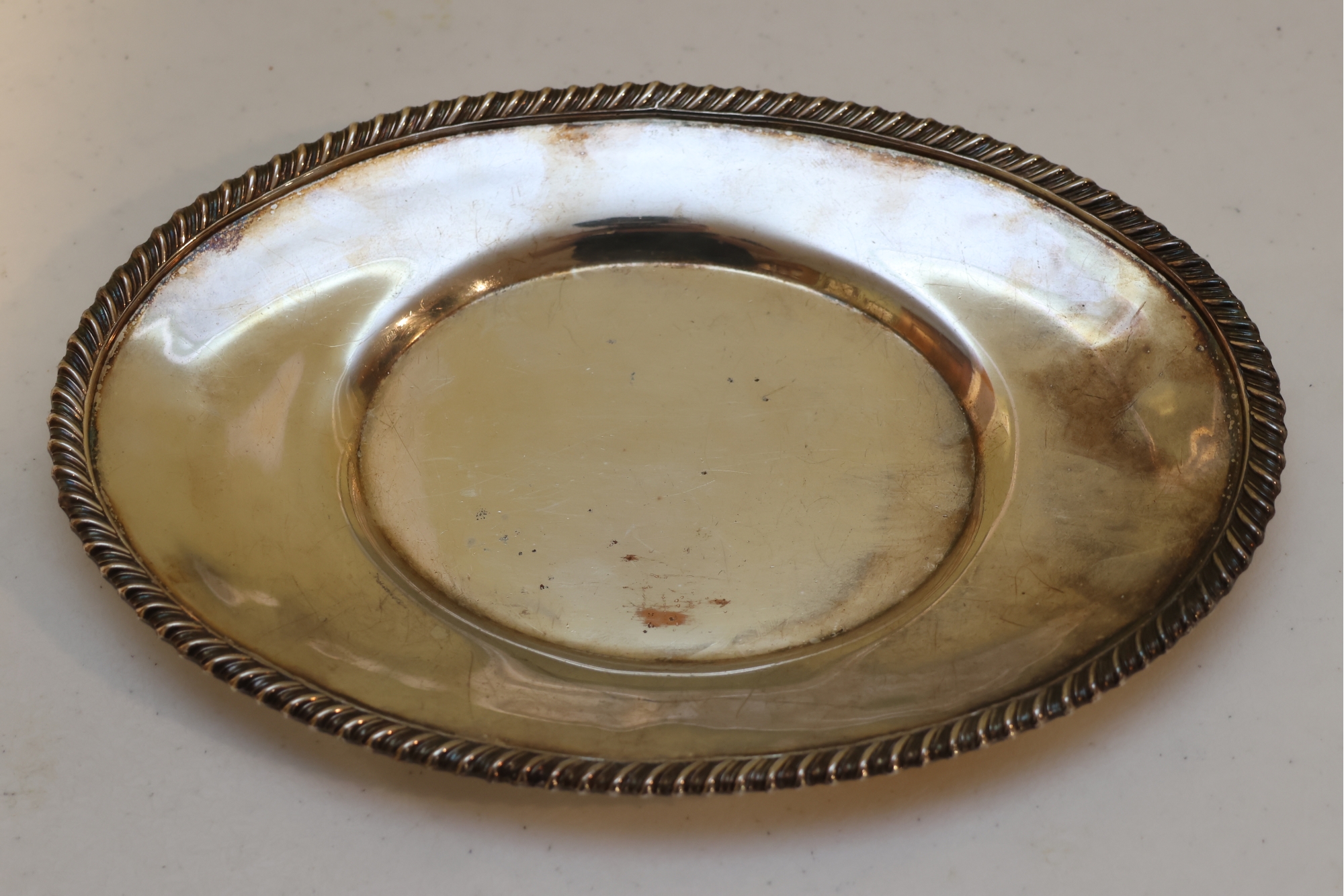 Oval Silverplate Dish With Rope Twist Rim