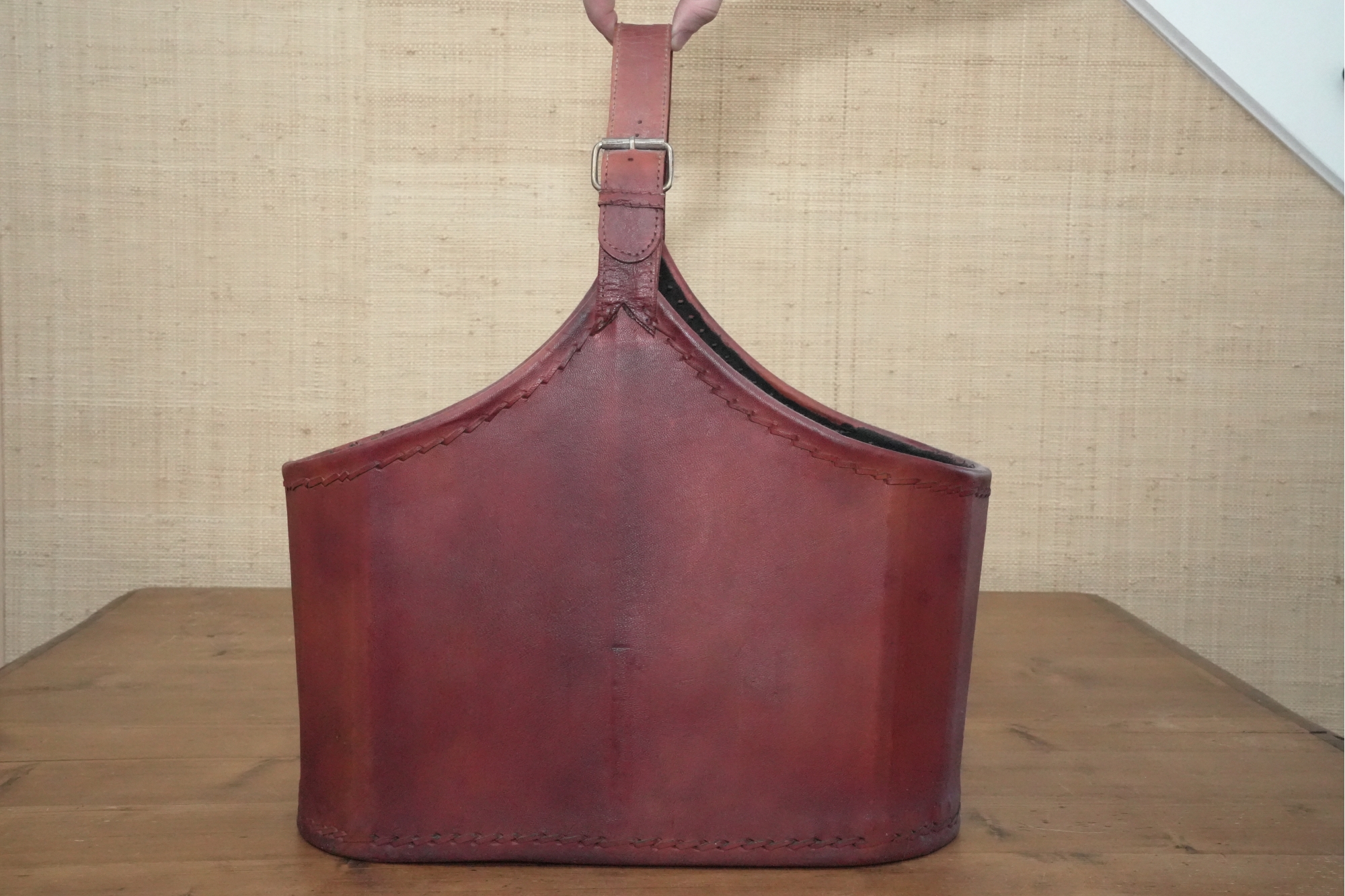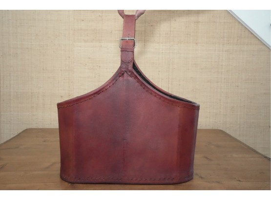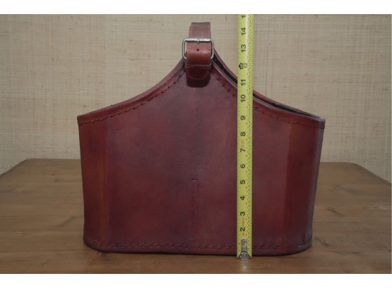Reddish Brown Leather Magazine Holder With Adjustable Strap