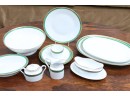 12 dinner, 12 salad, 12 saucers, 12 cups, 1 creamer, 1 sugar, 1 large bowl, 12 dessert plates, 1 gravy boat, 3 oval platters