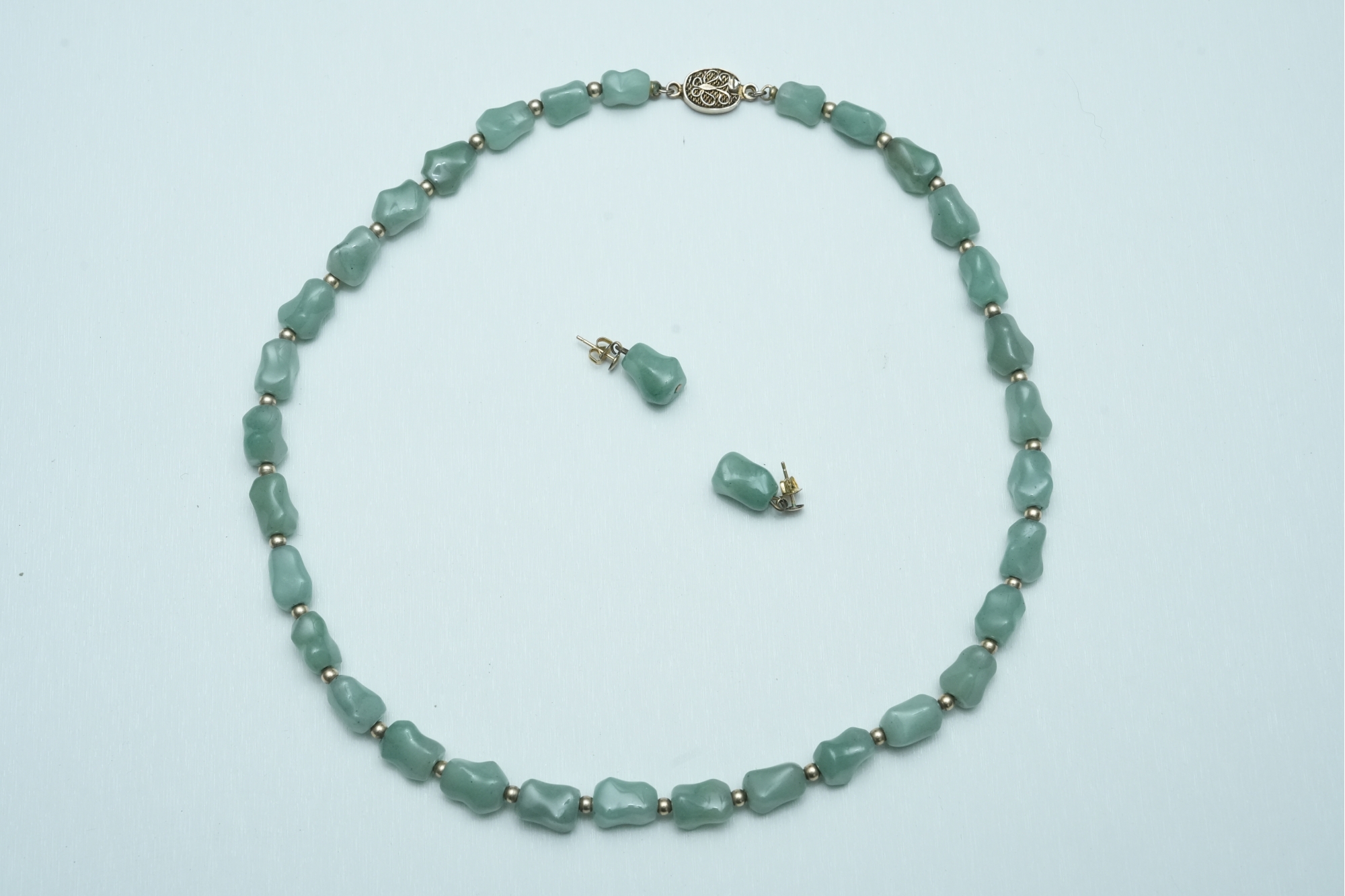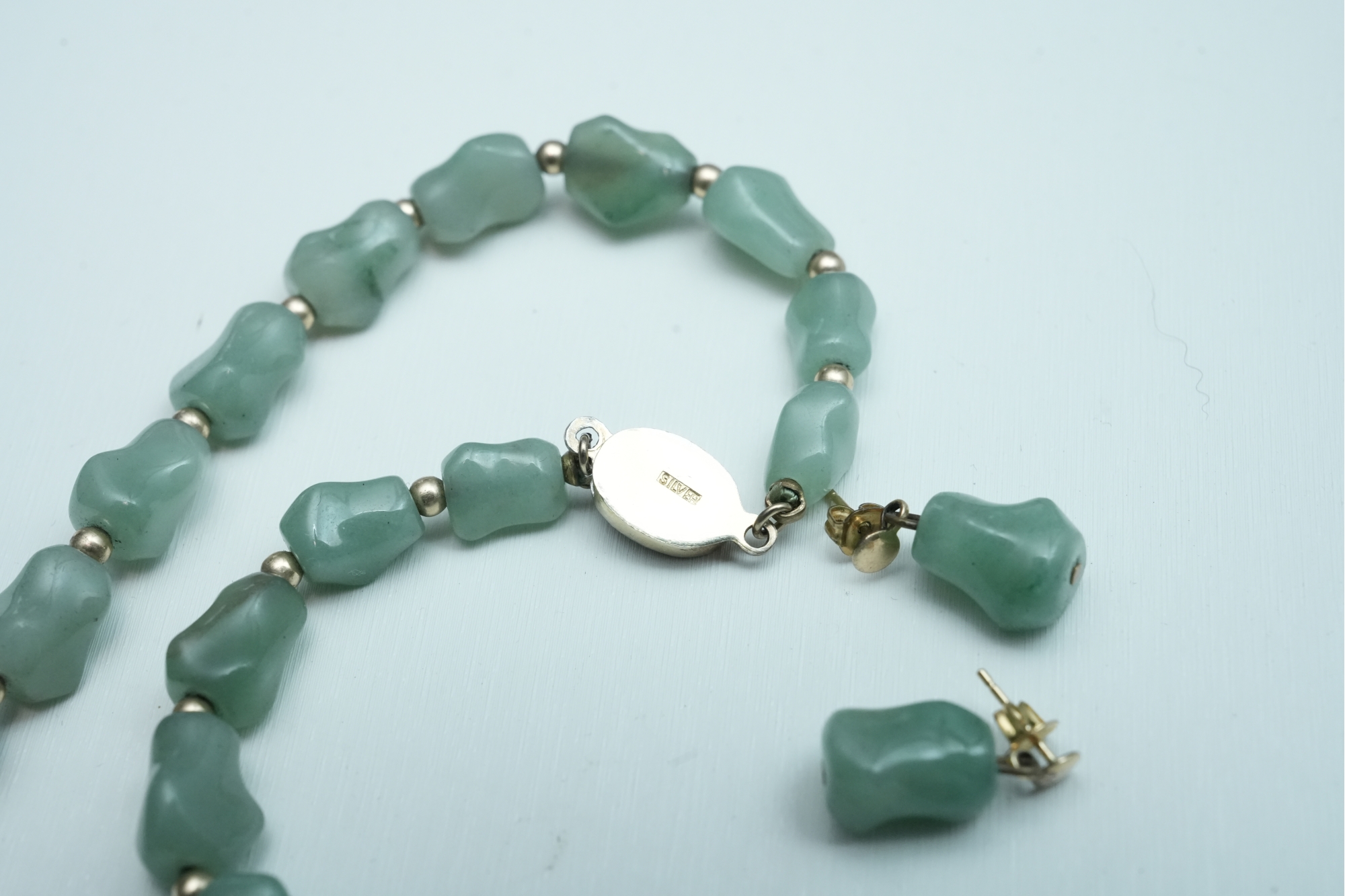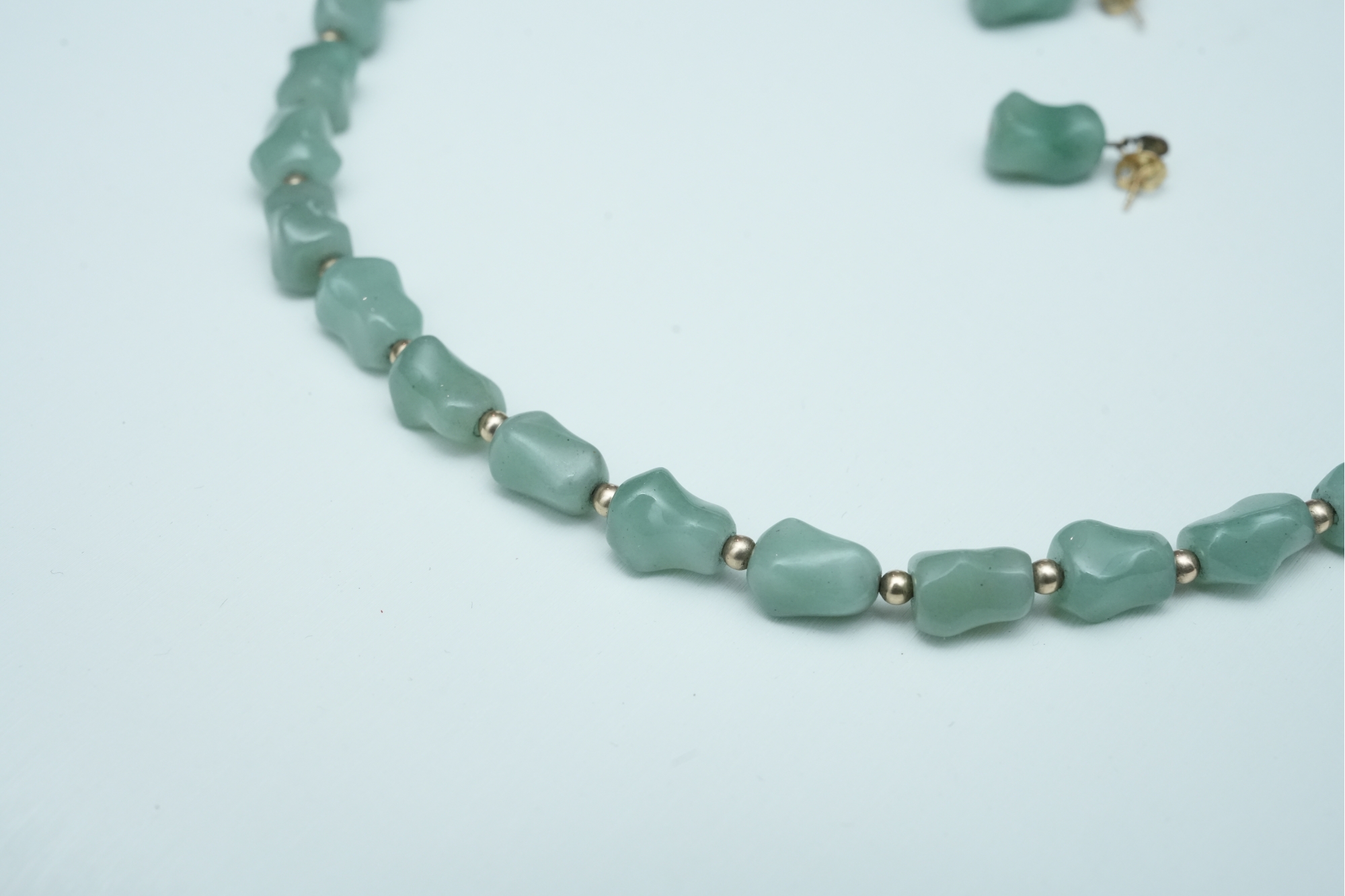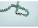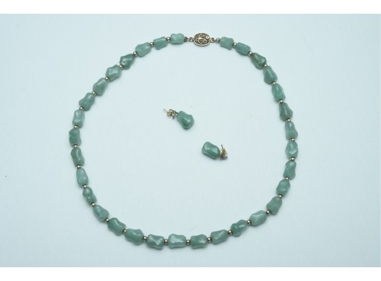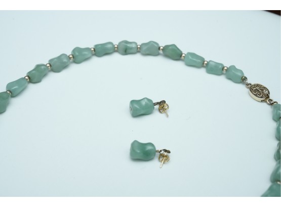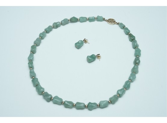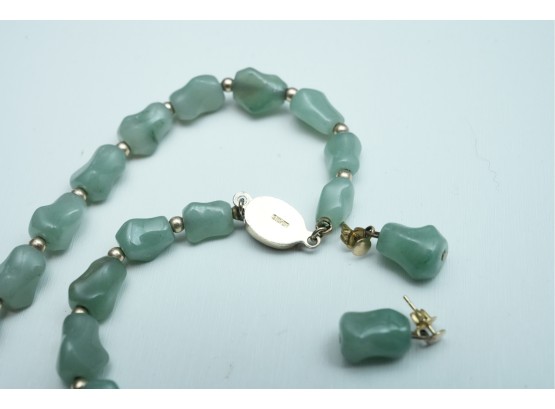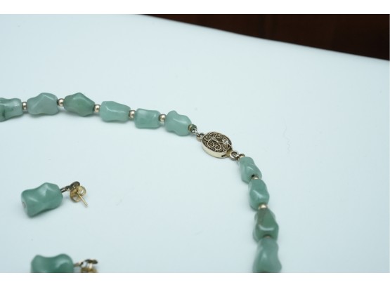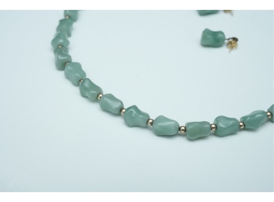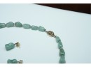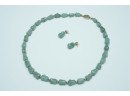 Green Stone Bead Necklace With Matching Earrings