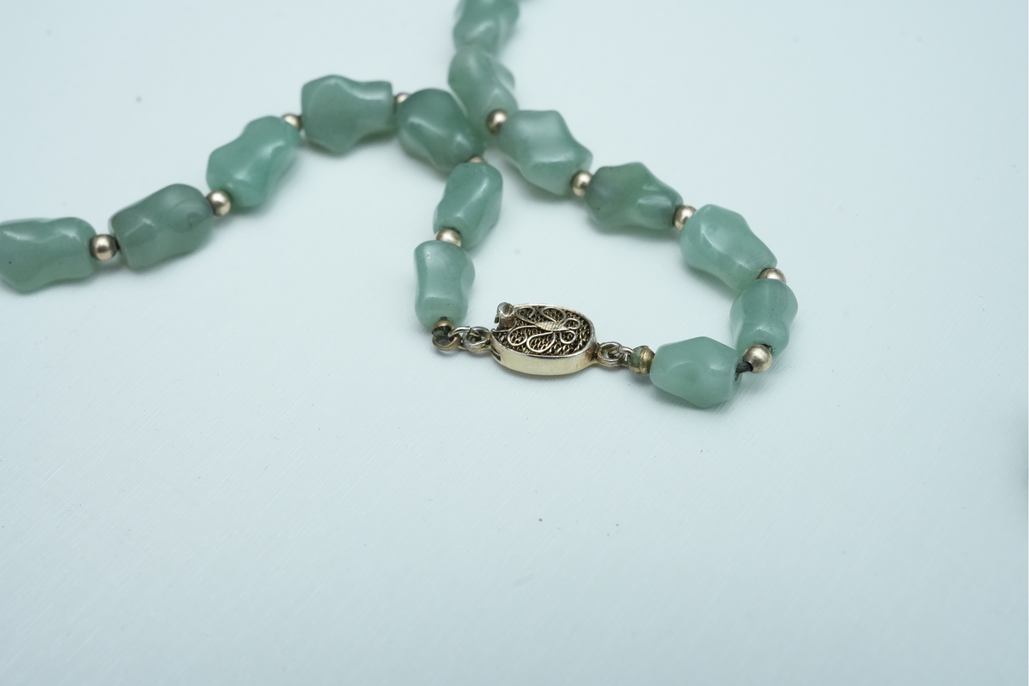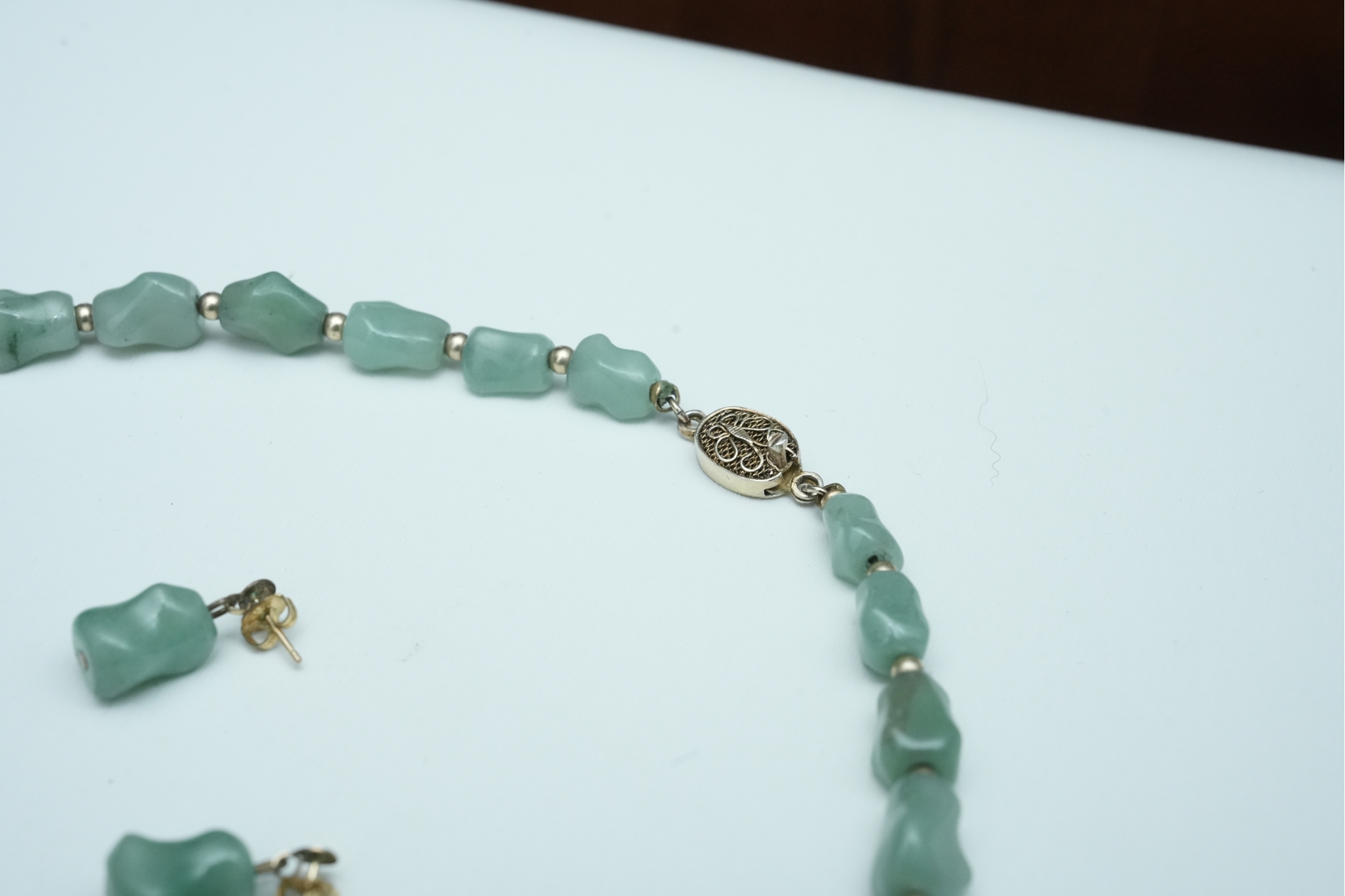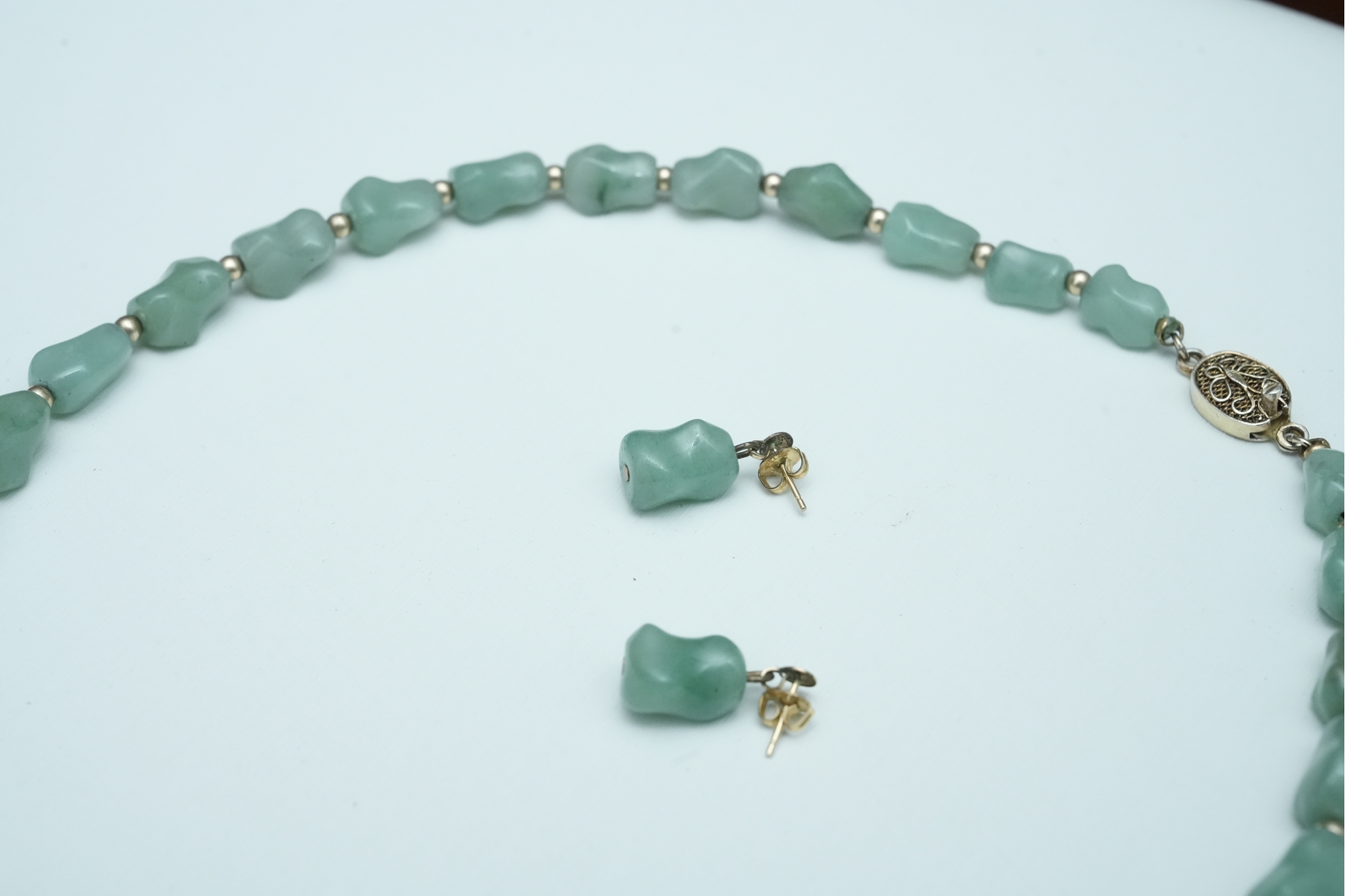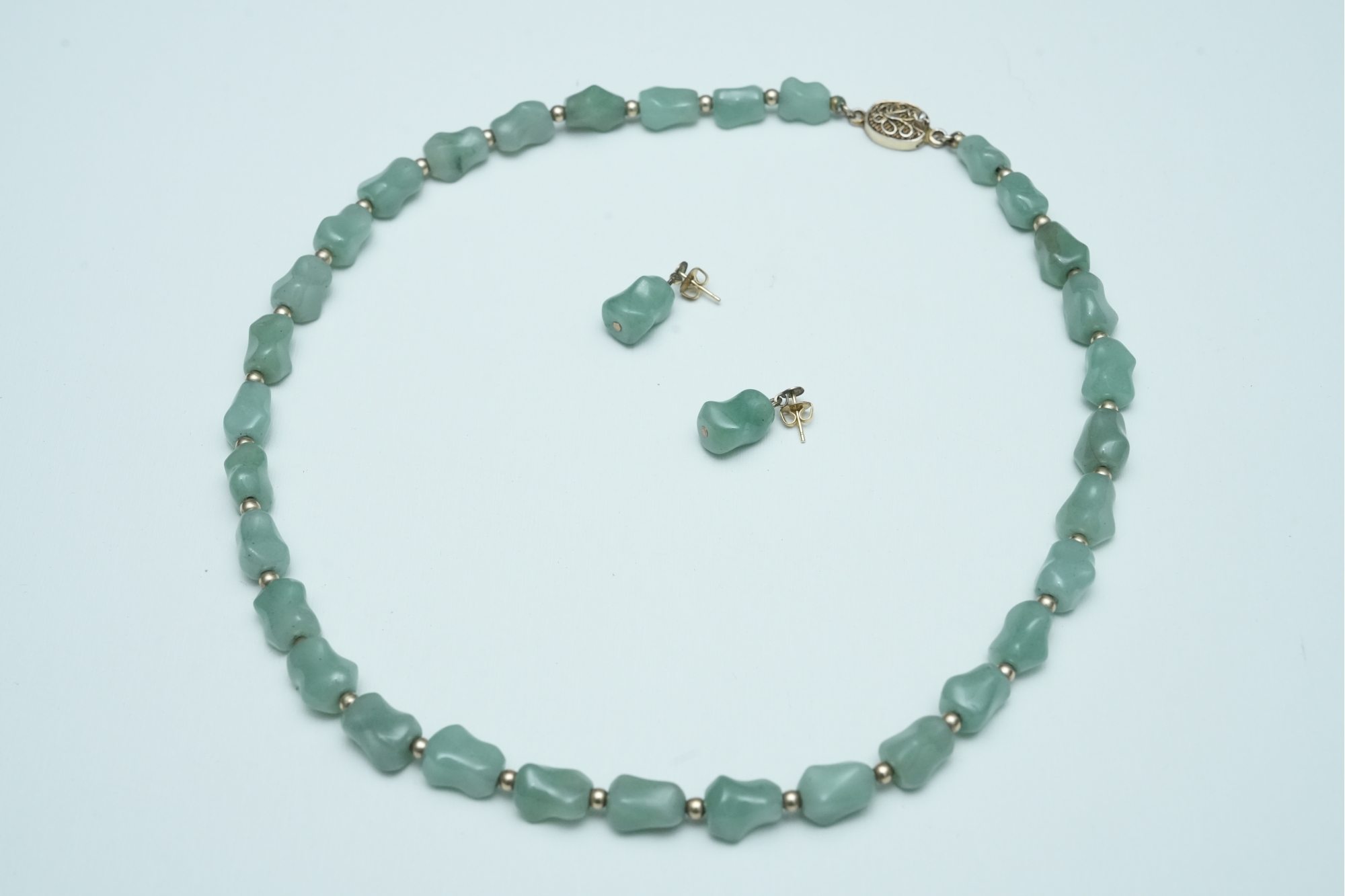 Green Stone Bead Necklace With Matching Earrings